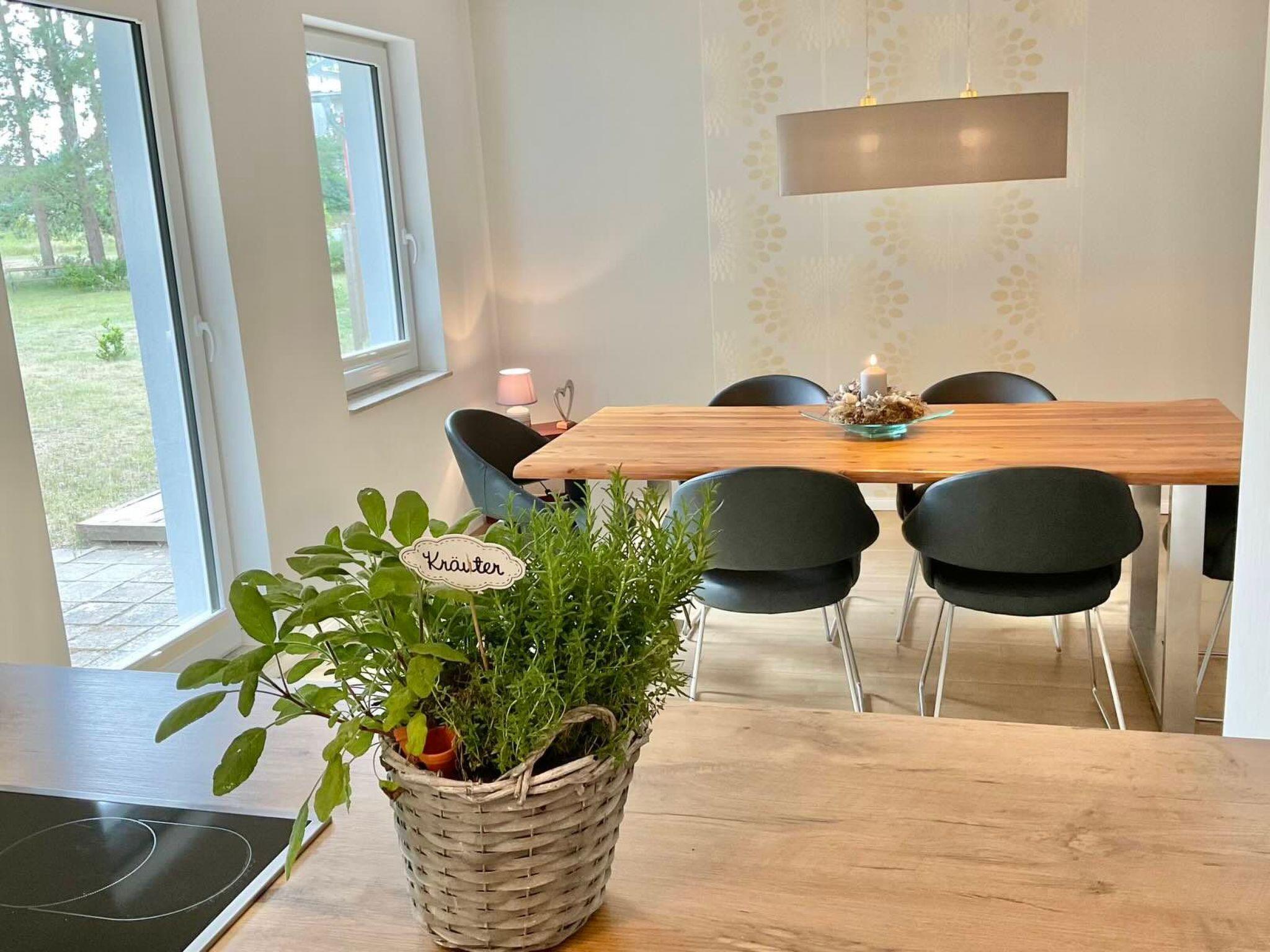 Modernes Ferienhaus Wiesenblick 5 in ruhiger Natur am Ortsrand von Pruchten mit Terrasse und Kaminofen.