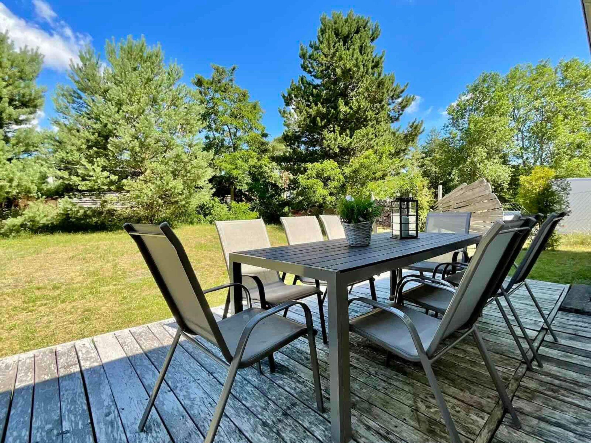Auf der Terrasse mit Sitzmöbeln für 7 Personen können Sie Ihre Mahlzeiten einnehmen, lesen oder einfach relaxen. Außerdem bieten wir Ihnen 3 Sonnenliegen und einen Holzkohlegrill. Mitgebrachte oder geliehene Fahrräder können separat untergebracht werden (das sehr gut ausgebaute Radwegenetz lädt zu ausgedehnten Radtouren ein). Ihren PKW können Sie direkt neben dem Ferienhaus abstellen.