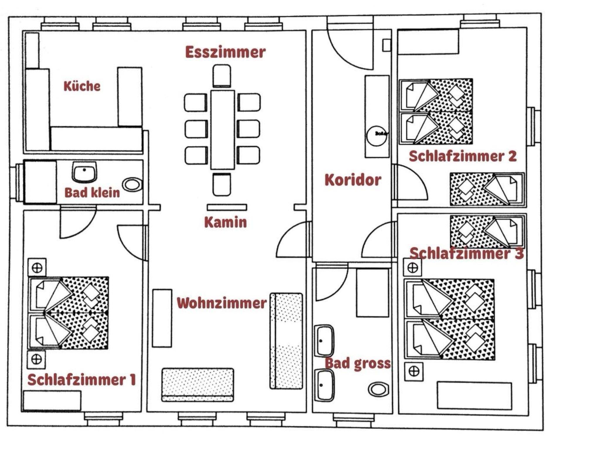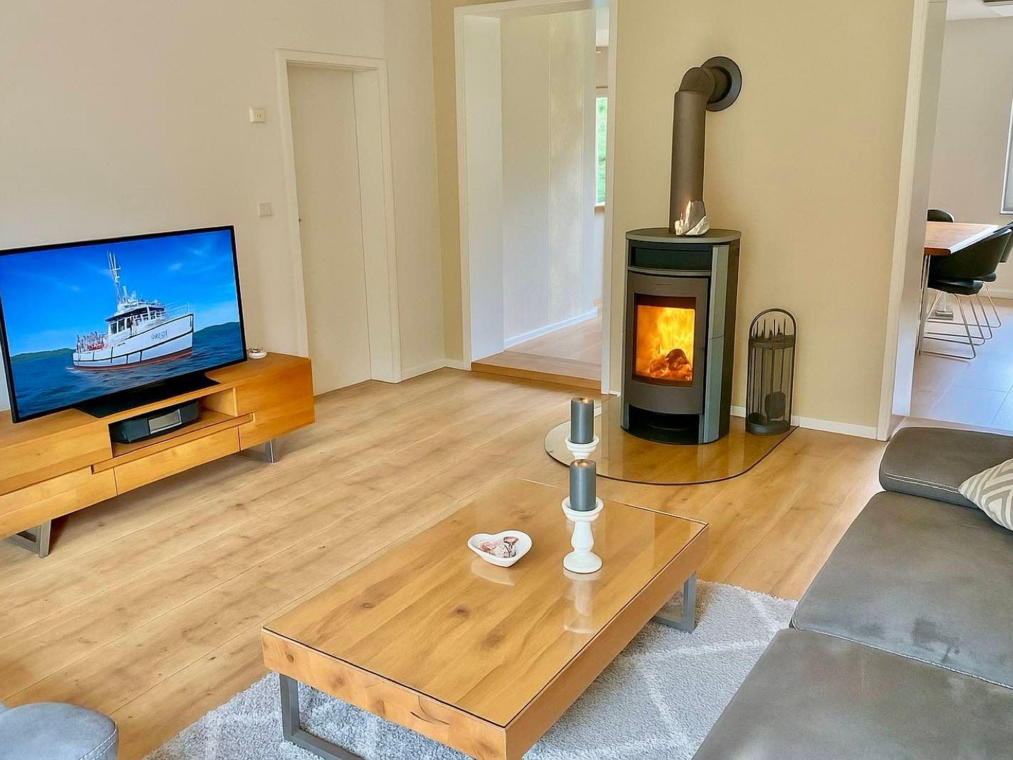 Auf einer Wohnfläche von ca. 120 m² befindet sich in diesem Ferienhaus ein Wohnzimmer mit Couchgarnitur, 48" Flat-TV und der moderne Speicherofen. Genießen Sie die angenehme Speicherofenwärme über den Tag und ein stimmungsvolles Kaminfeuer am Abend – kombiniert mit zeitlosem, stilvollem Design. Zwei große Durchgänge bieten Ihnen den Blick und Zugang zum Esszimmer mit einem wunderschönen Esstisch aus massivem Akazienholz und bequemen Stühlen. Aus den großen Fenstern können Sie den herrlichen Blick in die umliegende Natur genießen. In der gut ausgestatteten Küche mit Kochinsel, Geschirrspüler, Backofen, Kühlschrank mit Gefrierfach usw. macht das Zubereiten der Mahlzeiten richtig Spaß. Für Ihren erholsamen Schlaf befindet sich in jedem Schlafzimmer ein großes Doppelbett (180x200) und ein geräumiger Kleiderschrank. Ein Schlafzimmer bietet mit einem Schlafsessel eine dritte Übernachtungsmöglichkeit für Kinder an.