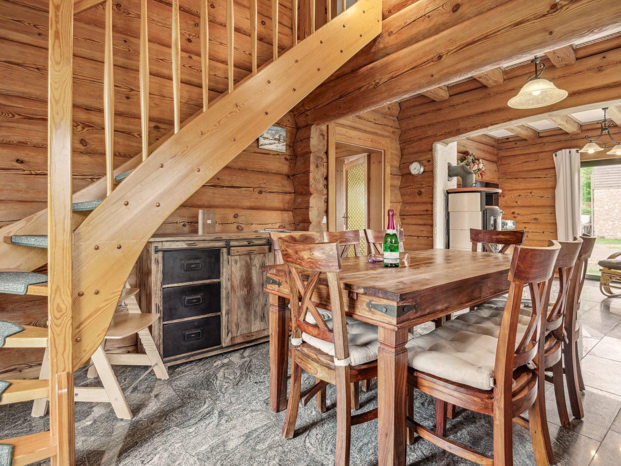 Unser urgemütliches Blockhaus „Dat Stammhus“ befindet sich in einer im Grünen gelegenen, von pommerscher Waldlandschaft umgebenen Ferienhaussiedlung am Rande des Dorfes Bodstedt und des Naturschutzgebietes „Vorpommersche Boddenlandschaft“. Es garantiert daher einen entspannten und ruhigen Urlaub. Mildes Küstenklima, kilometerlange, feine Sandstrände und urige Wälder formen eine idyllische Lage. Auszeit im Grünen - ein idealer Ferienort zu jeder Jahreszeit abseits vom Trubel der Seebäder.Verbringen Sie Ihren Urlaub in unserem liebevoll gestalteten „Dat Stammhus“. Das Grundstück umfasst 560 m² und die Wohnfläche im Haus beträgt ca. 140 m². Das Blockhaus wurde im Juni 2006 fertiggestellt. Im Erdgeschoss befindet sich eine offene, voll ausgestattete Küche (sollte mal etwas fehlen, werden wir uns darum kümmern), das Wohnzimmer mit einer Couch und einem schönen, wohligen Kaminofen, zwei Bädern mit großer Dusche und Föhn sowie ein Schlafzimmer für 2 Personen. Das Erdgeschoss ist gefliest und mit Fußbodenheizung ausgestattet. Auf der sonnigen Terrasse kann man sich wunderbar erholen und tolle Grillabende erleben. Es stehen Gartenstühle mit verstellbaren Rückenlehnen und Auflagen zum Sonnenanbeten und ein Säulen-Umluftgrill zur Verfügung. Der Garten lädt zum Spielen, Relaxen, Verweilen und Entspannen ein.Im Obergeschoss befinden sich zwei großzügig eingerichtete Schlafräume für weitere 6 Personen. Selbstverständlich sind Kinderhochstuhl und Reisebett für die Kleinen vorhanden. Auf dem Balkon können die Tiere in der Umgebung beobachtet werden.