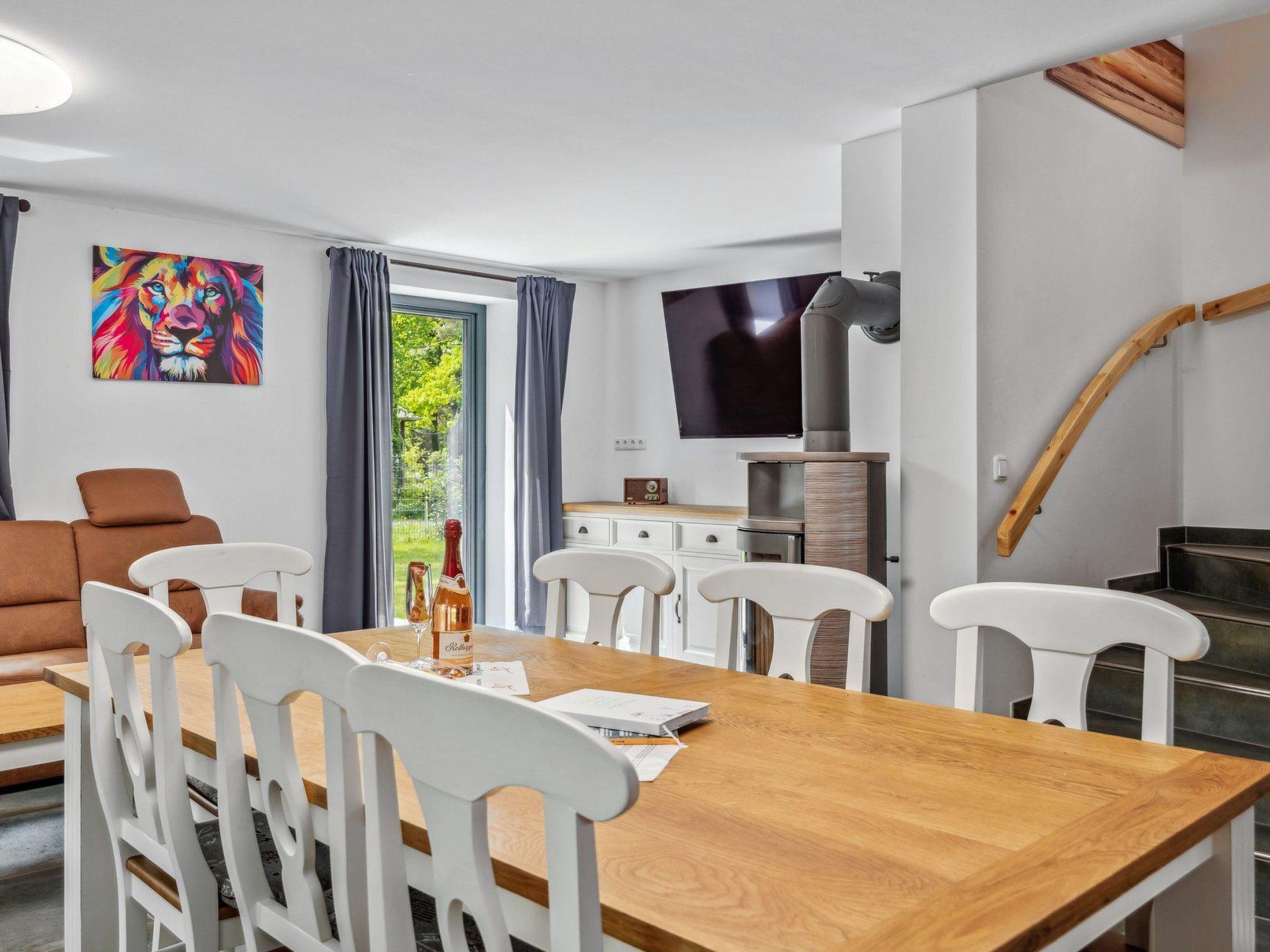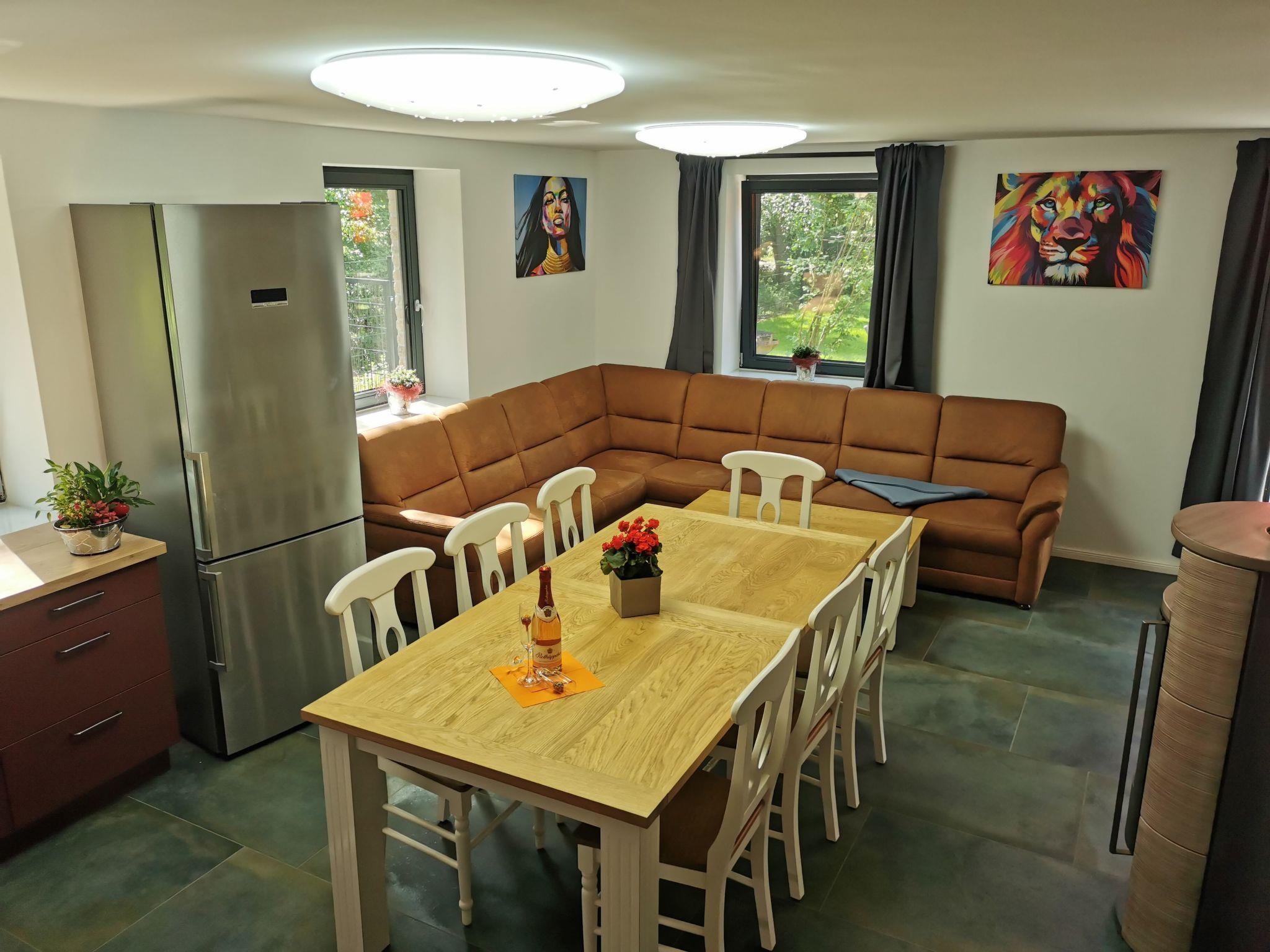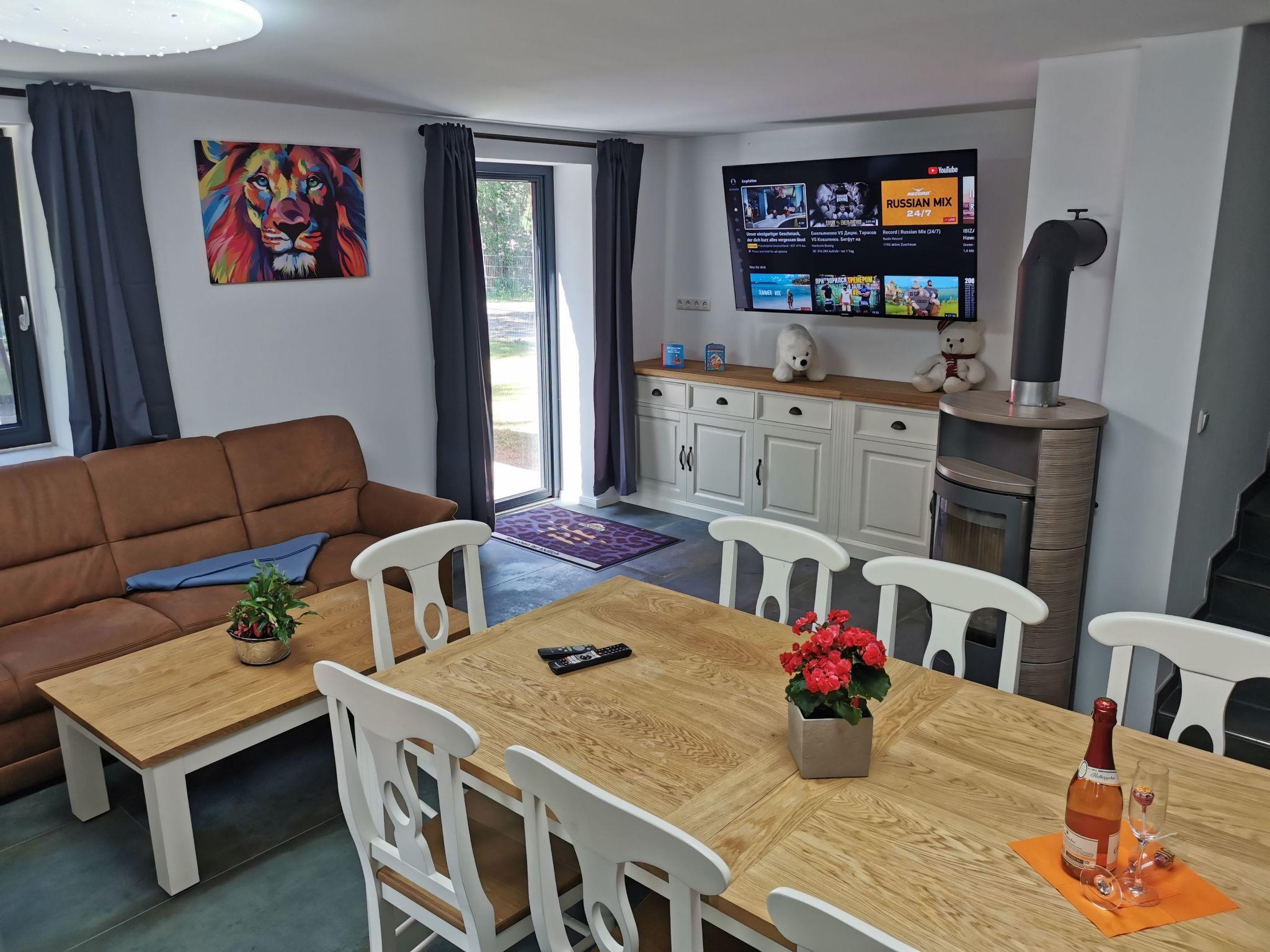 Unsere urgemütliche Ferienhaus Hakuna Matata (2 DHH) befindet sich in einer im Grünen gelegenen, von pommerscher Waldlandschaft umgebenen Ferienhaussiedlung am Rande des Dorfes Bodstedt und des Naturschutzgebietes „Vorpommersche Boddenlandschaft“. Es garantiert einen entspannten und ruhigen Urlaub. Mildes Küstenklima, kilometerlange, feine Sandstrände und urige Wälder formen eine idyllische Lage. Auszeit im Grünen - ein idealer Ferienort zu jeder Jahreszeit abseits vom Trubel der Seebäder.Verbringen Sie Ihren Urlaub in unserem liebevoll gestalteten „Haus Hakuna Matata. Das Grundstück umfasst 700 m² und die Wohnfläche im Haus beträgt ca. 280 m². Das Haus wurde im Juli 2022 fertiggestellt.Das Ferienhaus ist in 2 Doppelhaushälften unterteilt. Je Hälfte:Im Erdgeschoss befindet sich eine offene, voll ausgestattete Küche (sollte mal etwas fehlen, werden wir uns darum kümmern), das Wohnzimmer mit einer Couch und einem schönen, wohligen Kaminofen und ein Bad mit großer geschlossener Dusche und Föhn. Das Erdgeschoss ist gefliest und mit Fußbodenheizung ausgestattet. Da beiden Hälften in der Ausstattung und Dekoration nahezu identisch sind, wurde nur eine Hälfte fotografiert. Auf der sonnigen Terrasse kann man sich wunderbar erholen und tolle Grillabende erleben. Es stehen Gartenstühle mit verstellbaren Rückenlehnen zum Sonnenanbeten und ein Säulen-Umluftgrill zur Verfügung. Der Garten lädt zum Spielen, Relaxen, Verweilen und Entspannen ein.Im Obergeschoss befinden sich drei schöne Schlafräume mit je eigenem internetfähigen TV für insgesamt 6 Personen und ein Bad mit großer offener Dusche.Das Dachgeschoss ist ein großer offener Raum mit Ehebett und reichlich Platz zum spielen.