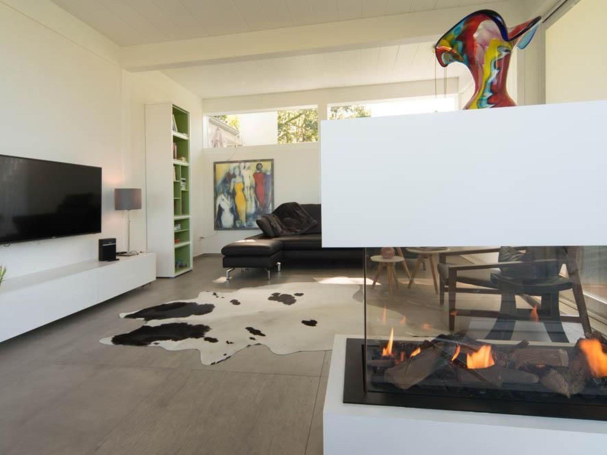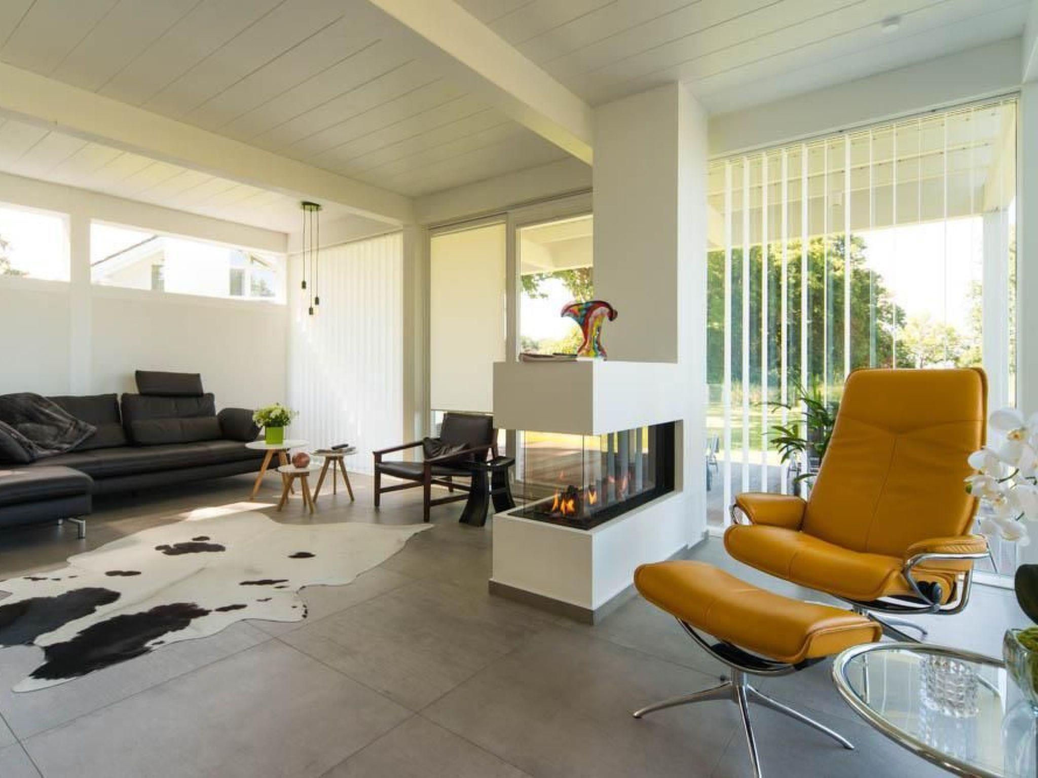 Es ist hochwertig und geschmackvoll ausgestattet, wie z.B. mit einer Vollkomfortwohnküche (Miele), Sauna (Bio/Dampf), großzügige bodengleiche Duschen, freistehende Badewanne im Schlafzimmer, einen dreiseitiger Gaskamin (Hotelkomfortschaltung) für die kalte Jahreszeit, Fußbodenheizung, Fliegengitter u.v.m.