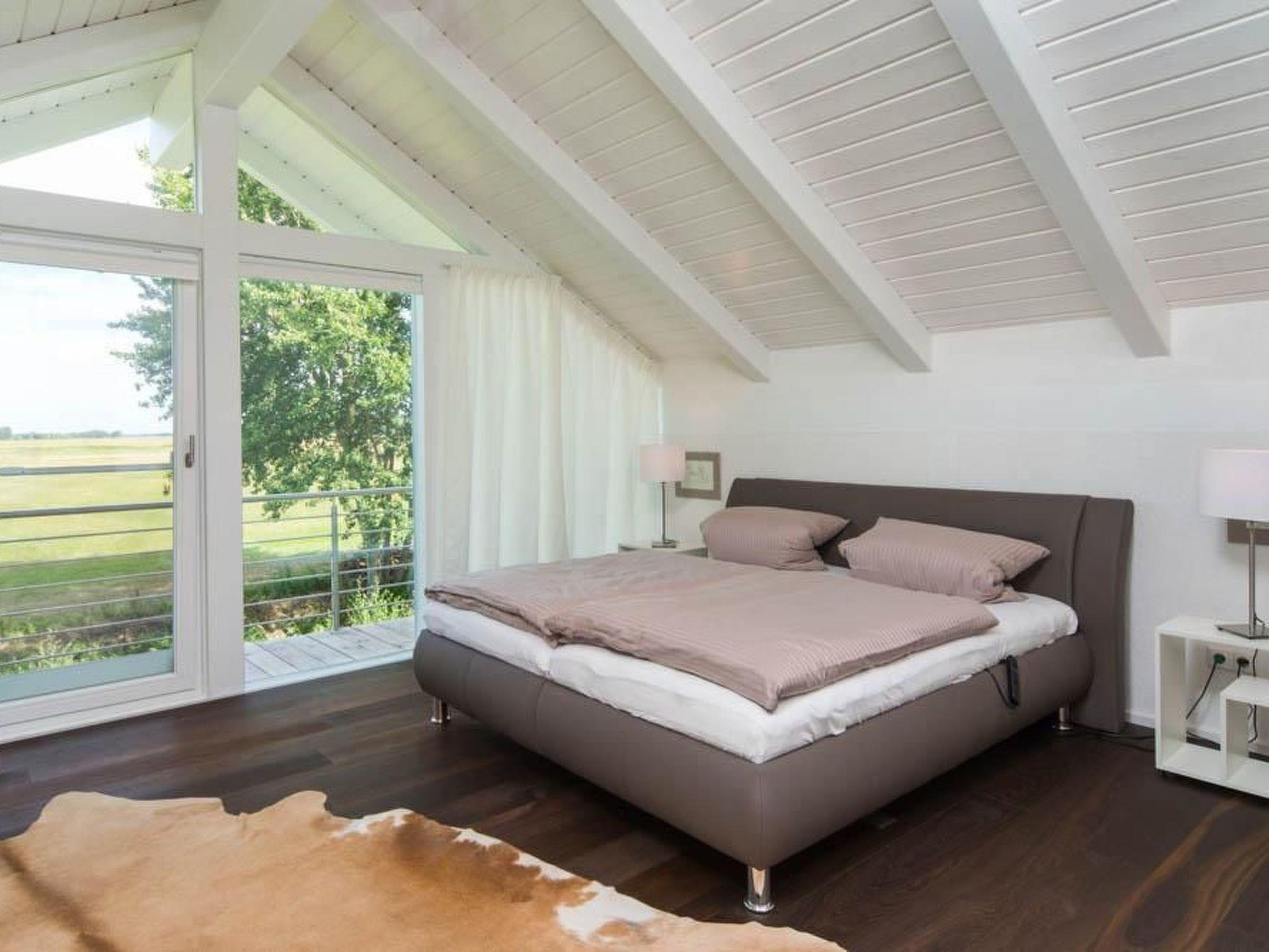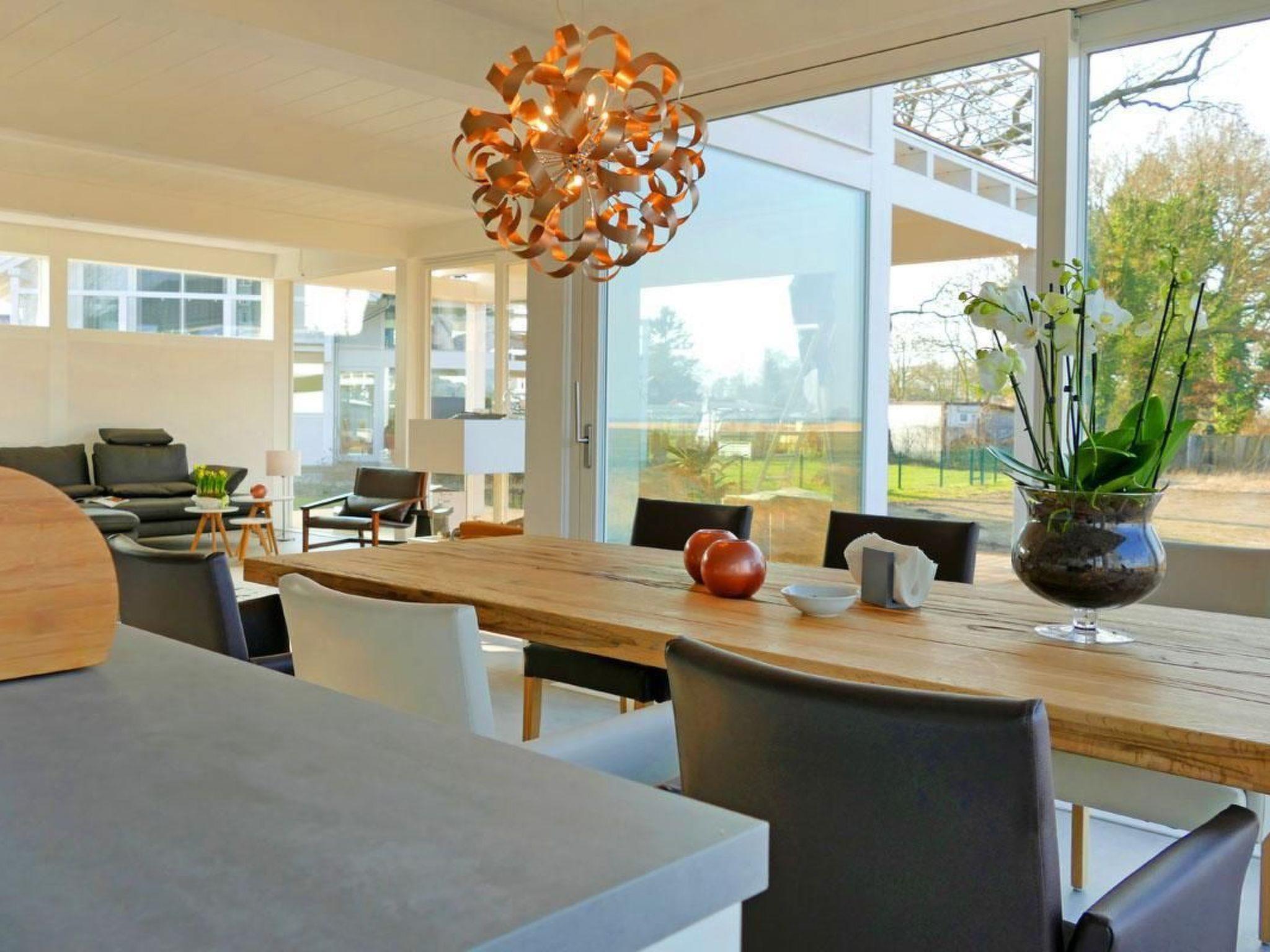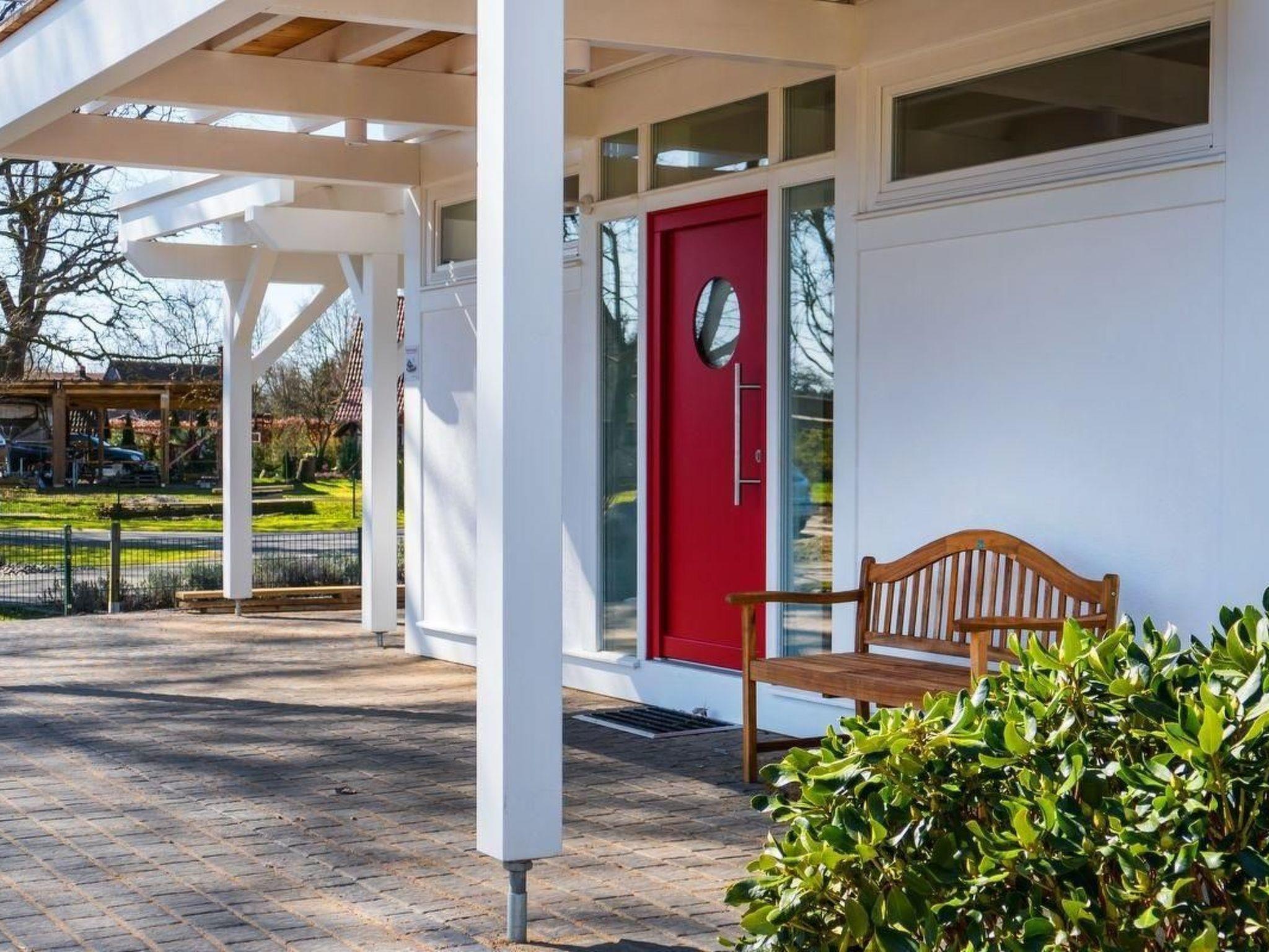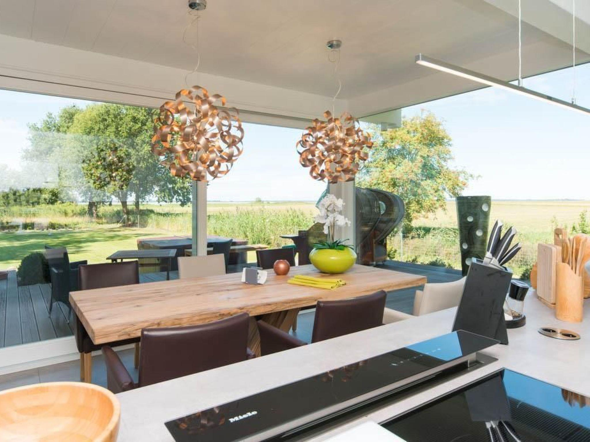 Modernes Ferienhaus FÜNFJAHRESZEITEN in Bodstedt mit Sauna, Kamin und Blick auf das Naturschutzgebiet.