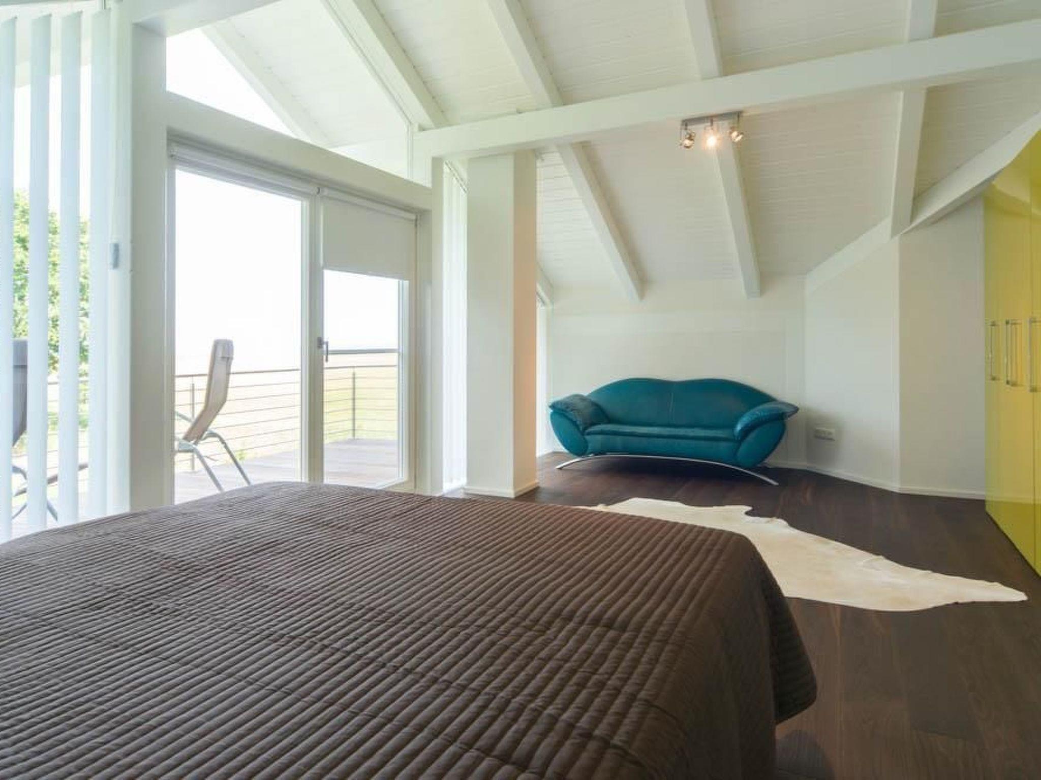 Das Obergeschoß hat eine Fläche von 82 m² und teilt sich auf in zwei großzügige Schlafzimmer mit traumhaften Boddenblick, 2 Bäder mit großzügigen Duschen sowie einer Sauna.