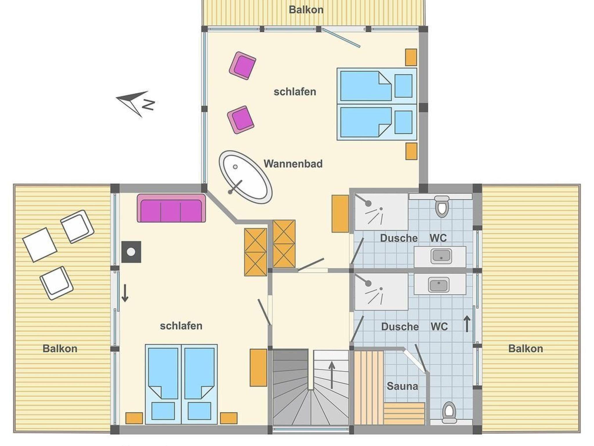 Weiterhin befinden sich an den Schlafräumen und Bädern großzügige Balkone.