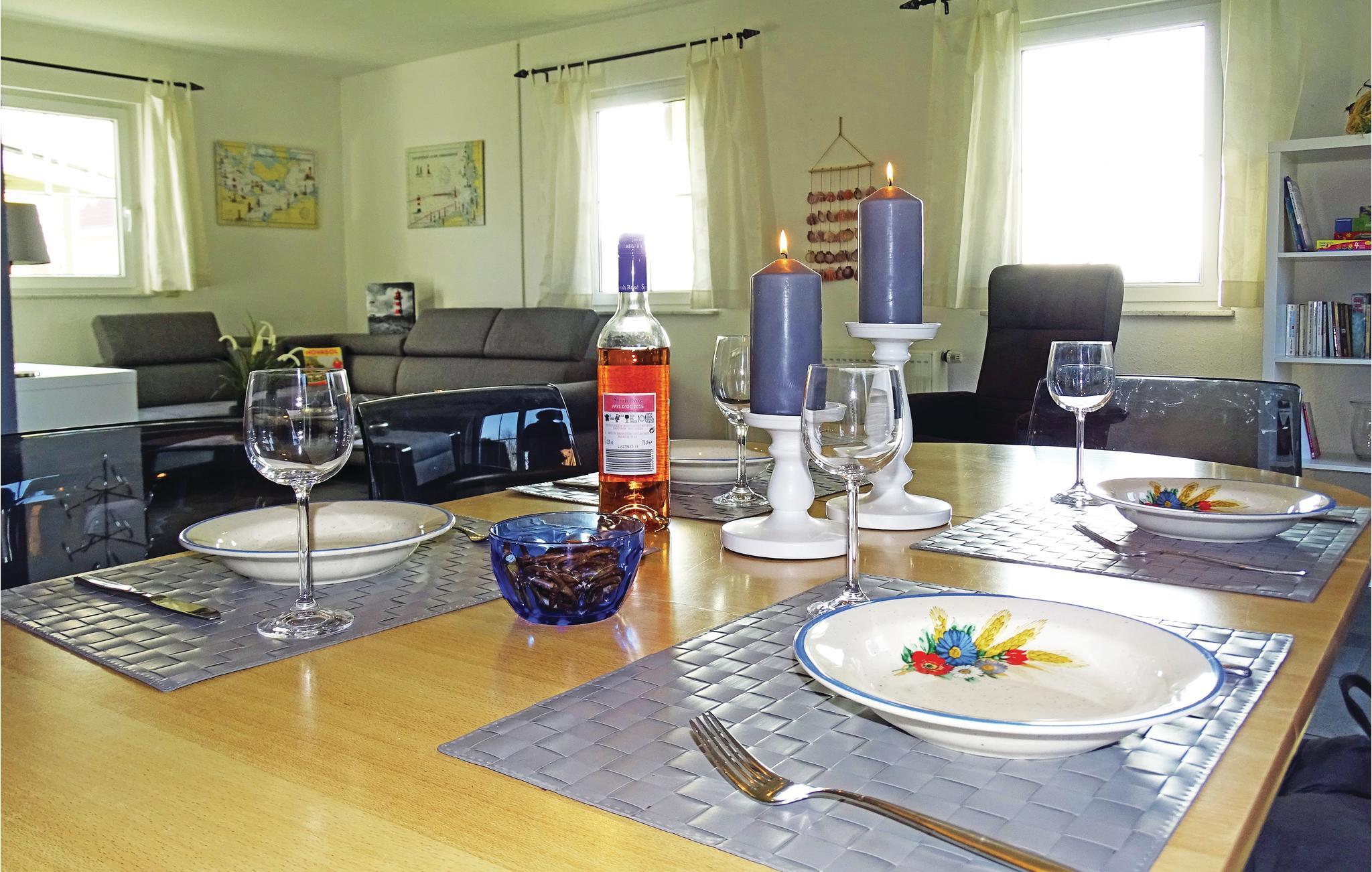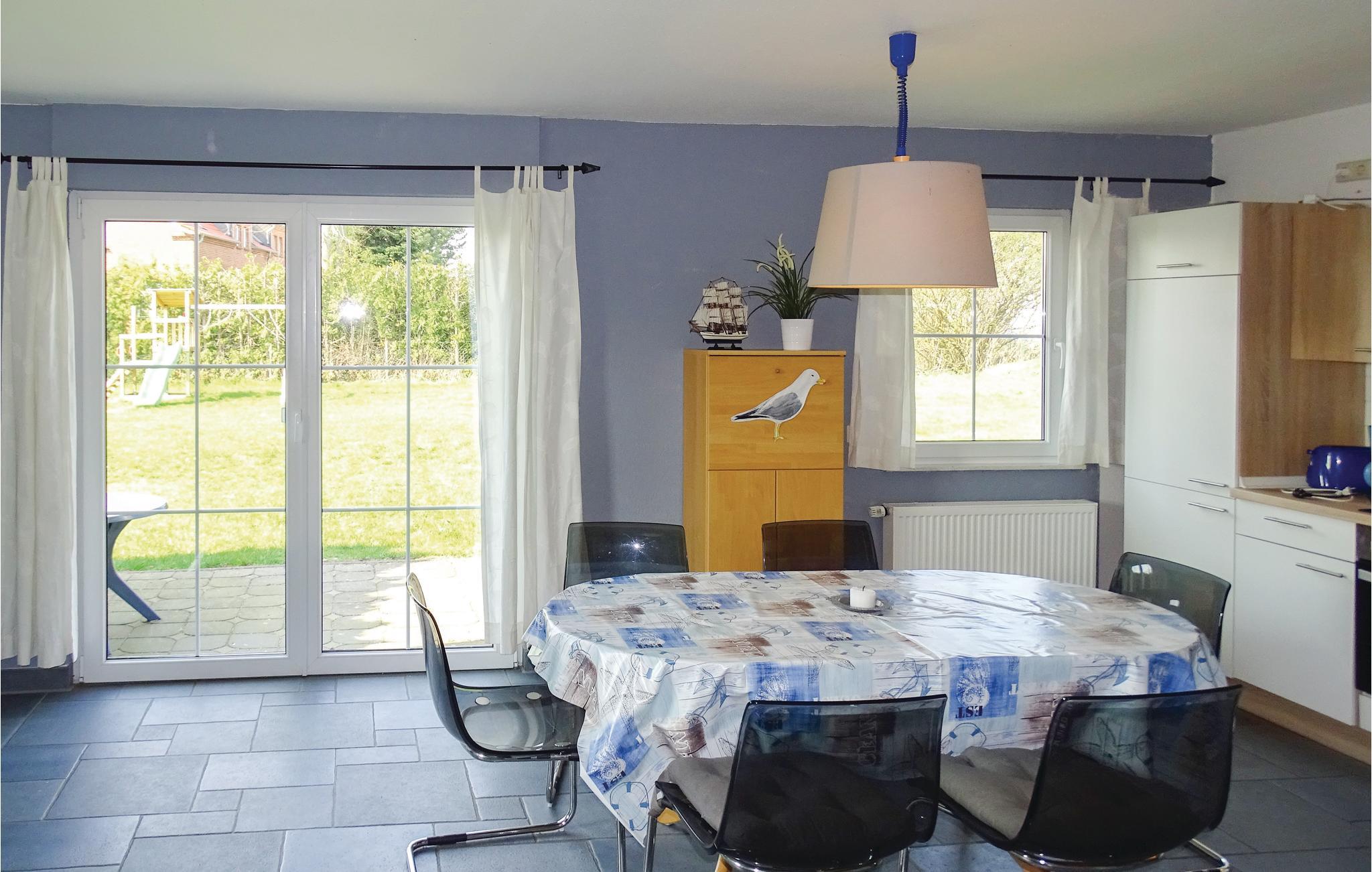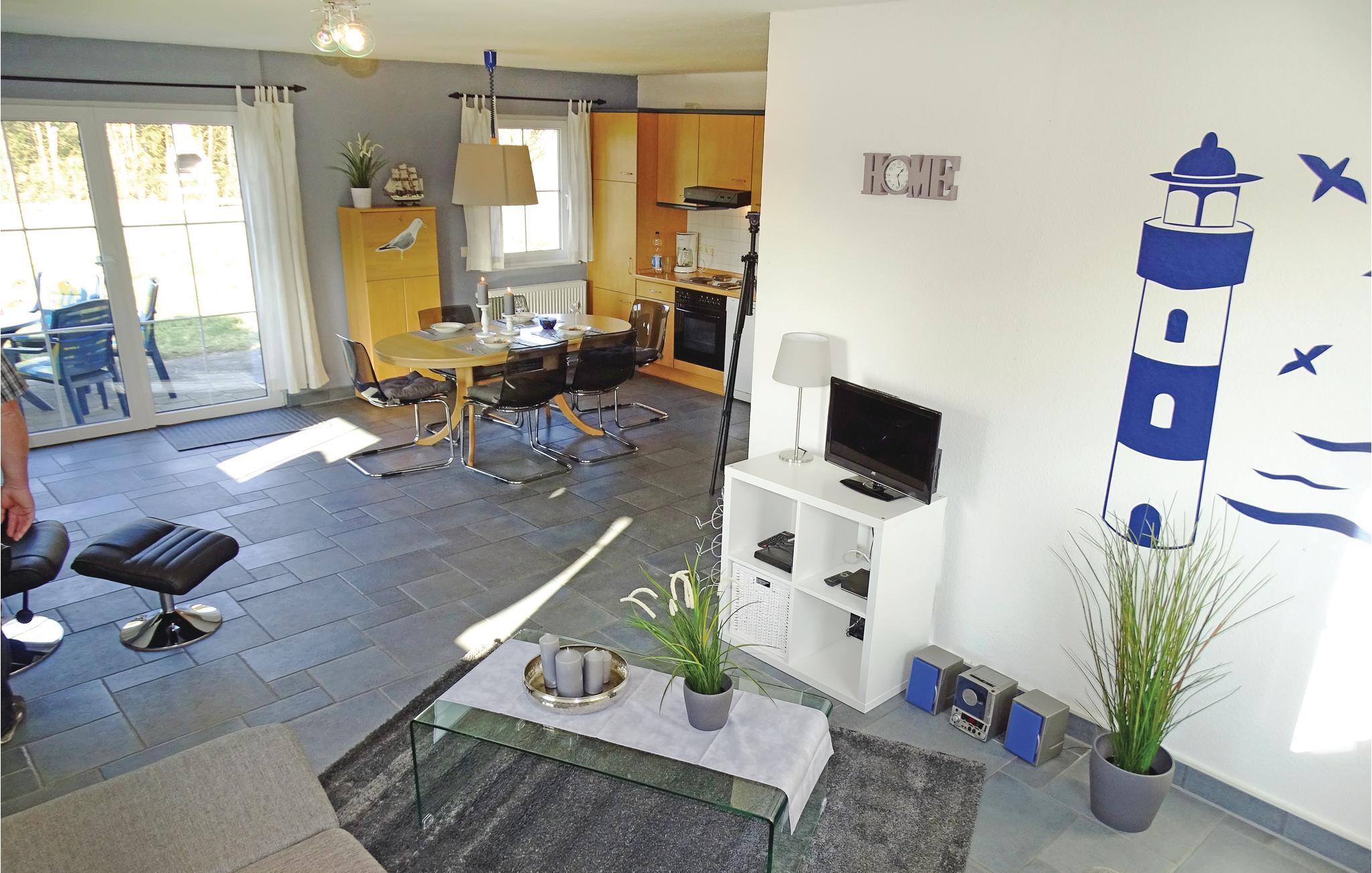 Diese schöne Ferienwohnung mit offener Küche und hellem Essbereich liegt im Erdgeschoss des Hauses in Boiensdorf.