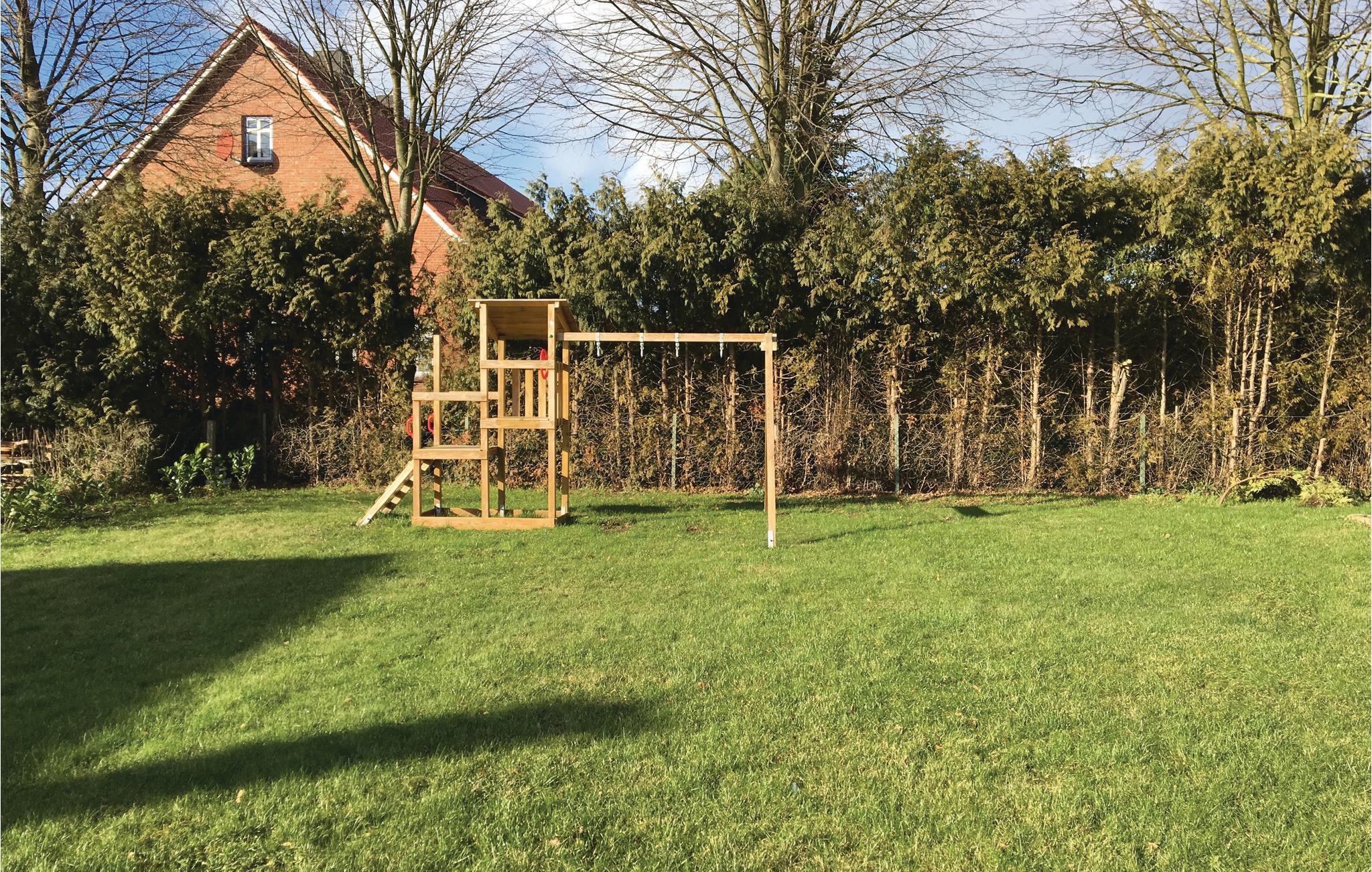 Die Einrichtung ist maritim gehalten und dadurch sehr gemütlich und einladend. Den Garten mit Grill und Spielgeräten teilen Sie mit anderen Gästen. Hier können Sie sich bei schönem Wetter entspannen und die Sonne genießen, während die Kinder spielen. Die Sandmuschel für die Kleinen ist im Winter eingelagert und steht nur im Sommer zur Verfügung.