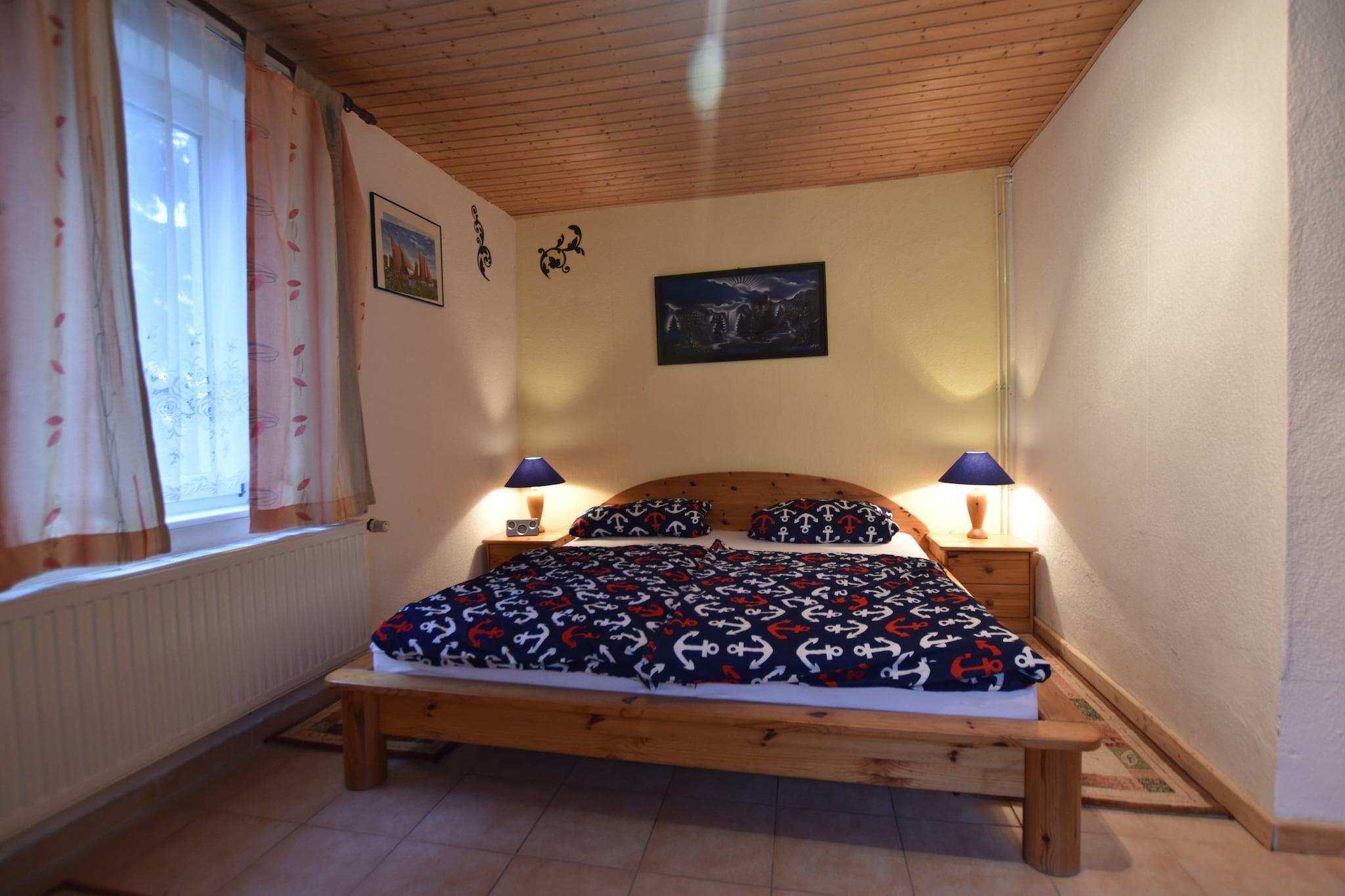 Parterre: (Wohnzimmer(Schlafcouch 1 Pers., TV, Sitzecke), Küche(Esstisch(4 Personen), Wasserkocher, Toaster, Kochherd(4 Kochplatten, elektrisch), Dunstabzugshaube, Kaffeemaschine, Backofen, Mikrowelle, Kühlschrank), Schlafzimmer(Schlafcouch 1 Pers., Doppelbett king size), Badezimmer(Dusche, Waschbecken, Toilette), Heizung, Kinderbett, Hochstuhl) Terrasse, Garten(Gemeinschaftliche Nutzung mit dem Eigentümer, umzäunt), Fahrradabstellraum, Gartenmöbel, Parkplatz, Spielgeräte