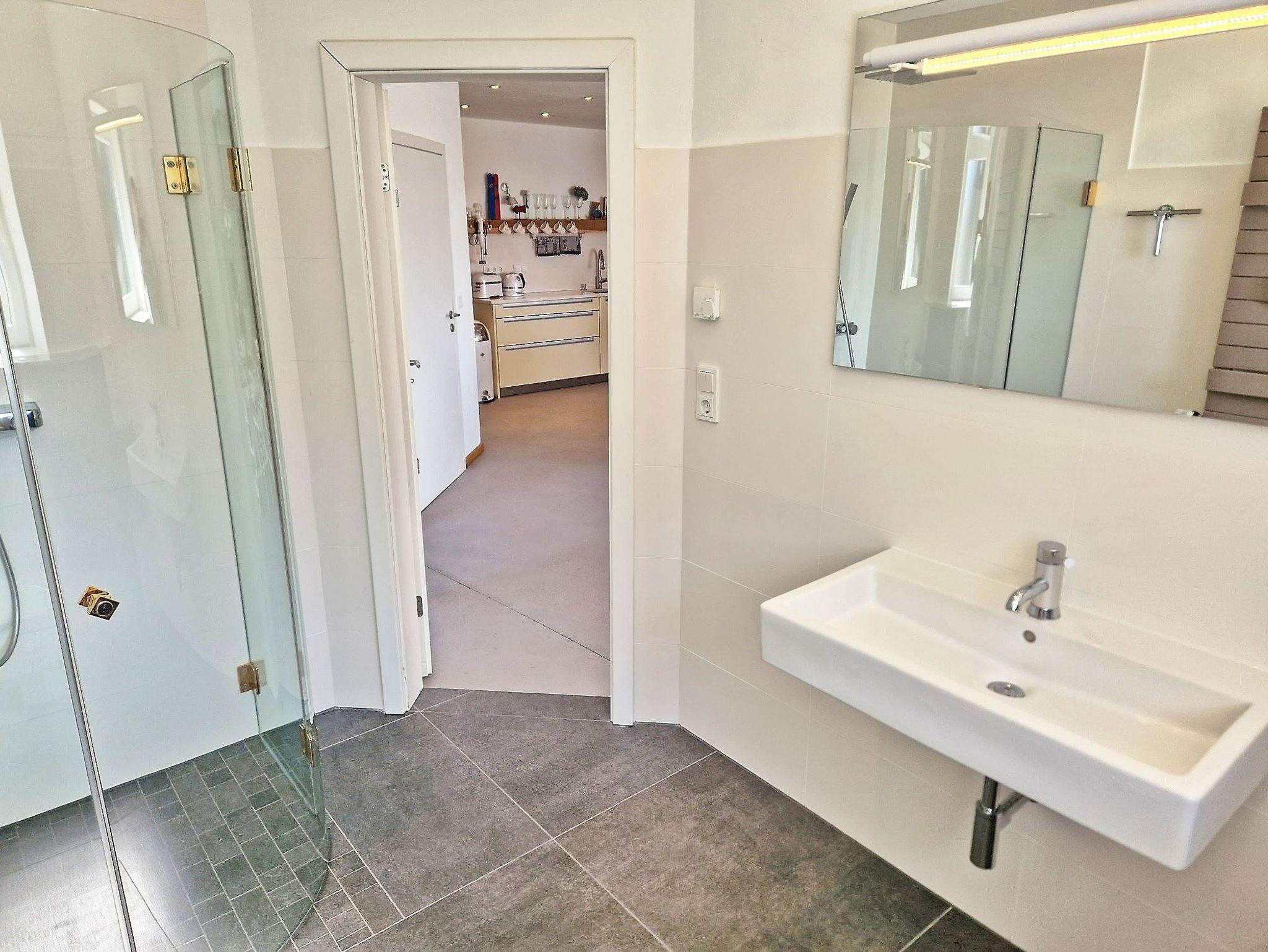 - Badezimmer mit Dusche/WC und Fußbodenheizung