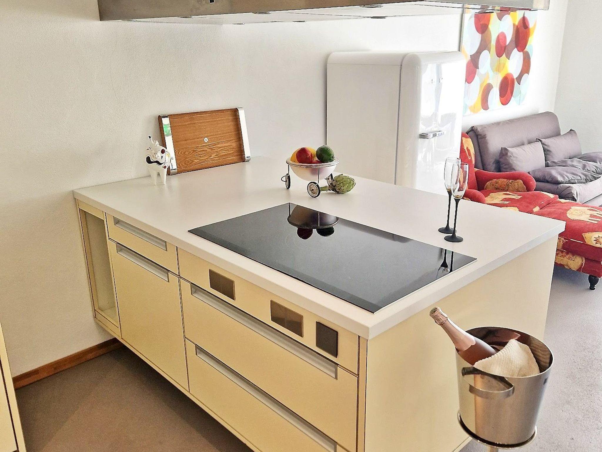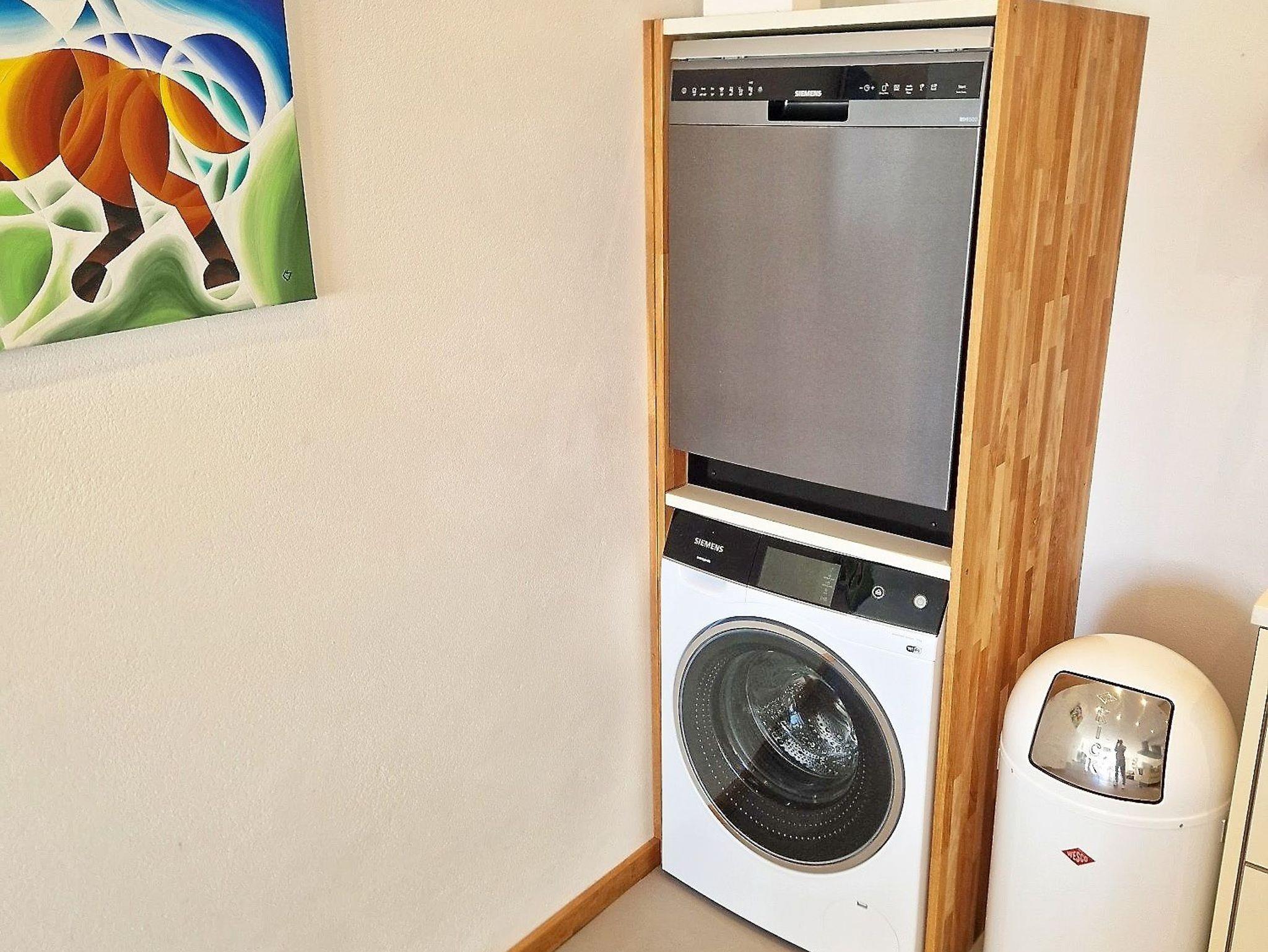 Küchenausstattung: Einbaukaffeeautomat, Toaster, Wasserkocher, Kühlschrank mit Gefrierfach und Eiswürfelfunktion, Backofen, Induktionsherd, Geschirrspüler, Geschirr, Besteckund vieles mehr)