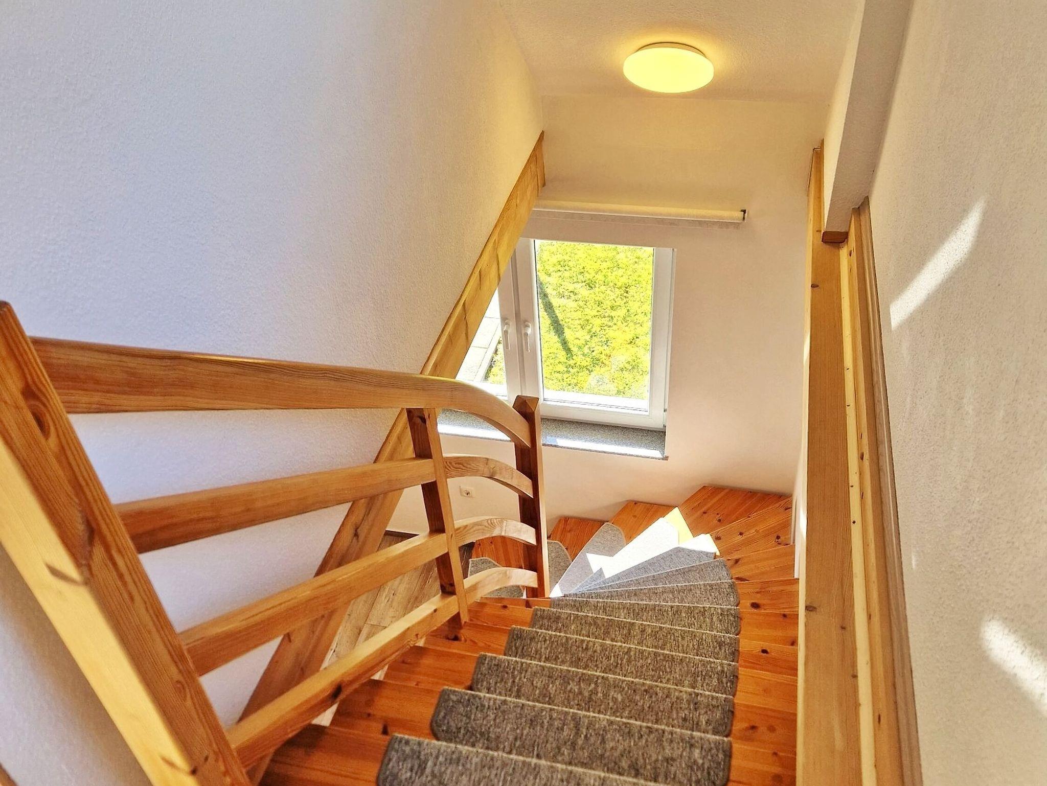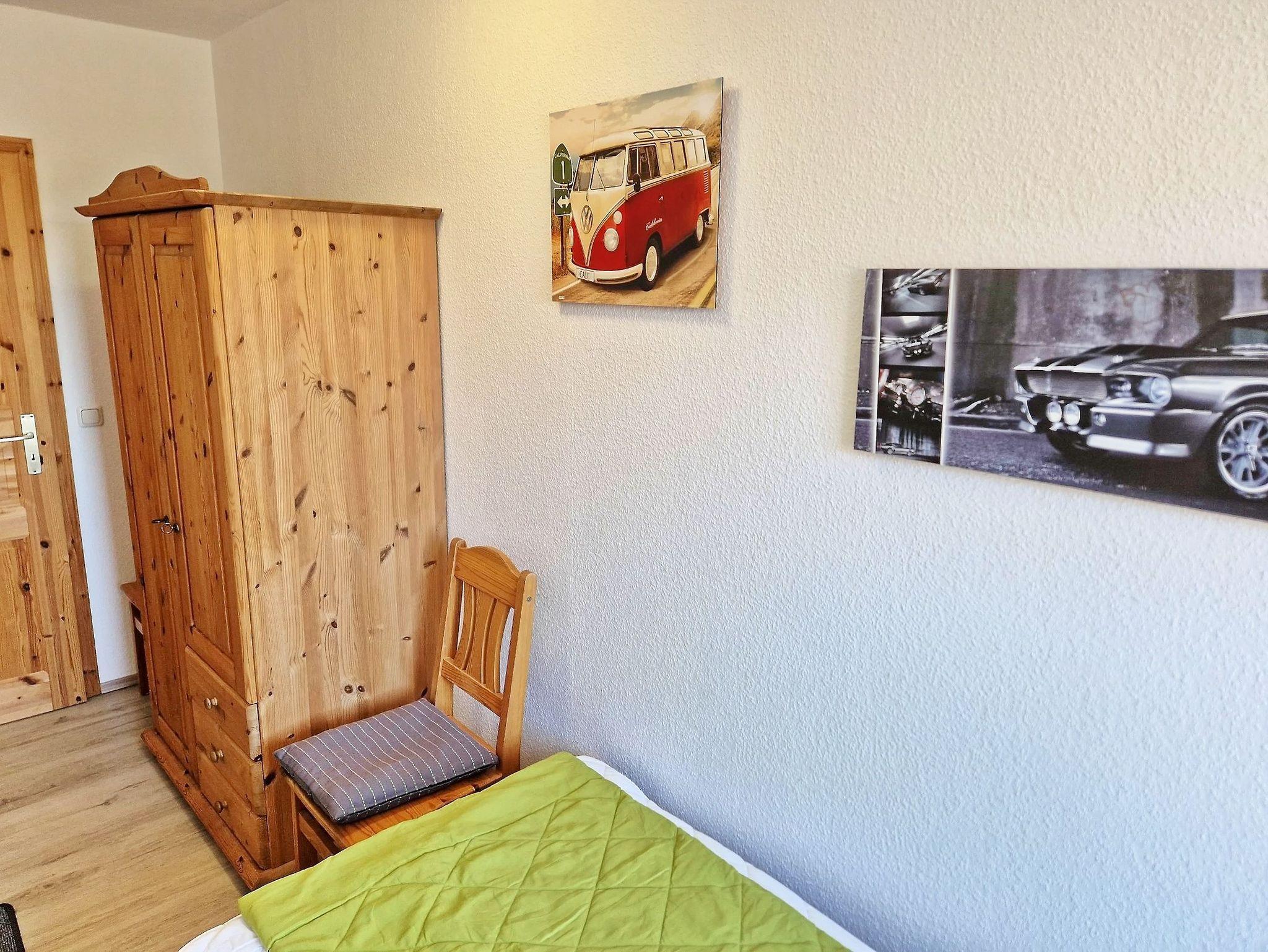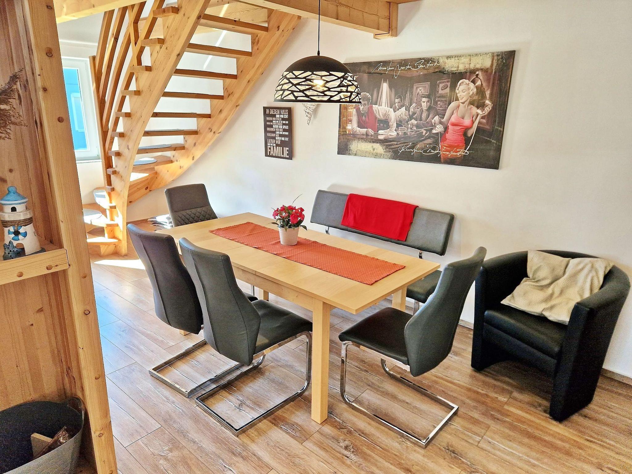 Über die Treppe erreichen Sie das Dachgeschoss mit drei Schlafzimmern. Schlafzimmer 1: ein Doppelbett (1,80 x 2,00 m) Schlafzimmer 2: drei Einzelbetten (0,90 x 2,00 m) Schlafzimmer 3: zwei Einzelbetten (0,80 x 2,00 m) mit Balkon und Seeblick auf die Ostsee. Alle Zimmer sind mit Mücken-Gase und verdunklungsfähigen Vorhängen ausgestattet. Kinderbett und Hochstuhl sind vorhanden.