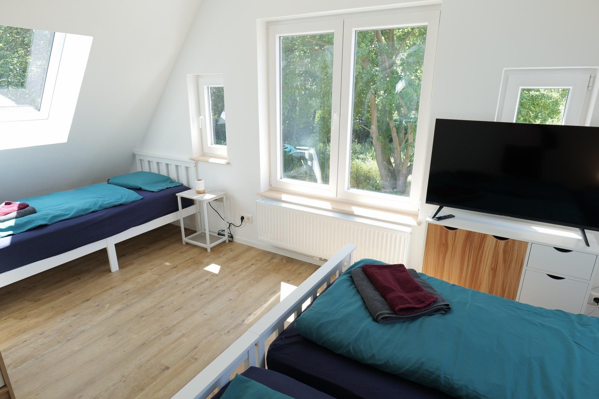 - 2. Schlafzimmer mit Doppelbett (1,80 x 2,00 m), 1 Einzelbett (0,90 x 2,00 m), Flat-TV