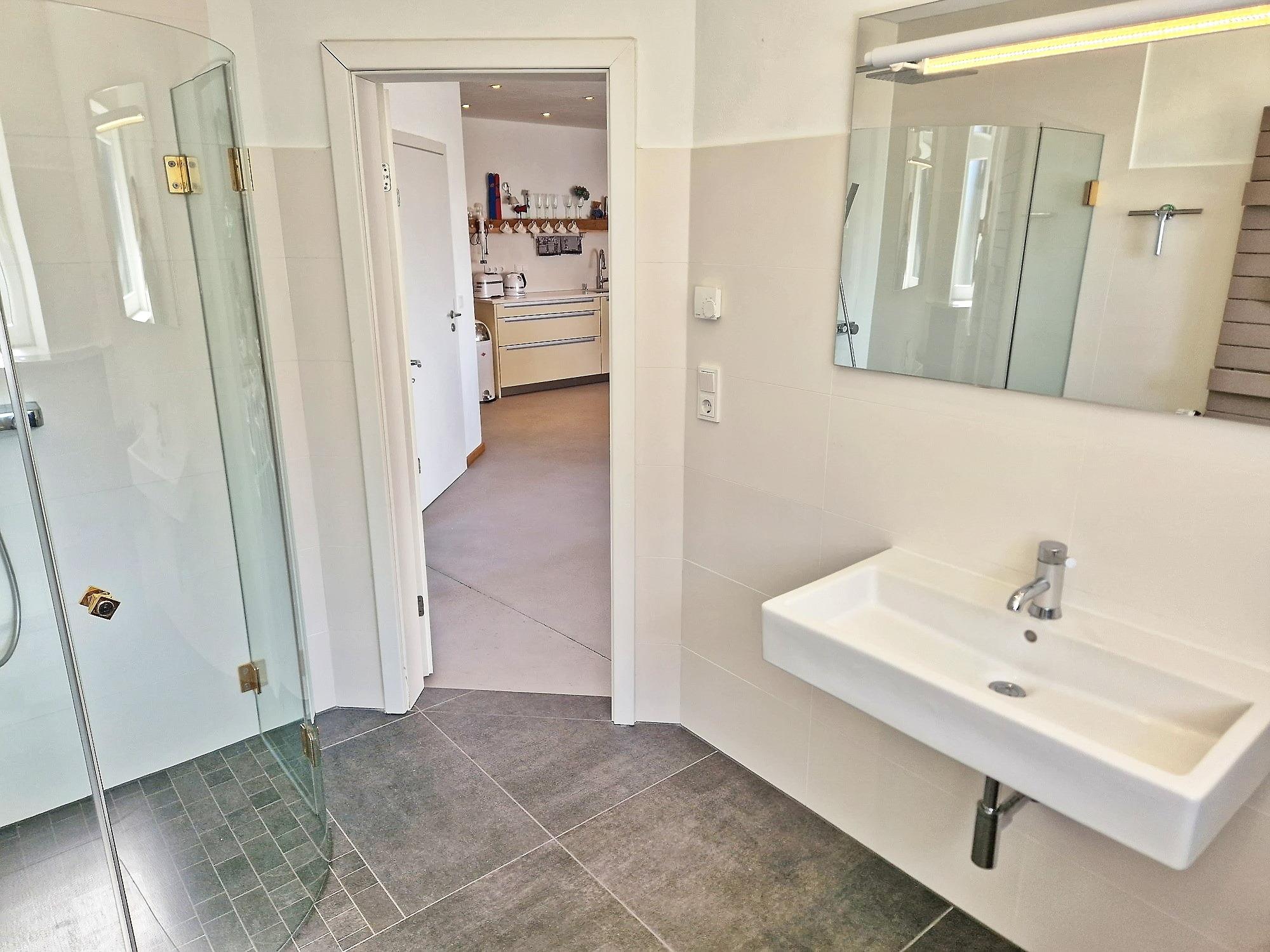 - Badezimmer mit Dusche/WC und Fußbodenheizung