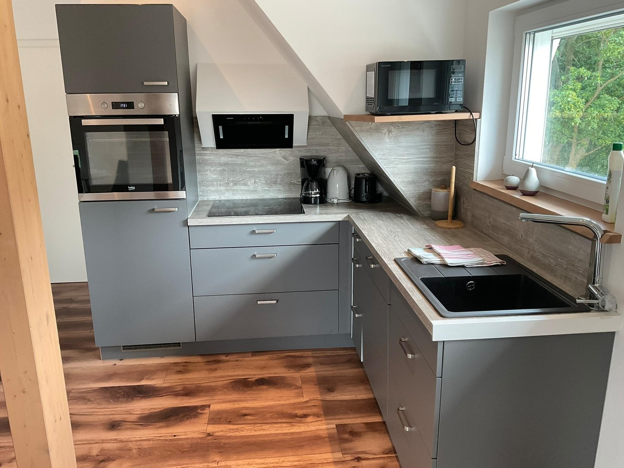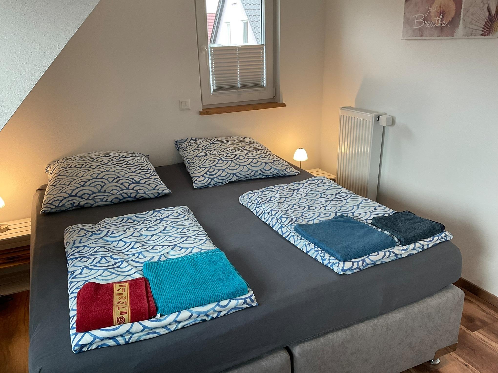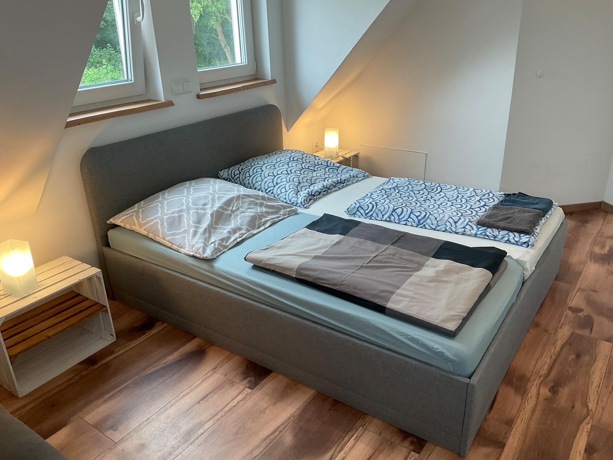 Unsere moderne Ferienwohnung befindet sich im 1. Obergeschoss eines Ferienhauses. Vom Balkon aus genießen Sie den Blick auf die nahe gelegene Ostsee. Aufgeteilt ist die Wohnung in Wohnzimmer mit offener Küche (vollausgestattet), Essbereich, Flat-TV, 2 Schlafzimmer (1. Schlafzimmer mit Doppelbett und TV; 2. Schlafzimmer mit Doppelbett, Badezimmer, offene Küche, Wohnbereich mit Essecke. Eine zusätzliche Terasse im Erdgeschoss mit Garten zur Wohnung ist vorhanden.