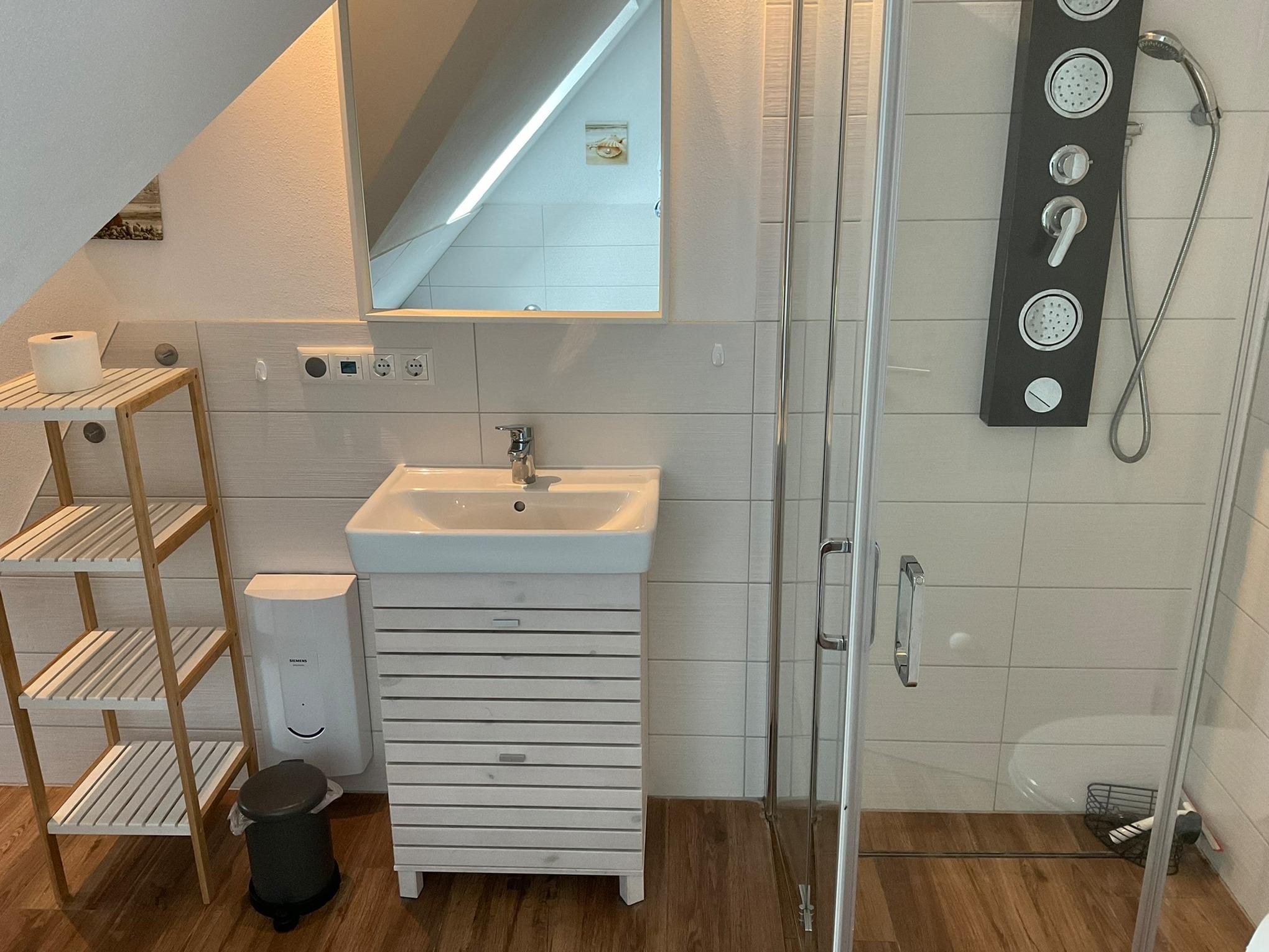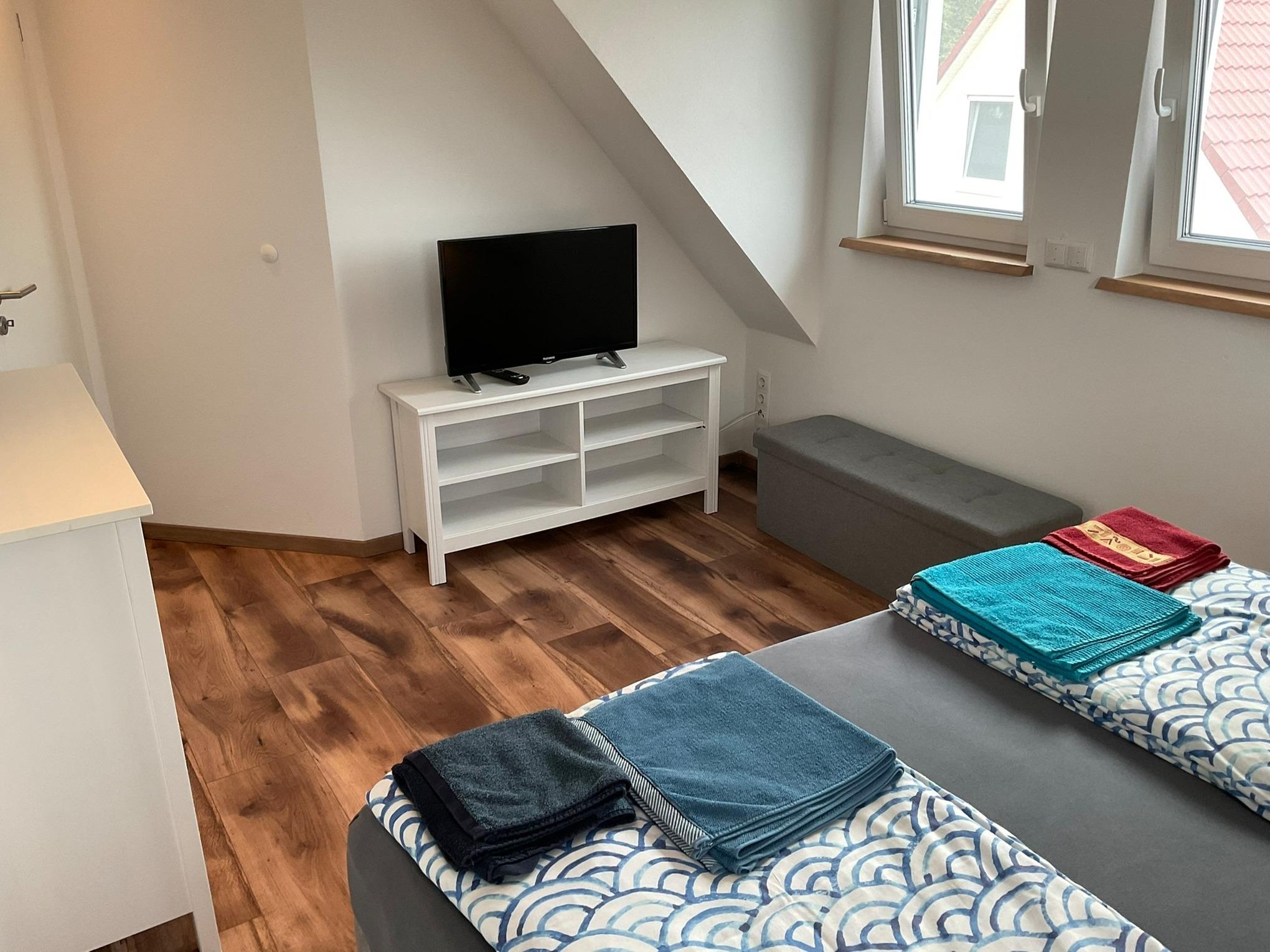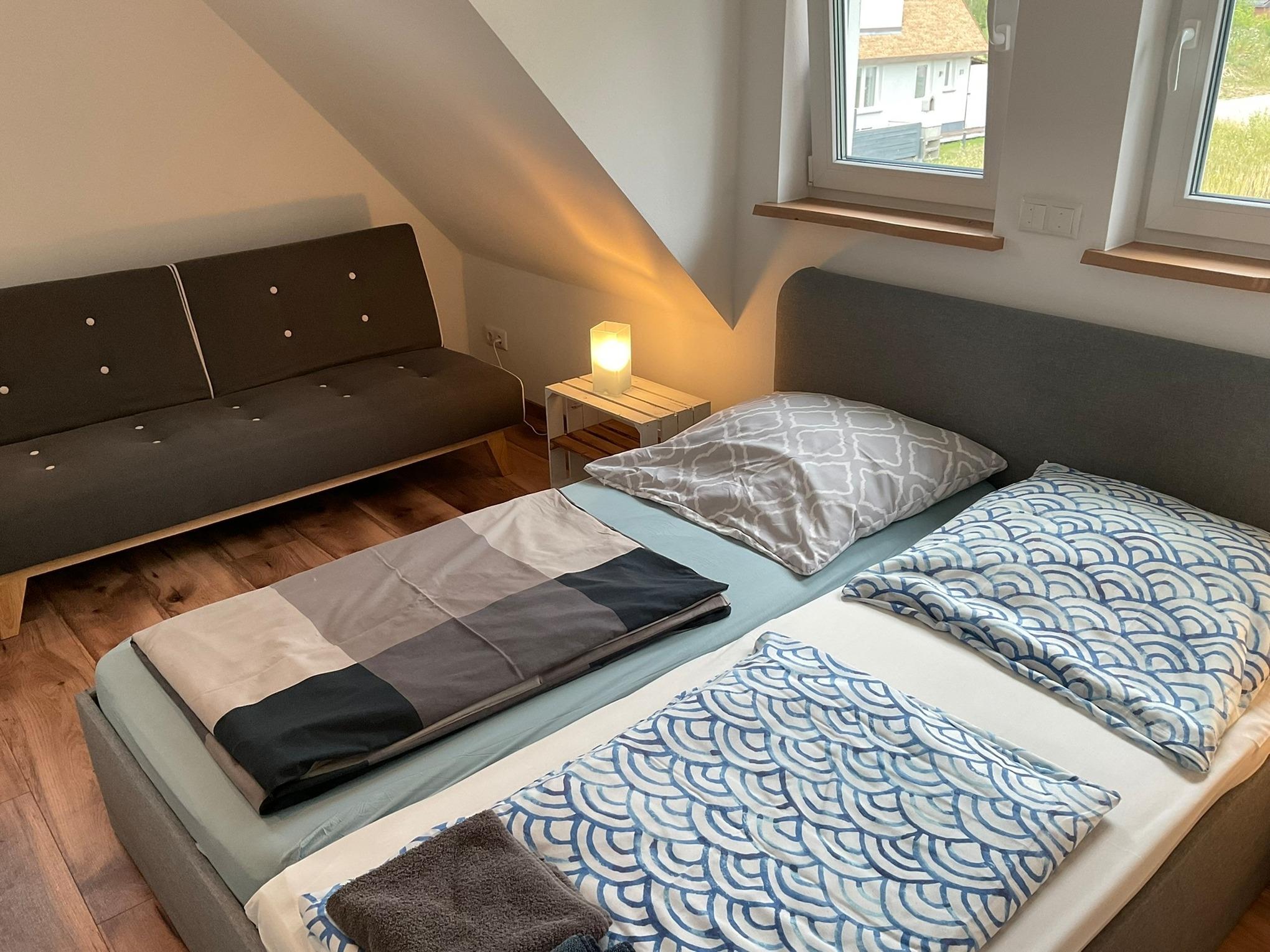 Unsere moderne Ferienwohnung befindet sich im 1. Obergeschoss eines Ferienhauses. Vom Balkon aus genießen Sie den Blick auf die nahe gelegene Ostsee. Aufgeteilt ist die Wohnung in Wohnzimmer mit offener Küche (vollausgestattet), Essbereich, Flat-TV, 2 Schlafzimmer (1. Schlafzimmer mit Doppelbett und TV; 2. Schlafzimmer mit Doppelbett, Badezimmer, offene Küche, Wohnbereich mit Essecke. Eine zusätzliche Terasse im Erdgeschoss mit Garten zur Wohnung ist vorhanden.