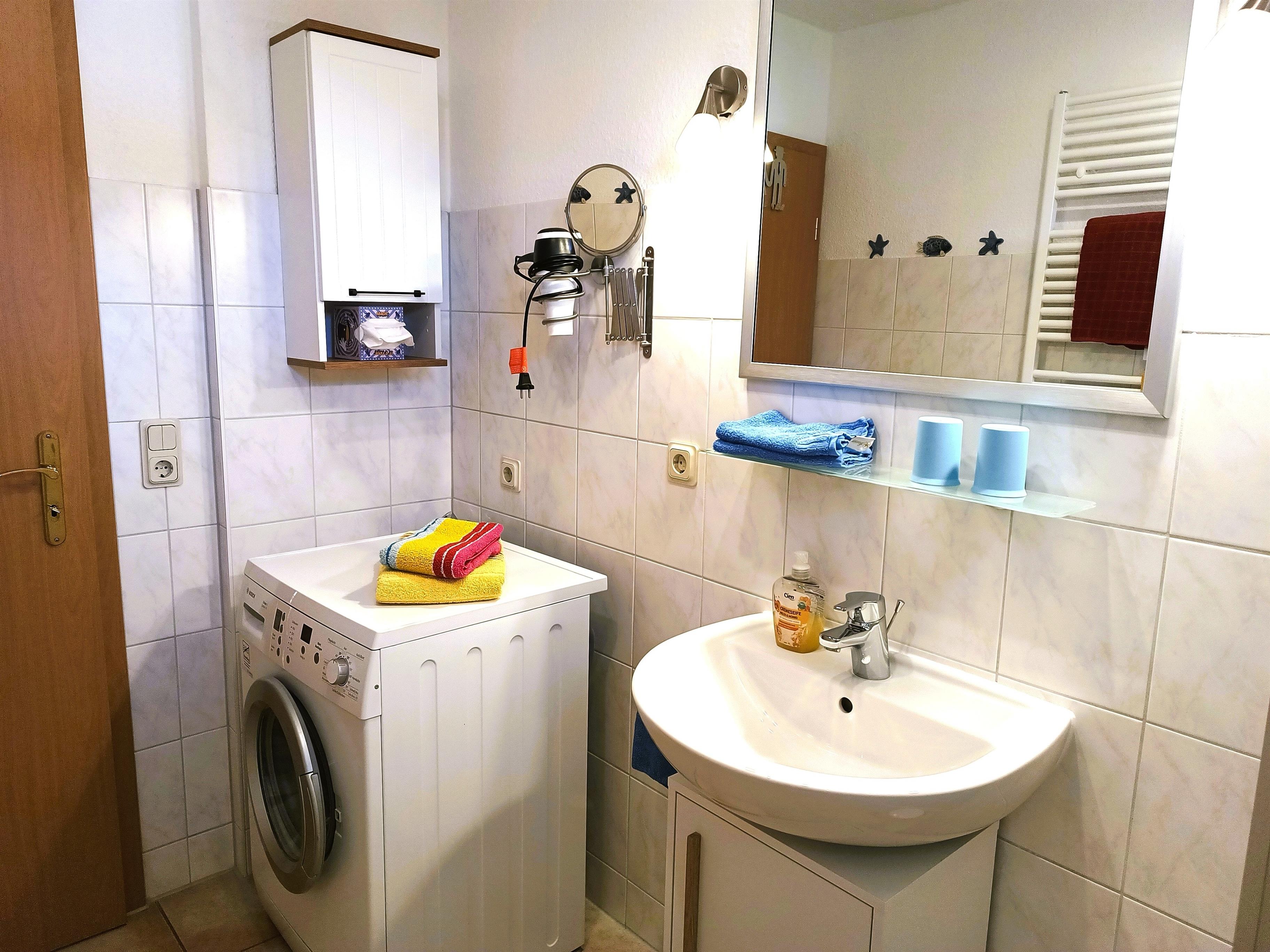 Im Bad mit Dusche/WC und Handtuchheizung steht Ihnen eine Waschmaschine zur Verfügung.