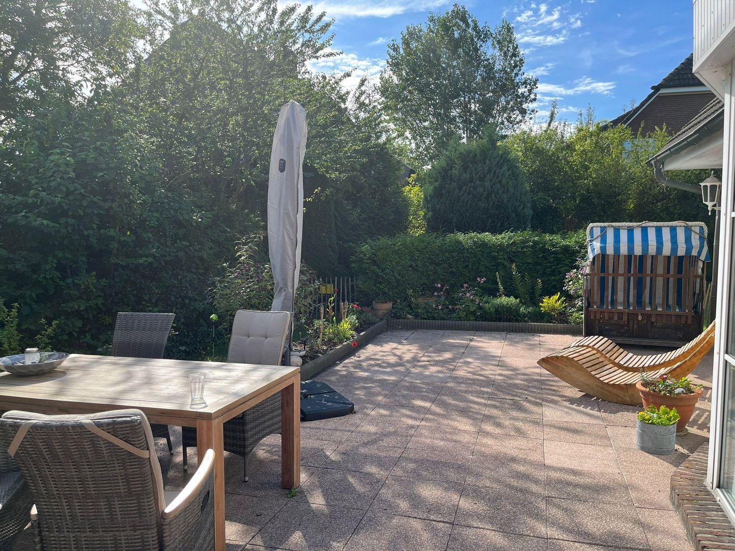Süd-Terrasse mit großem Garten. Hier können Sie die Sonne genießen oder ein