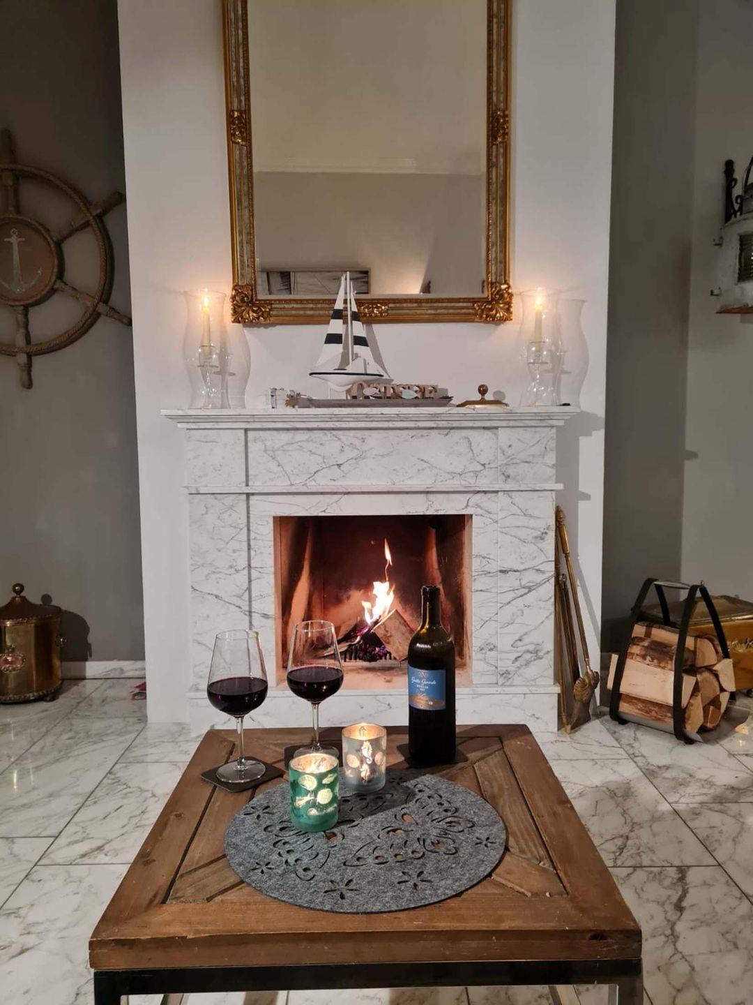 Schlafzimmer, ein Duschbad, ein Kaminzimmer mit Smart-TV und Schlafcouch. Des