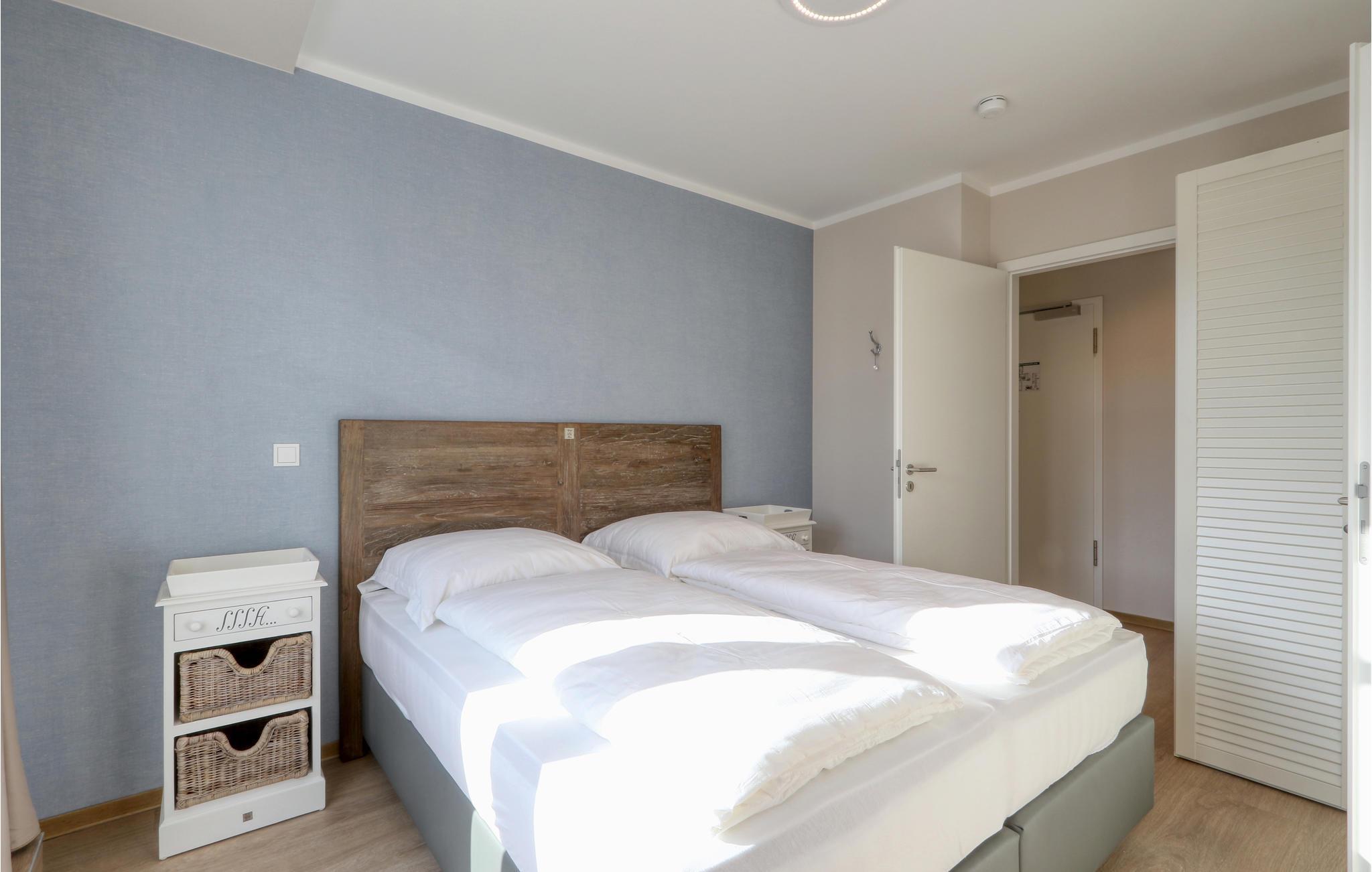 Ihr Wohlfühl-Apartment ist mit einem Doppelbett und einer privaten Sauna ausgestattet und überzeugt durch elegante Einrichtung im modernen Landhausstil, gemütliche Naturmaterialien und maritime Details.