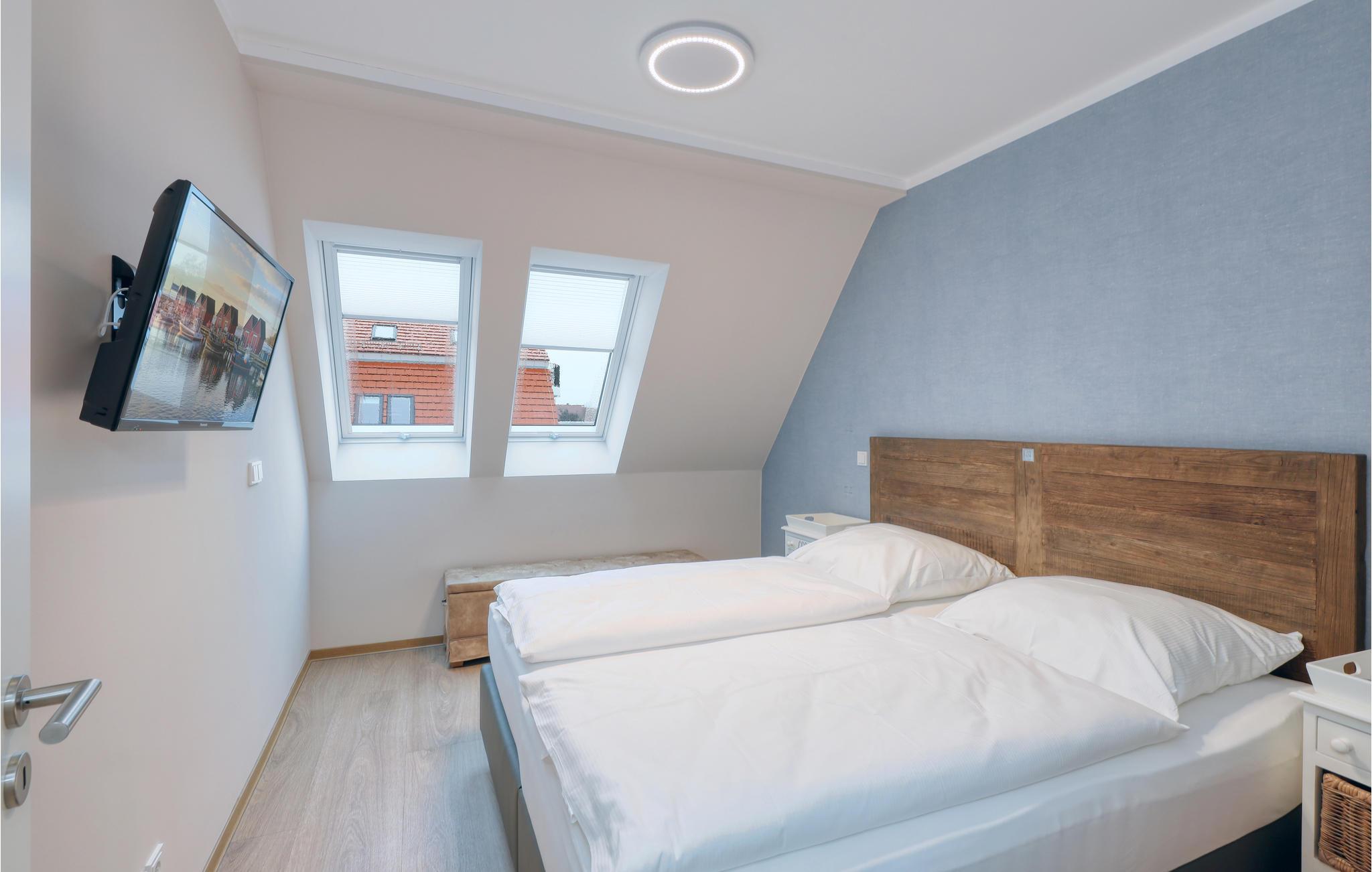 Ihr Wohlfühl-Apartment ist mit einem Doppelbett ausgestattet und überzeugt durch elegante Einrichtung im modernen Landhausstil, gemütliche Naturmaterialien und maritime Details. Für Ihren Komfort im Urlaub sind eine Klimaanlage & Rolläden vorhanden. Genießen Sie die private Sauna im Apartment nach einem langen Tag an der Ostsee.