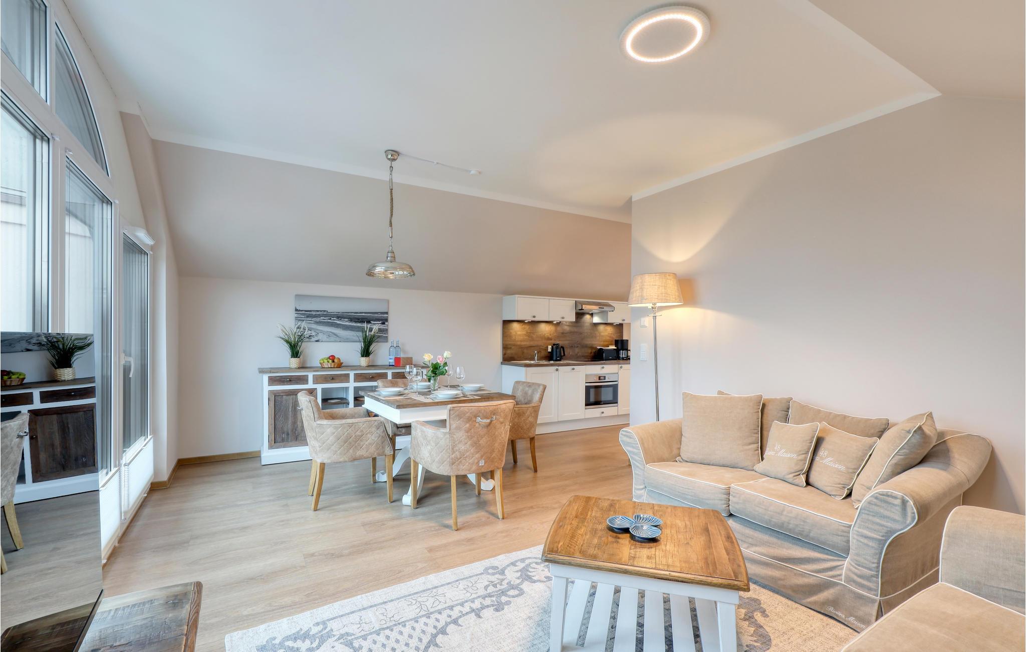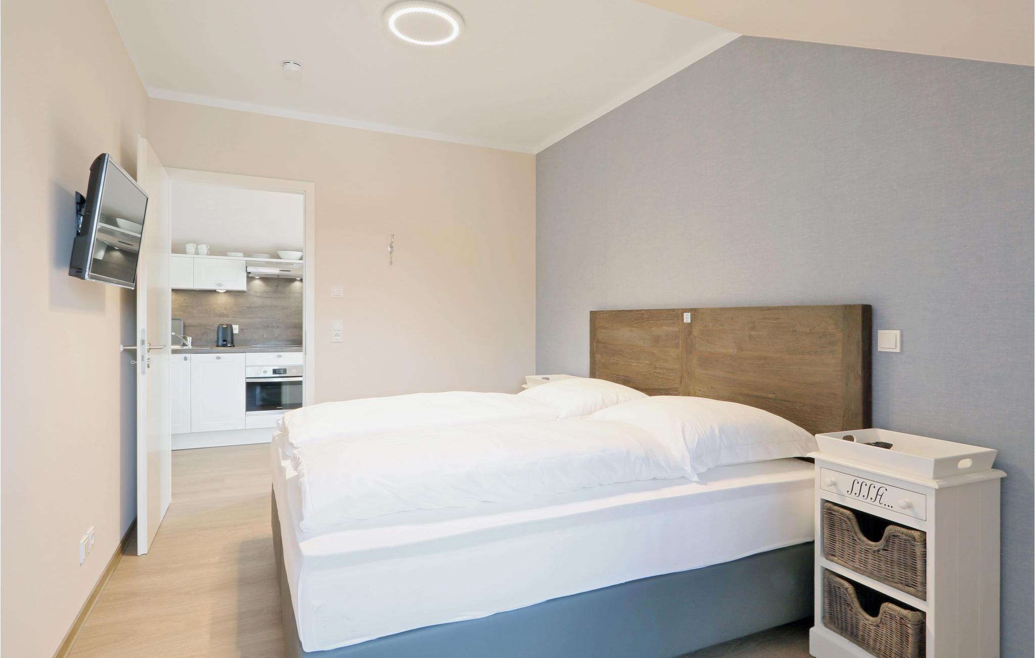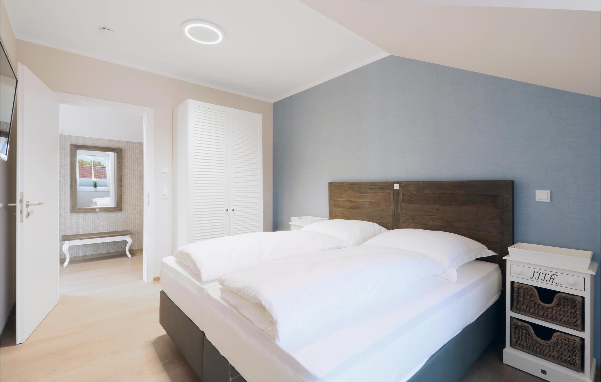 Ihr Wohlfühl-Apartment ist mit einem Doppelbett ausgestattet und überzeugt durch elegante Einrichtung im modernen Landhausstil, gemütliche Naturmaterialien und maritime Details, außerdem gibt es eine private Sauna.