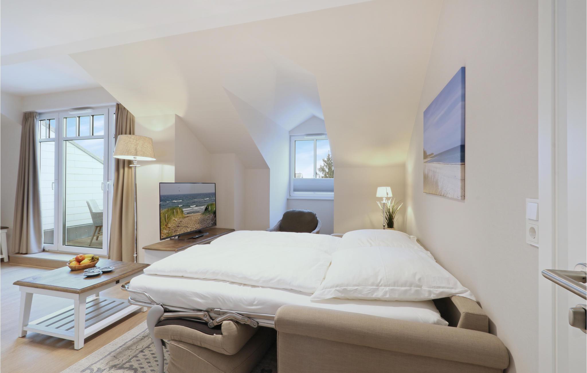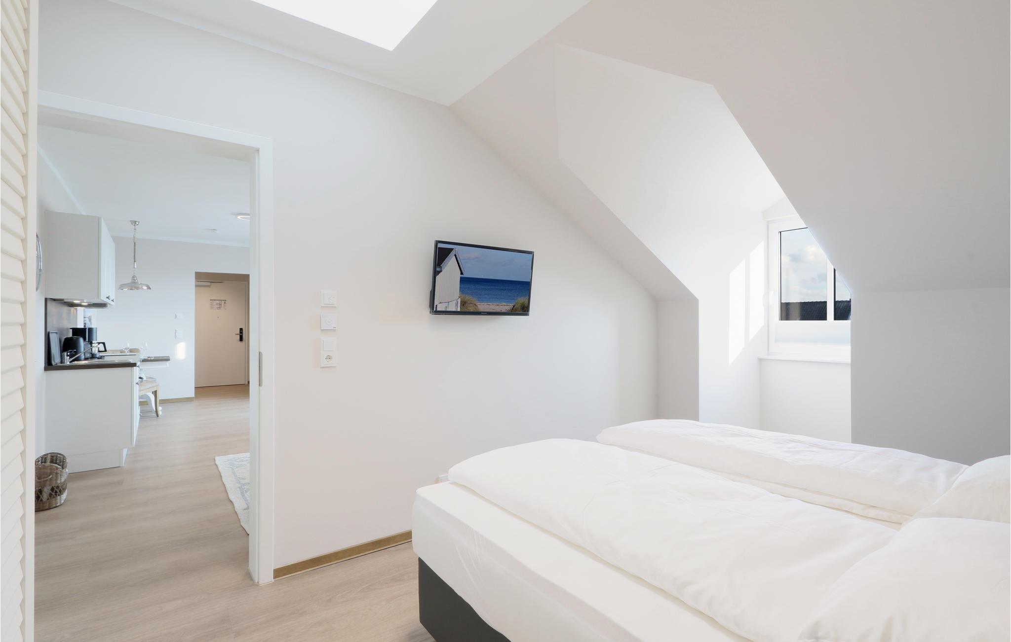 Ihr Wohlfühl-Apartment ist mit einem Doppelbett ausgestattet und überzeugt durch elegante Einrichtung im modernen Landhausstil, gemütliche Naturmaterialien und maritime Details, außerdem gibt es eine private Sauna.