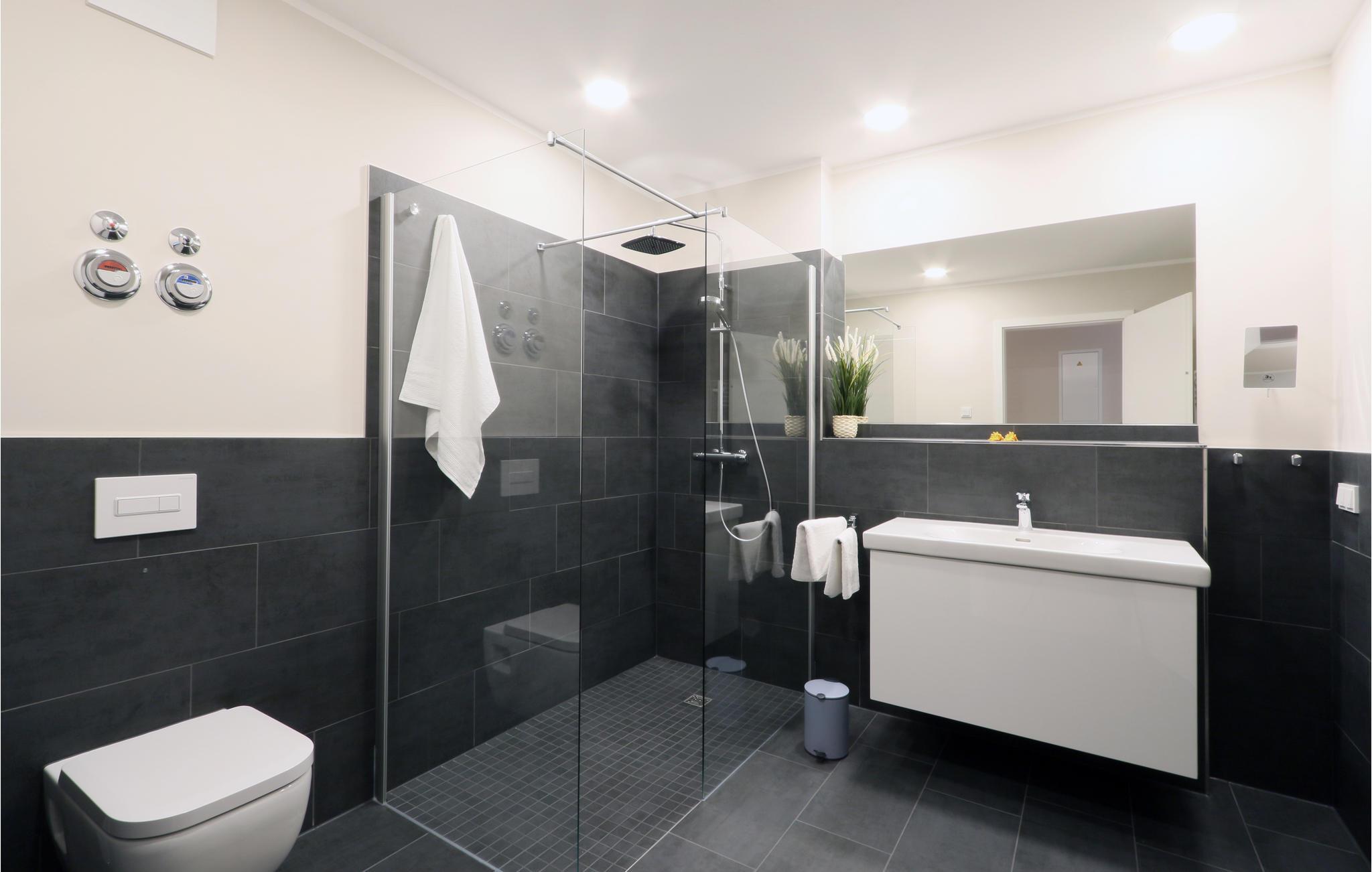 Badezimmer (nr. 1) - WC. Warmes und kaltes Wasser. Dusche