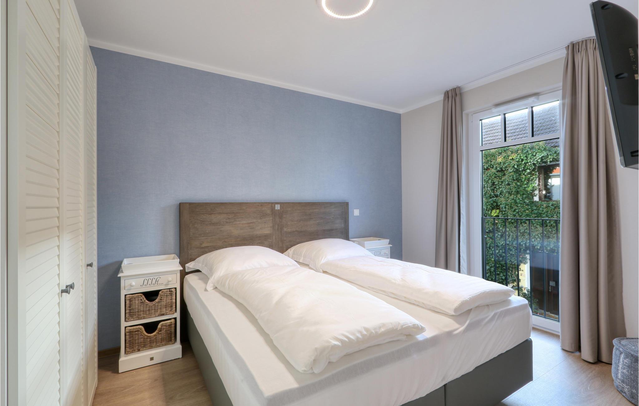 Ihr Wohlfühl-Apartment ist mit einem Doppelbett ausgestattet und überzeugt durch elegante Einrichtung im modernen Landhausstil, gemütliche Naturmaterialien und maritime Details.