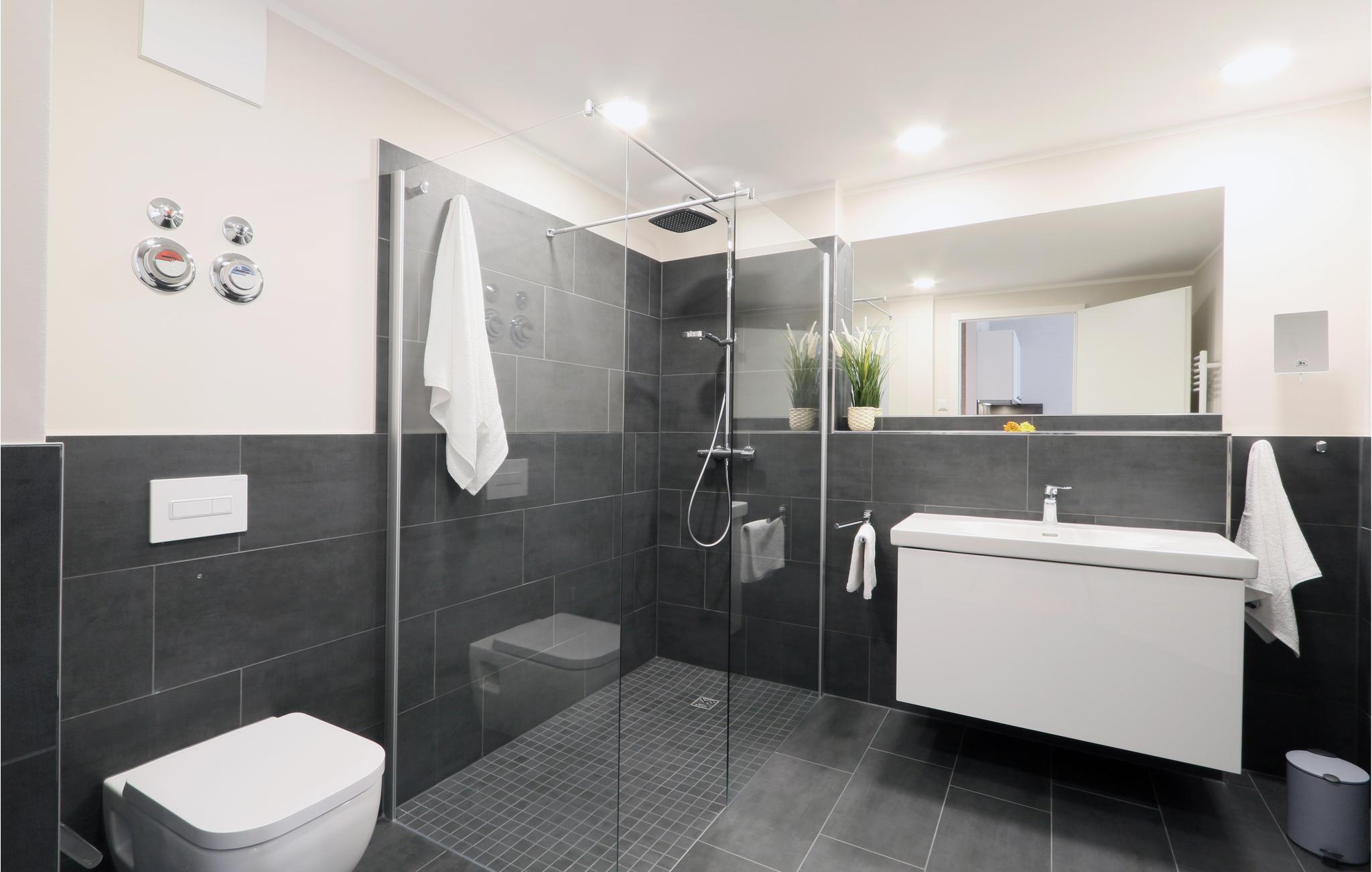Badezimmer (nr. 1) - WC. Warmes und kaltes Wasser. Dusche