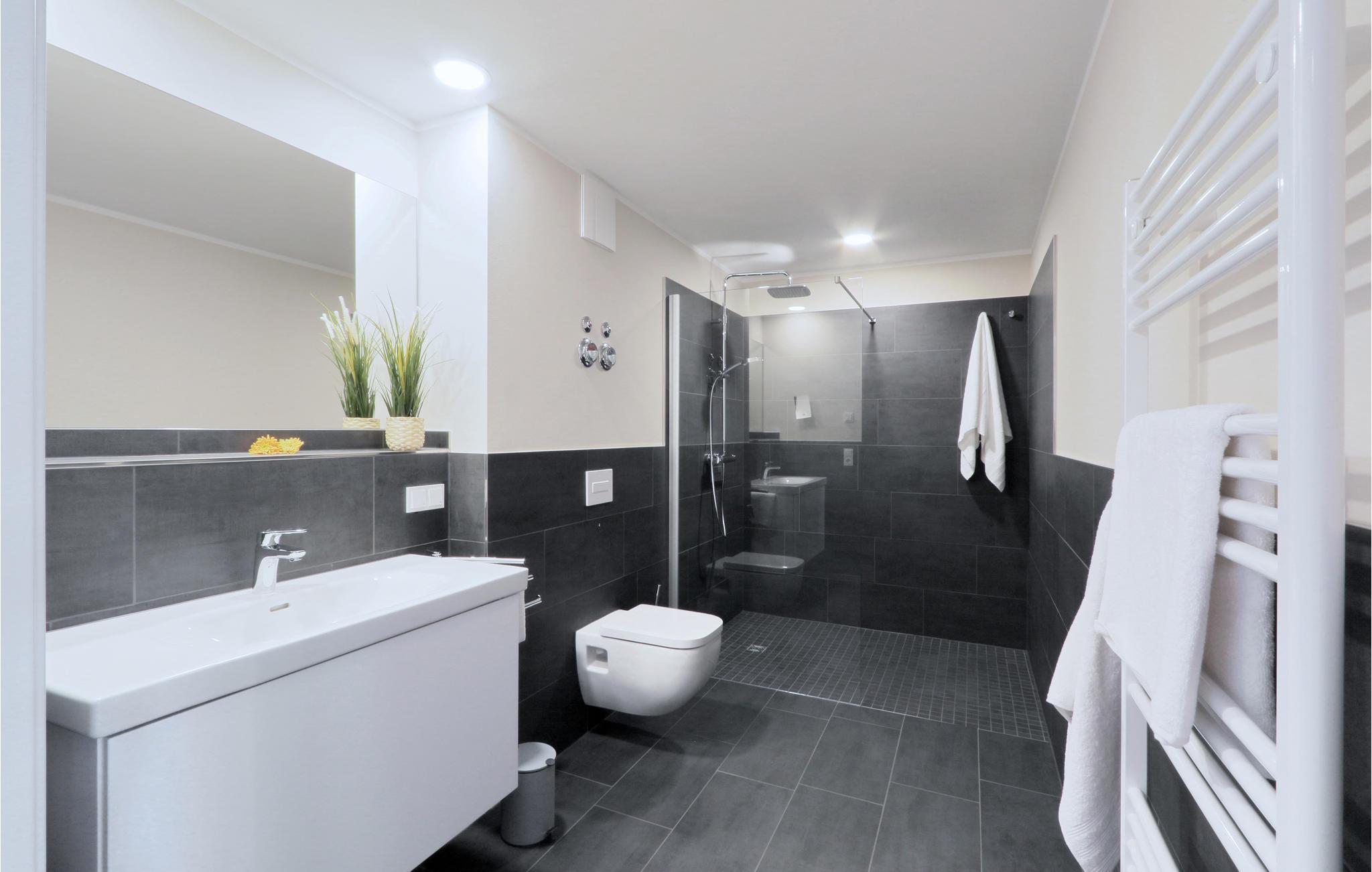 Badezimmer (nr. 1) - WC. Warmes und kaltes Wasser. Dusche