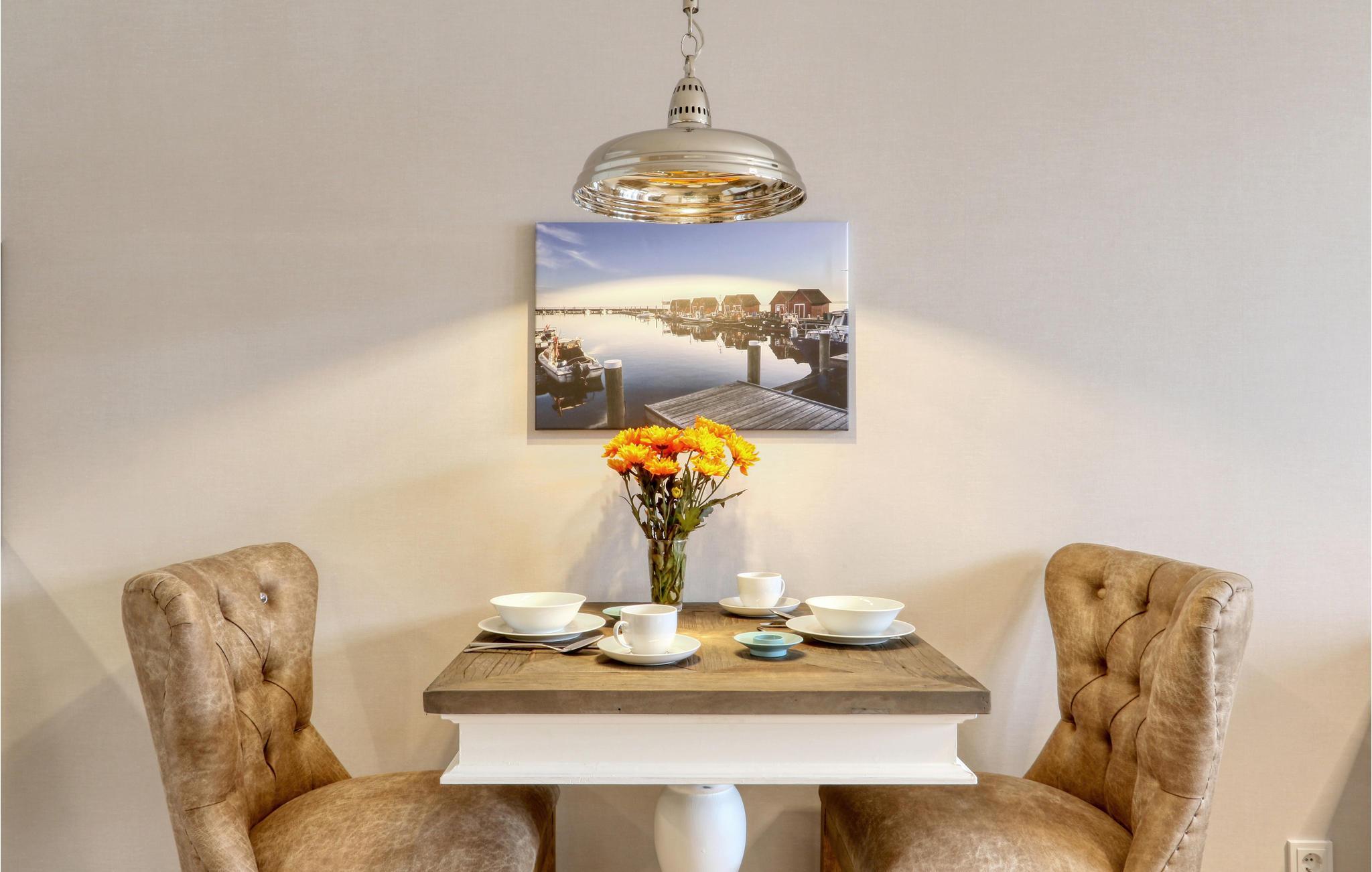 Ihr Wohlfühl-Apartment ist mit einem Doppelbett ausgestattet und überzeugt durch elegante Einrichtung im modernen Landhausstil, gemütliche Naturmaterialien und maritime Details.
