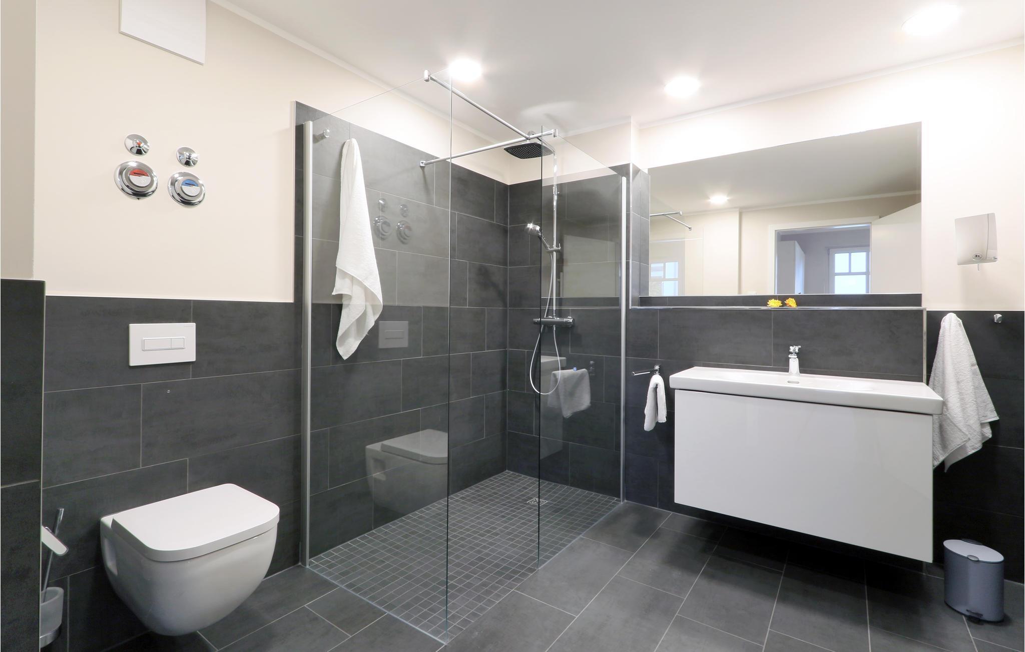Badezimmer (nr. 1) - WC. Warmes und kaltes Wasser. Dusche