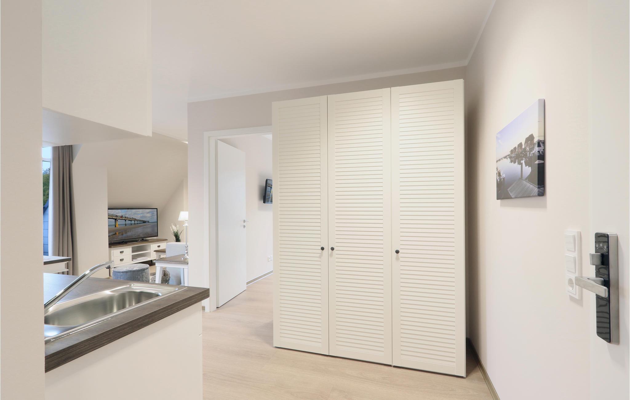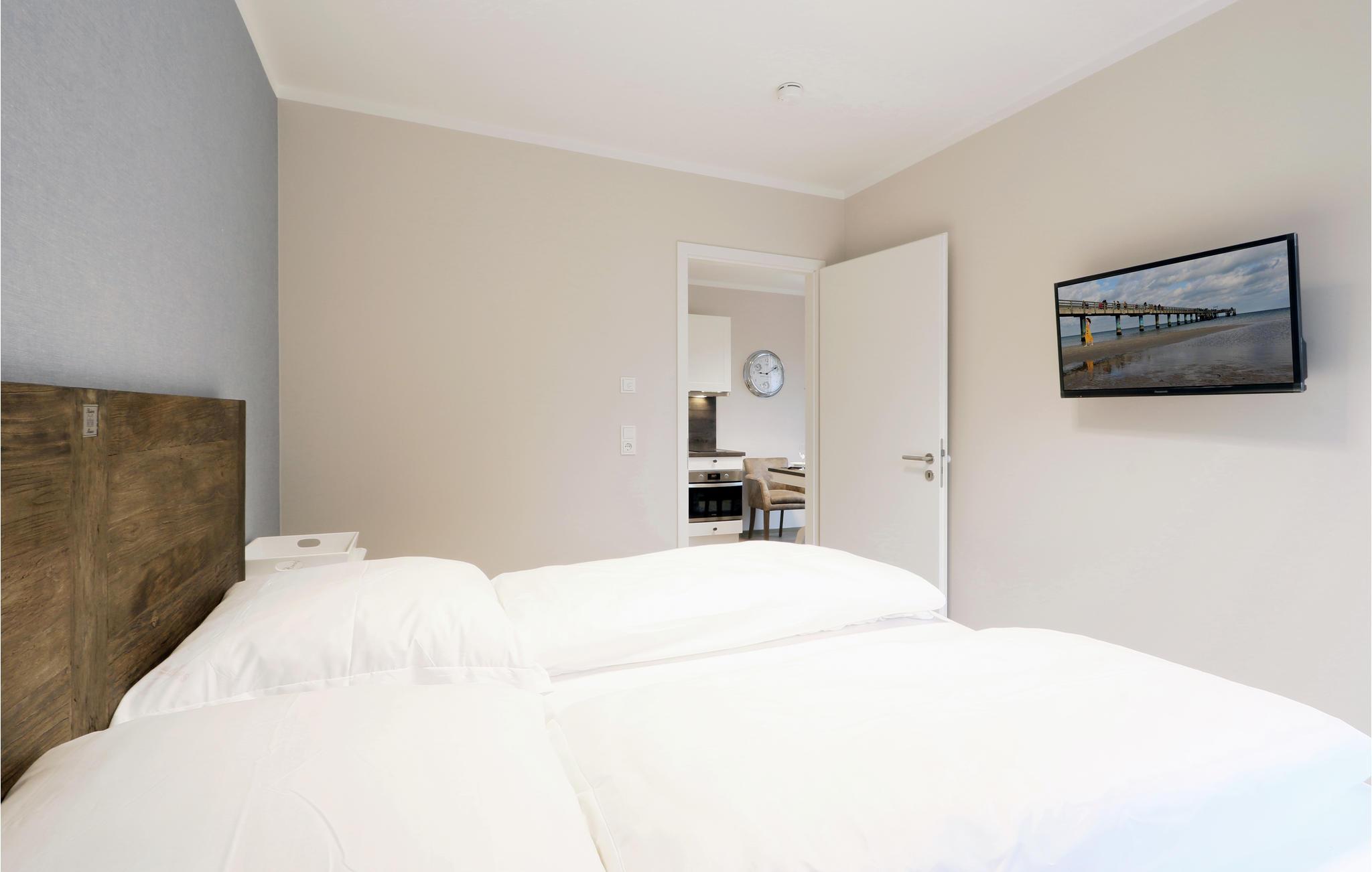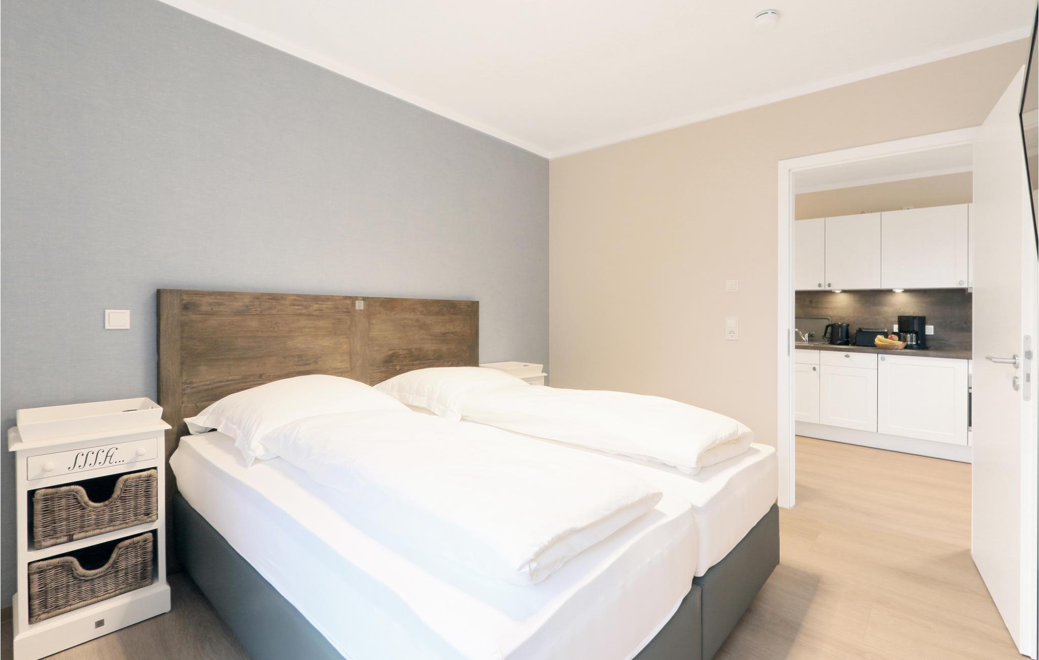 Ihr Wohlfühl-Apartment ist mit einem Doppelbett ausgestattet und überzeugt durch elegante Einrichtung im modernen Landhausstil, gemütliche Naturmaterialien und maritime Details.