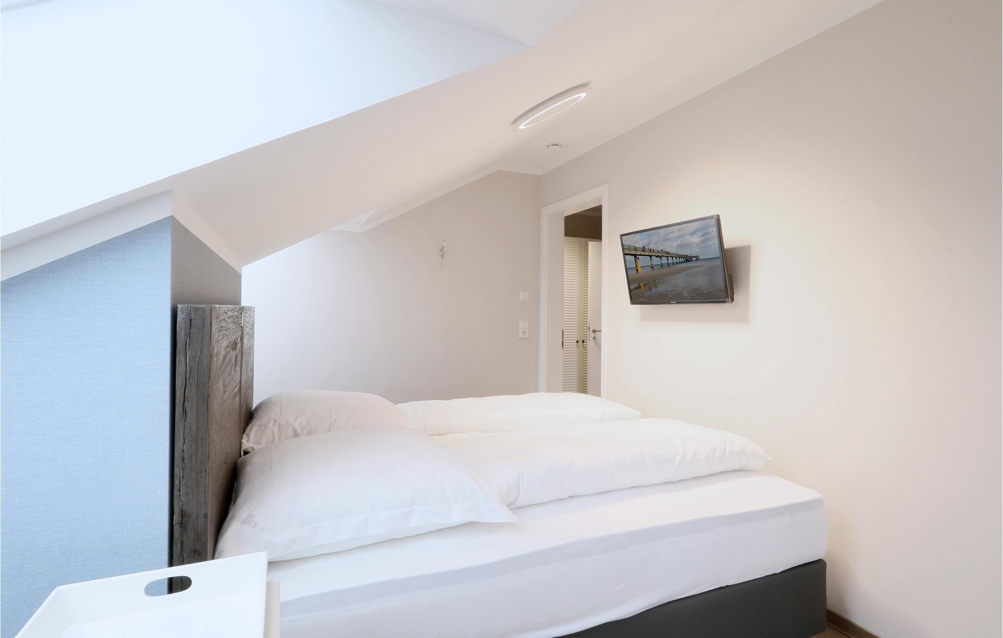 Ihr Wohlfühl-Apartment ist mit einem Doppelbett ausgestattet und überzeugt durch elegante Einrichtung im modernen Landhausstil, gemütliche Naturmaterialien und maritime Details.