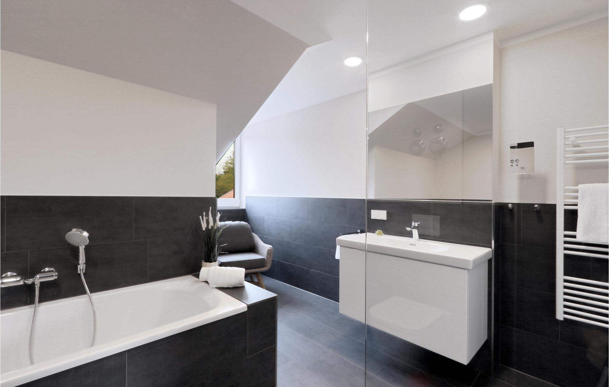 Badezimmer (nr. 1) - WC. Warmes und kaltes Wasser. Badewanne