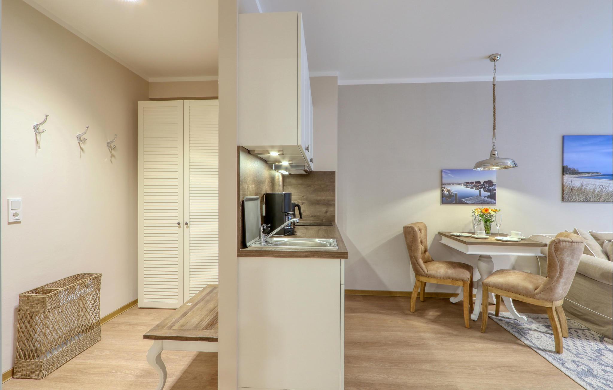 Lassen Sie sich verzaubern vom kilometerlangen Sandstrand, kristallklaren Wasser und der unberührten Natur. Starten Sie den Tag auf der eigenen Terrasse/Balkon mit frischen Brötchen vom Bäcker nebenan. Eine Kitchenette für die Zubereitung von kleinen Speisen ist im Apartment vorhanden. Der gemütliche Abend im Apartment lockt ebenso wie das leckere Abendessen bei einem kühlen Bier im Restaurant. Damit Sie sich in Ihrem erholsamen Urlaub um nichts kümmern müssen, hilft Ihnen die Rezeption bei Fragen, Wünschen und für Geheimtipps in und um Boltenhagen gerne weiter.
