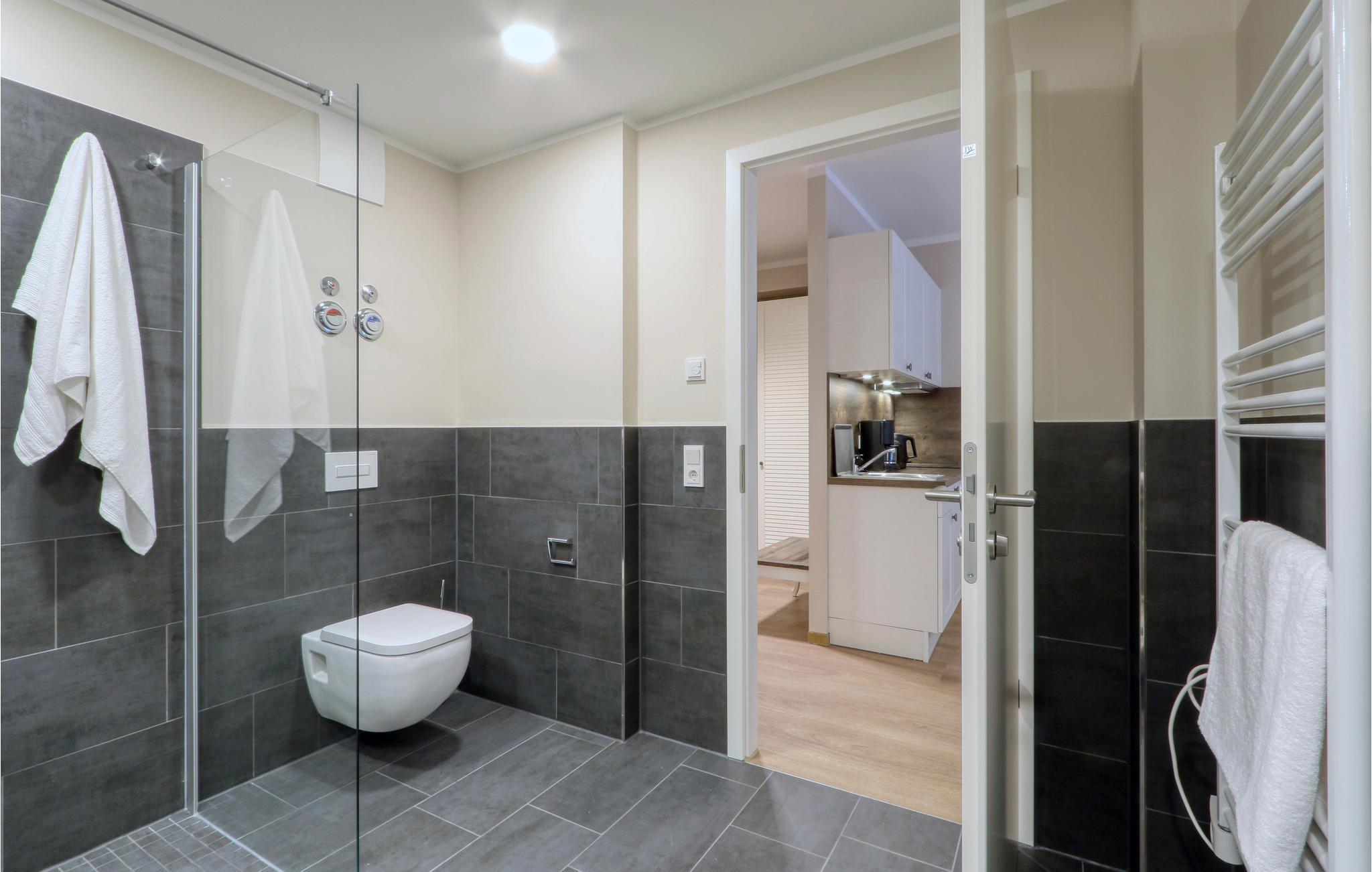 Badezimmer (nr. 1) - WC. Warmes und kaltes Wasser. Dusche
