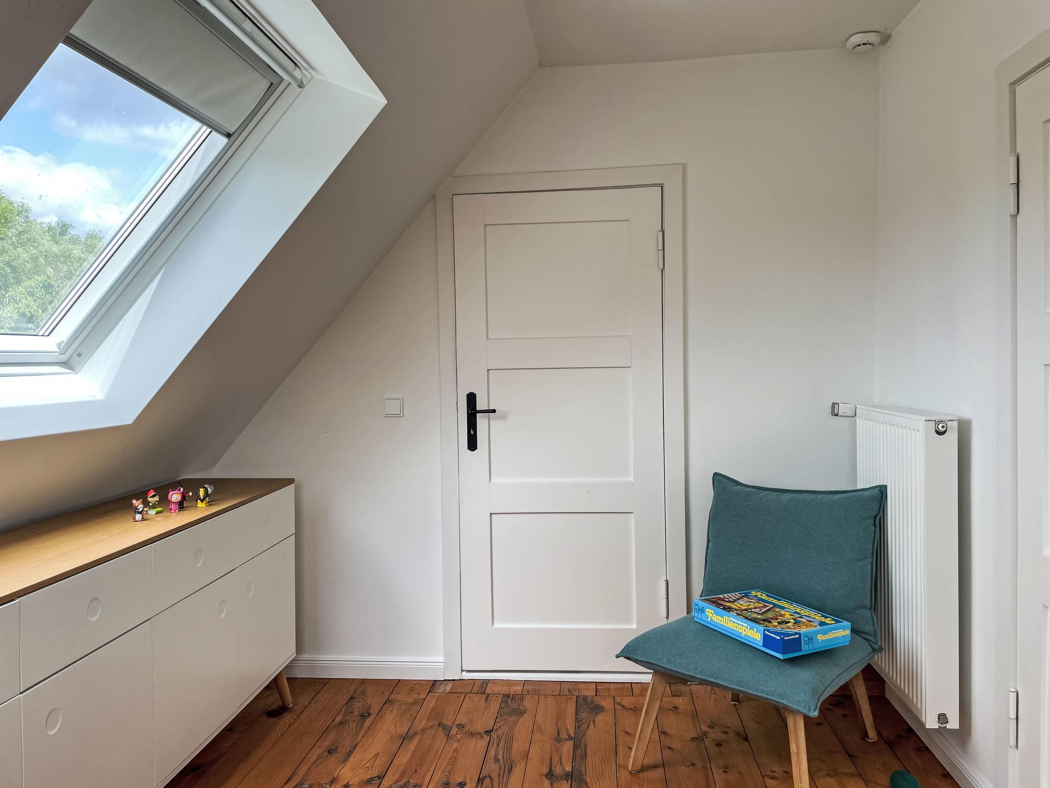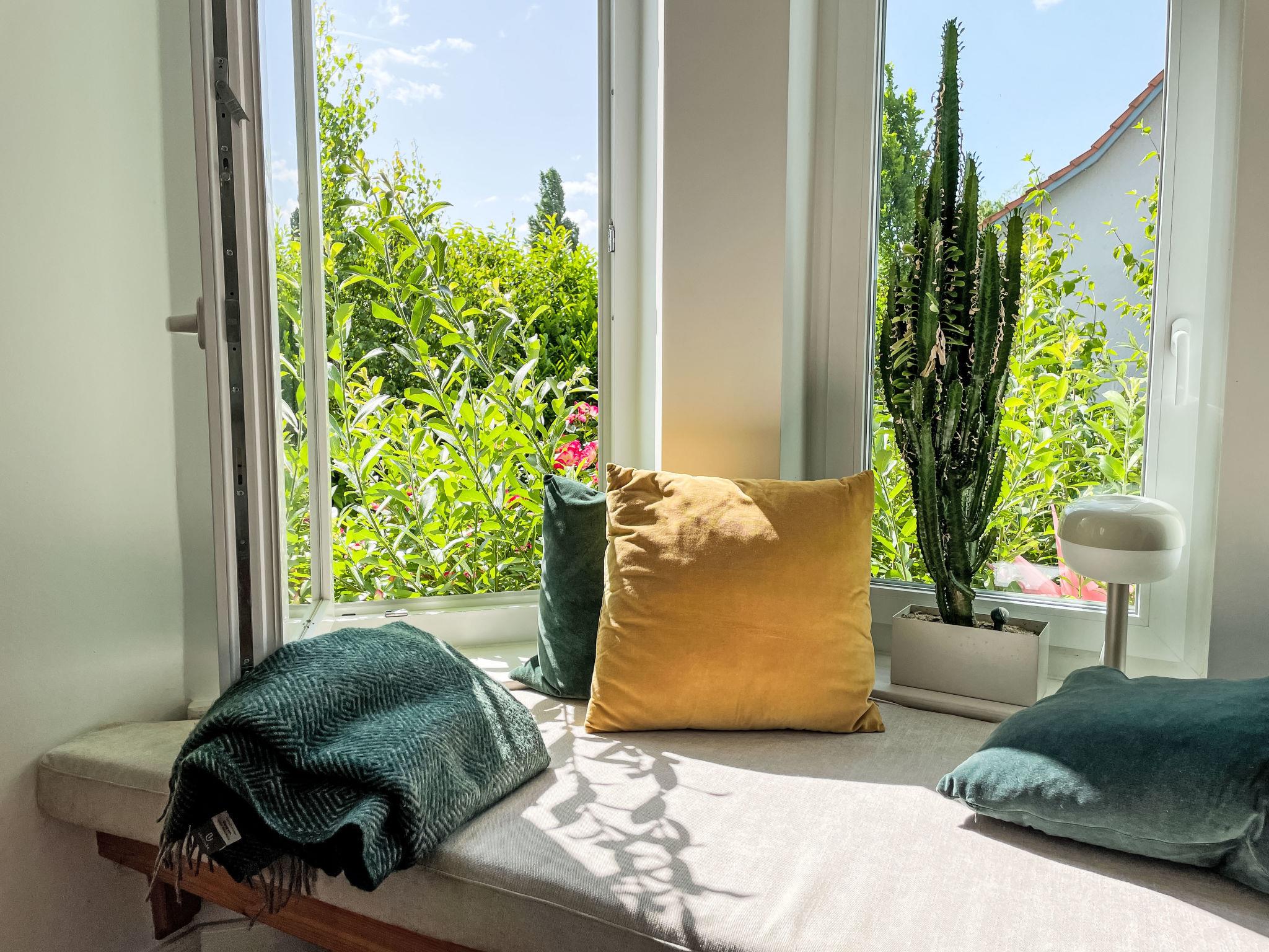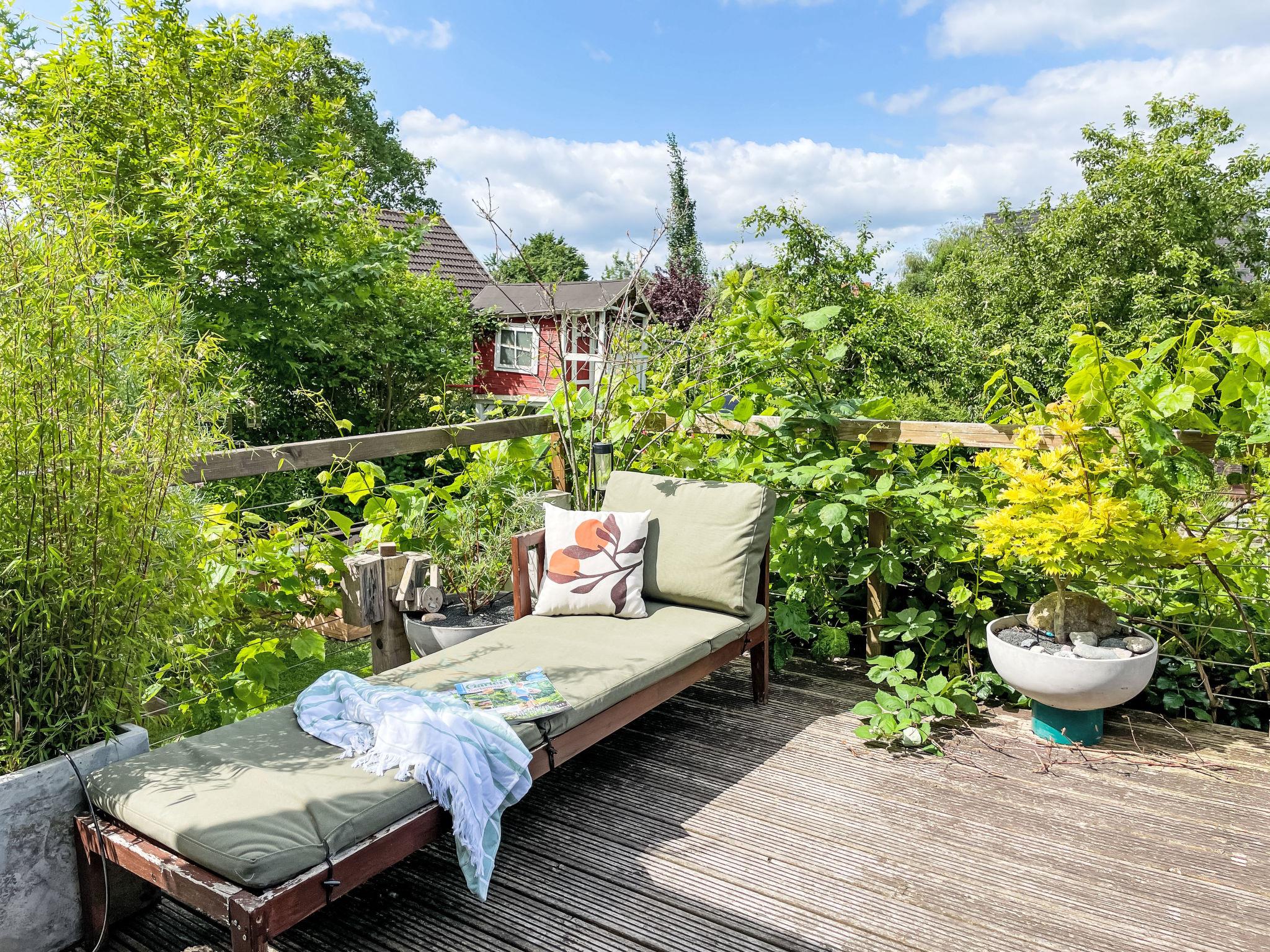 4-Zimmer-Haus 114 m2 auf 2 Stockwerken. Geräumig und hell, modern und gemütlich eingerichtet: Wohnzimmer mit Digital-TV und Radio. Offene Küche (Backofen, Geschirrspüler, 4 Induktionskochplatten, Toaster, Wasserkocher, elektrische Kaffeemaschine) mit Esstisch. Ausgang zum Garten, zur Terrasse. Dusche/WC. Heizung. Obergeschoss: 1 abgeschrägtes Zimmer mit 1 Doppelbett (180 cm, Länge 200 cm). 2 abgeschrägte Zimmer, jedes Zimmer mit 1 Ausziehbett (2 Pers. 2 x 80 cm, Länge 200 cm). Holzdielenboden. Grosse Terrasse. Terrassenmöbel. Schöne Sicht auf den Garten. Zur Verfügung: Waschmaschine, Wäschetrockner, Bügeleisen. Internet (WLAN, gratis). Parkplatz (1 Auto) beim Haus. Bitte beachten: geeignet für Familien. Nichtraucher-Haus. Maximal 2 Haustiere/Hunde erlaubt. Rauchmelder. Im Wohnzimmer gibt es einen hellen Erker als Leseecke. BORA Kochfeld in der Küche und Quooker Wasserhahn.