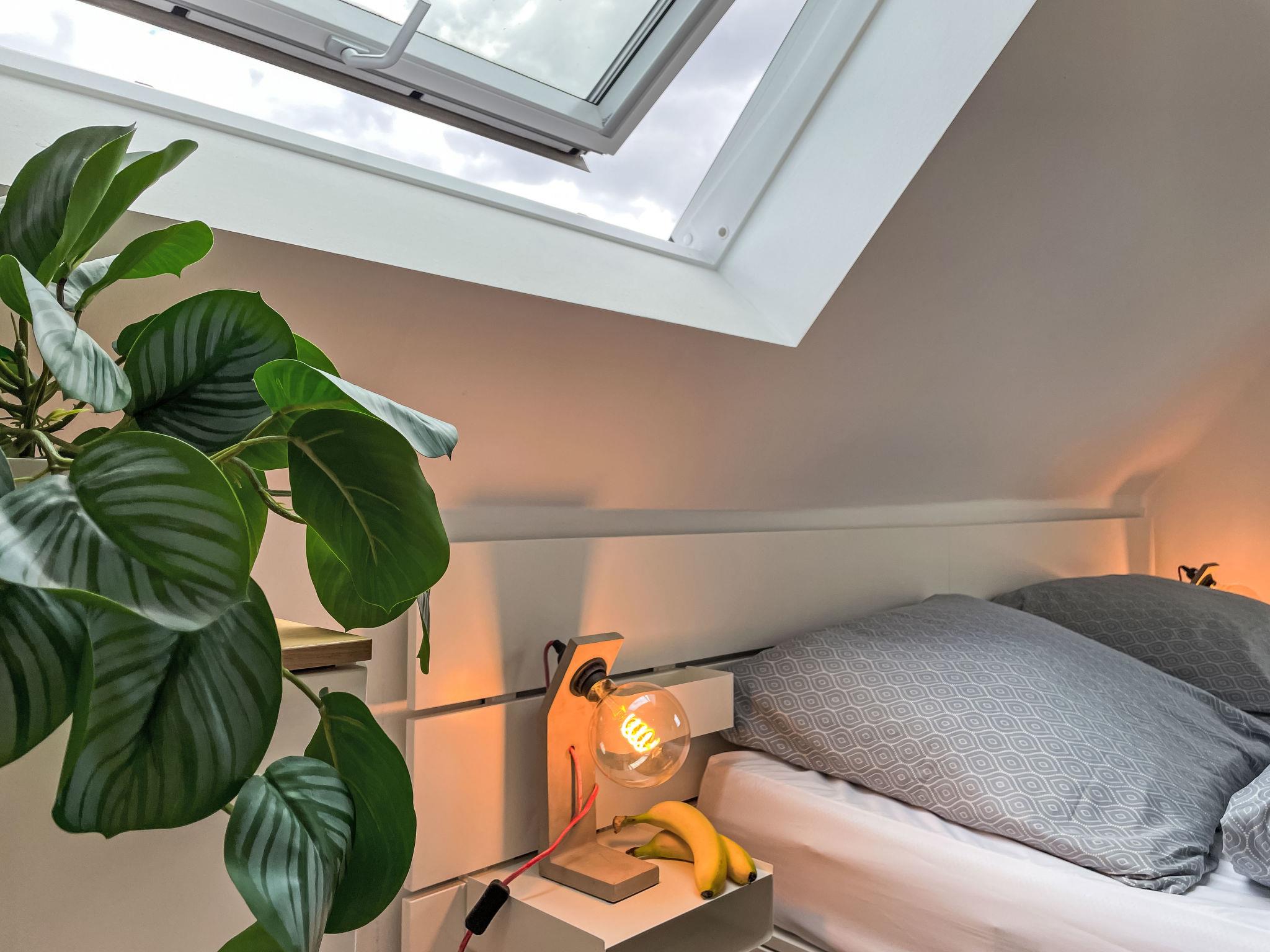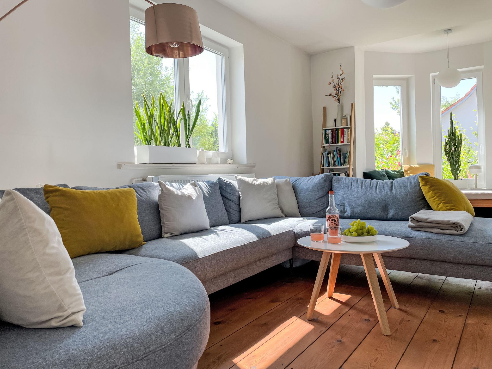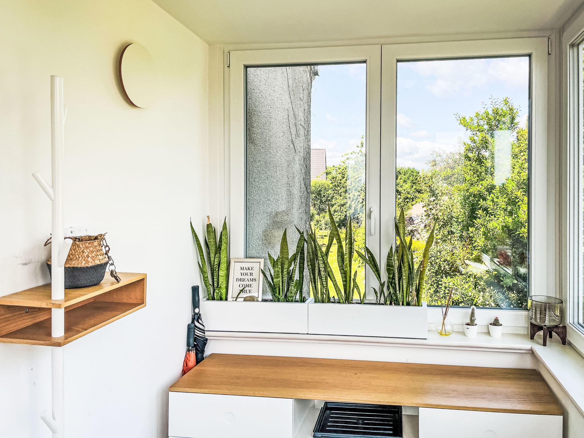 4-Zimmer-Haus 114 m2 auf 2 Stockwerken. Geräumig und hell, modern und gemütlich eingerichtet: Wohnzimmer mit Digital-TV und Radio. Offene Küche (Backofen, Geschirrspüler, 4 Induktionskochplatten, Toaster, Wasserkocher, elektrische Kaffeemaschine) mit Esstisch. Ausgang zum Garten, zur Terrasse. Dusche/WC. Heizung. Obergeschoss: 1 abgeschrägtes Zimmer mit 1 Doppelbett (180 cm, Länge 200 cm). 2 abgeschrägte Zimmer, jedes Zimmer mit 1 Ausziehbett (2 Pers. 2 x 80 cm, Länge 200 cm). Holzdielenboden. Grosse Terrasse. Terrassenmöbel. Schöne Sicht auf den Garten. Zur Verfügung: Waschmaschine, Wäschetrockner, Bügeleisen. Internet (WLAN, gratis). Parkplatz (1 Auto) beim Haus. Bitte beachten: geeignet für Familien. Nichtraucher-Haus. Maximal 2 Haustiere/Hunde erlaubt. Rauchmelder. Im Wohnzimmer gibt es einen hellen Erker als Leseecke. BORA Kochfeld in der Küche und Quooker Wasserhahn.