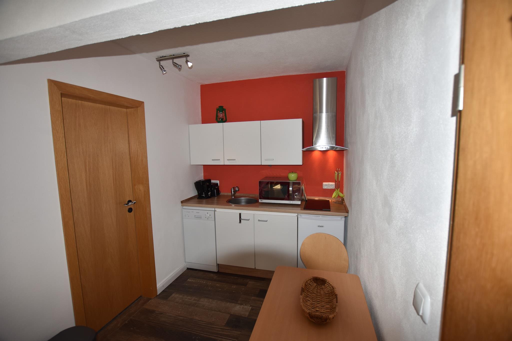 In der 1. Etage: (offene Küche(Esstisch(4 Personen), Wasserkocher, Toaster, Kochherd(2 Kochplatten, Ceranfeld), Dunstabzugshaube, Kaffeemaschine, Mikrowelle, Spülmaschine, Kühlschrank(+ Gefrierfach)), Wohn-/Schlafzimmer(Doppelbett king size(180 x 200 cm), TV(Flatscreen), Sitzecke), Schlafzimmer(2x Einzelbett), Badezimmer(Dusche(ebenerdige Dusche), Waschbecken, Toilette), Balkon oder Terrasse, Heizung(Fußbodenheizung), Dachterasse, Gartenmöbel, Kinderbett, Hochstuhl) Parkplatz, Wäschepaket inklusive