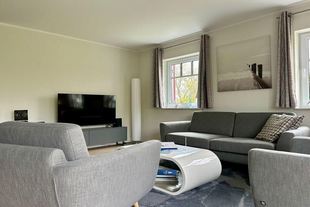 Komfort & Gemütlichkeit auf zwei Etagen Unsere liebevoll eingerichtete Doppelhaushälfte bietet Platz für bis zu vier Personen mit zwei Schlafzimmern, zwei modernen Bädern, einer Sauna und einem stilvollen Wohnbereich mit hochwertiger Küche. Genießen Sie auf der sonnigen Südwest-Terrasse den Blick ins Grüne. Im Obergeschoss erwarten Sie zwei gemütliche Schlafzimmer mit je einem Doppelbett und viel Stauraum, eine integrierte Sauna sowie eine Waschmaschine. Drei Fahrräder, ein Bollerwagen und Spiele sorgen für zusätzlichen Komfort. W-LAN kostenlos. In der Hauptsaison (Juli & August) sind durchgehende Buchungen erforderlich. Das Grillen mit Gas und Holzkohle und der Umgang mit Feuerwerkskörpern nicht erlaubt sind.
