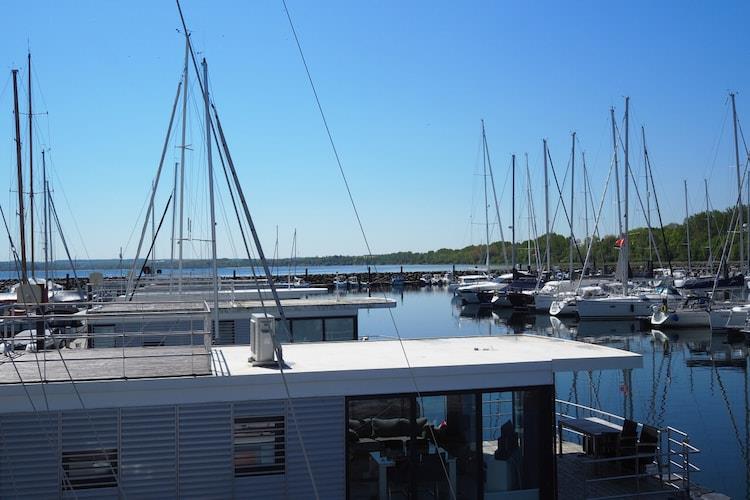 Erleben Sie erholsamen Urlaub auf einem komfortablen Hausboot in der Marina Boltenhagen mit direktem Ostseeblick.