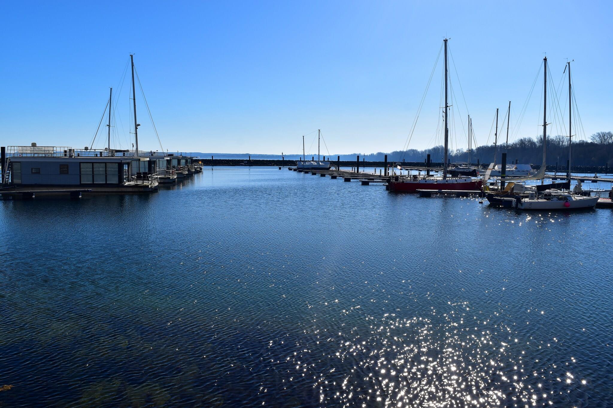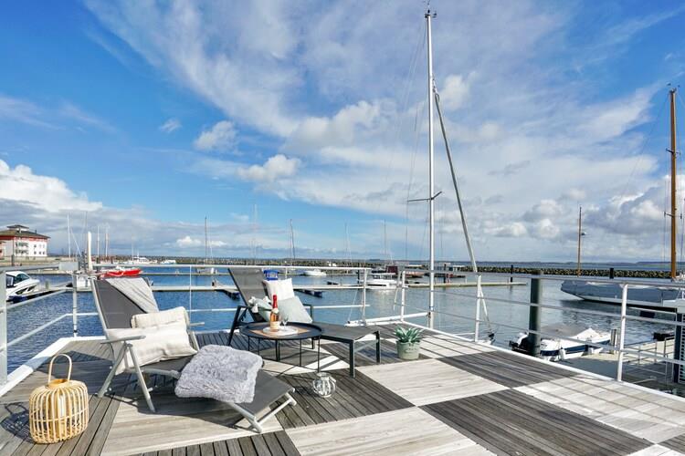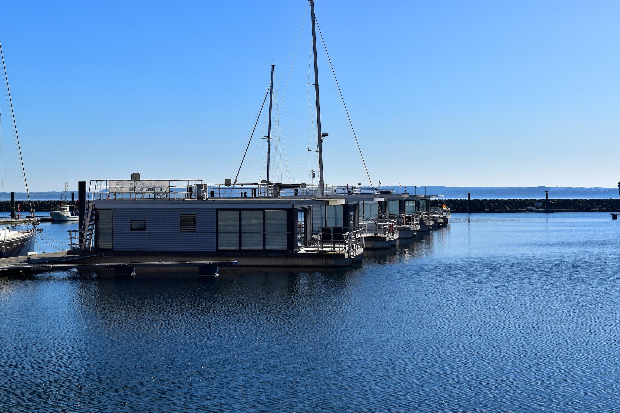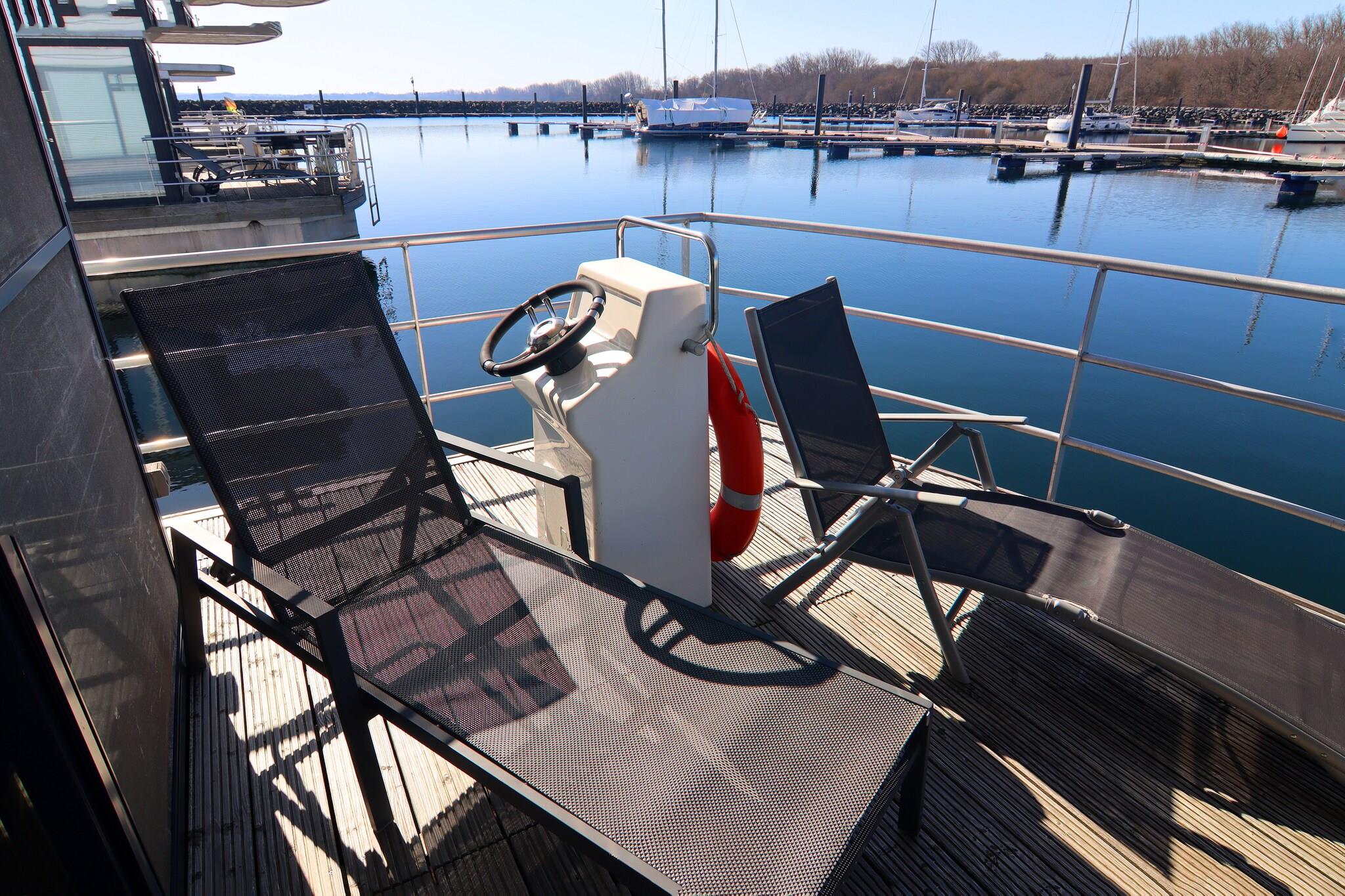 Erleben Sie entspannte Urlaubstage auf einem gemütlichen Hausboot in der Marina Boltenhagen mit direktem Meerblick.