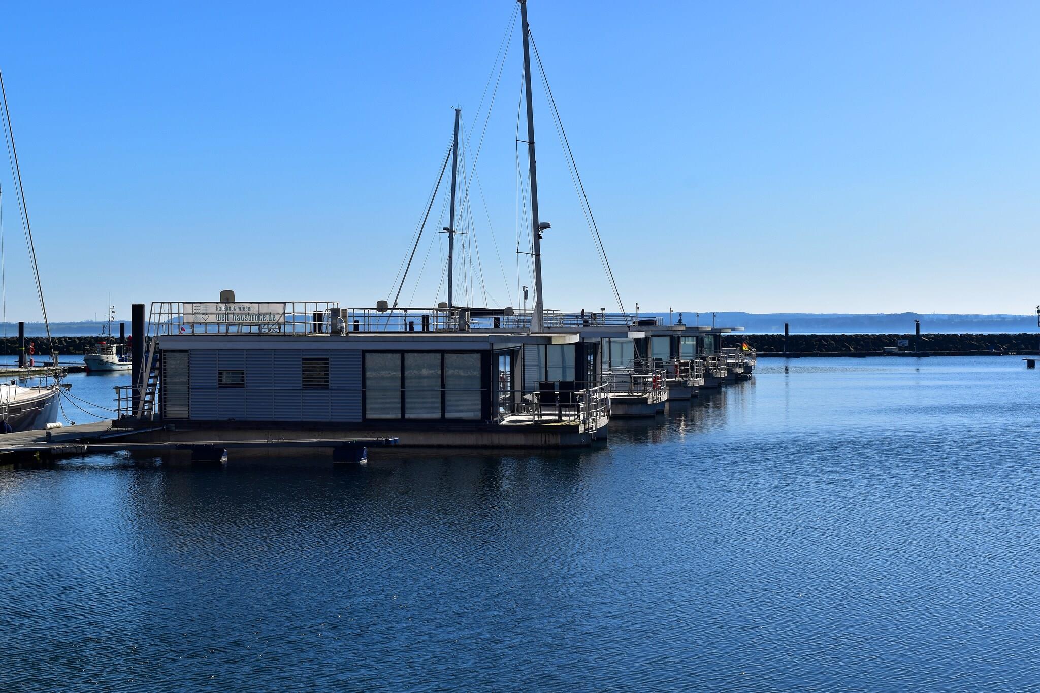 Erleben Sie Urlaub auf einem klimatisierten Hausboot mit Seeblick und Terrasse in Boltenhagen an der Ostsee.
