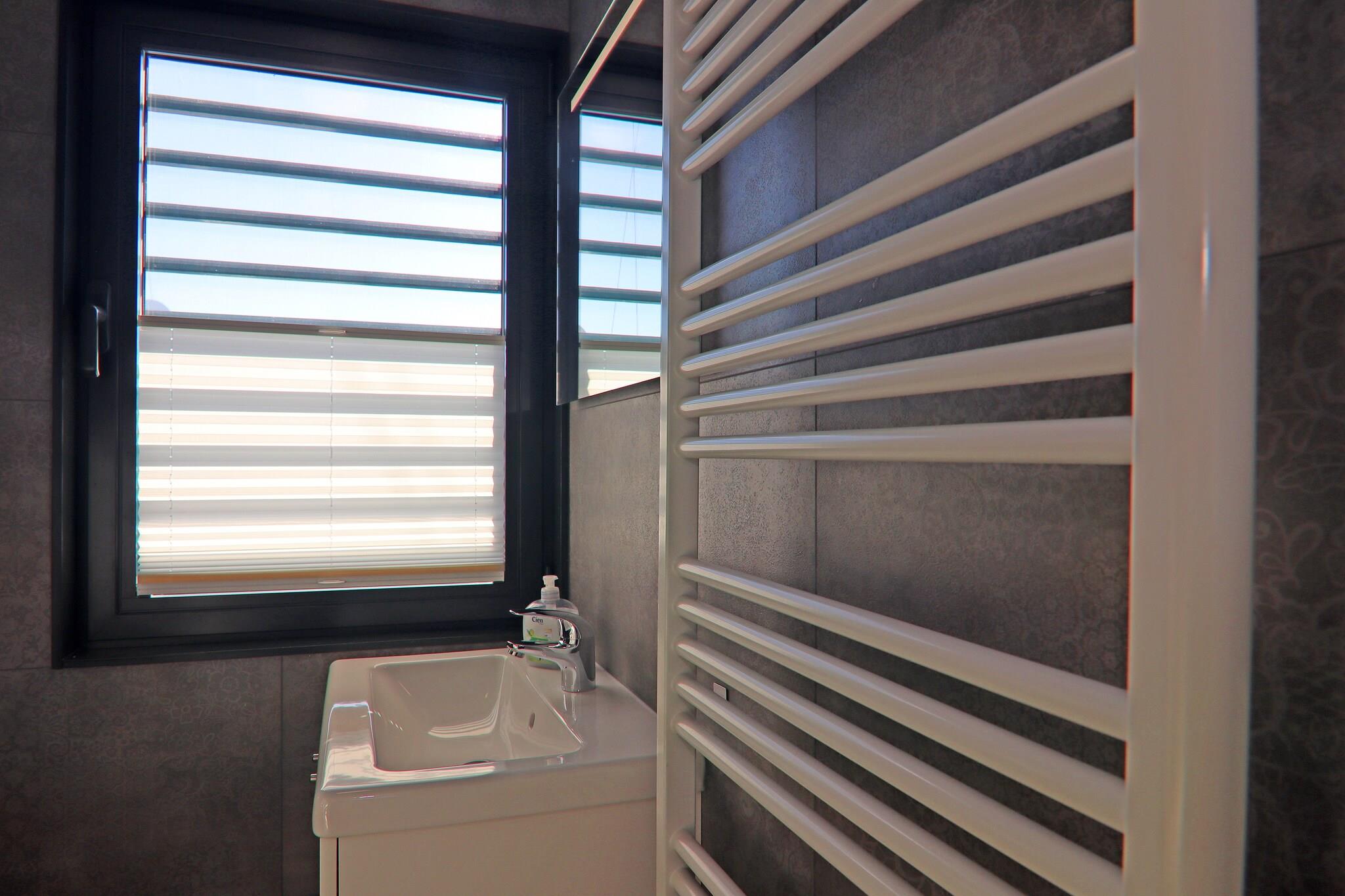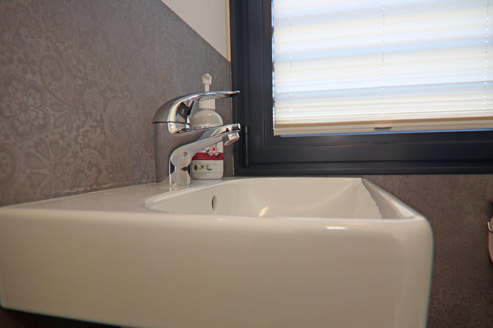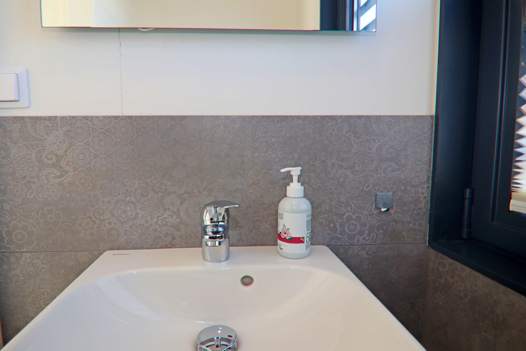 Parterre: (offene Küche(Kochplatte(2 Kochplatten, Ceranfeld), Wasserkocher, Toaster, Kaffeemaschine, Mikrowelle, Spülmaschine, Kühlschrank), Wohn/Esszimmer(Doppelschlafcouch, TV(Flatscreen, Satellit), Esstisch, Sitzecke, Radio), Schlafzimmer(Doppelbett), Badezimmer(Dusche, Waschbecken), Toilette(Waschbecken, Toilette)) Brötchenservice, Heizung(durch Klimaanlagen), Terrasse(16 m2), Dachterasse, Gartenmöbel, Parkplatz, Liegestühle, Wäschepaket inklusive