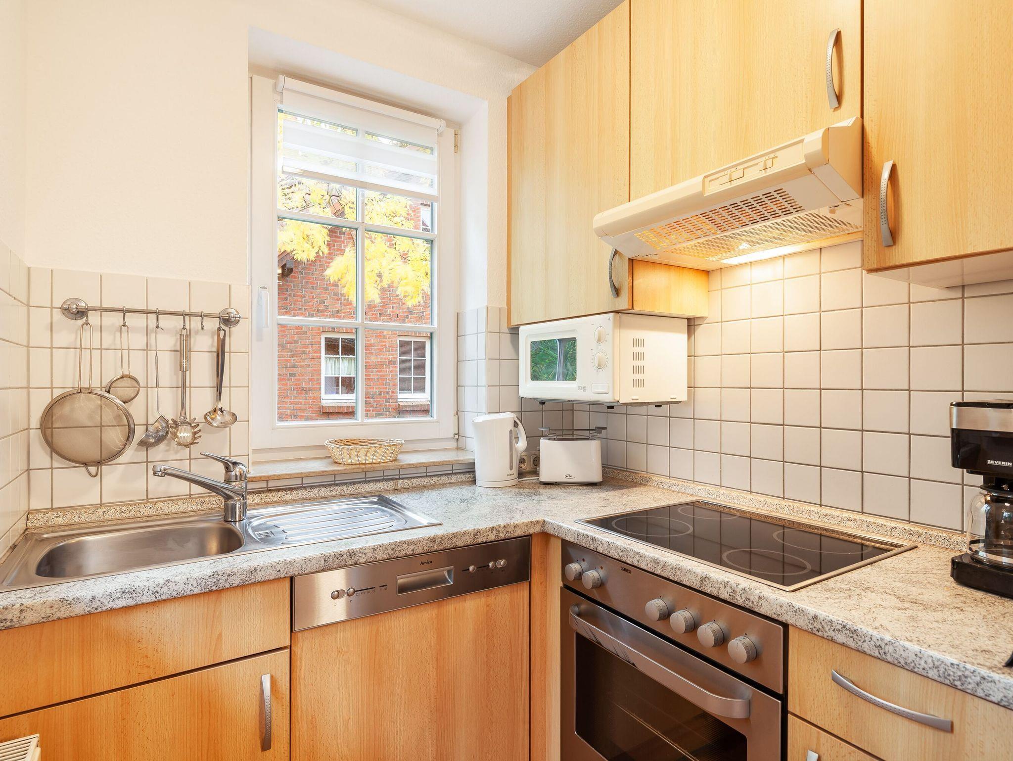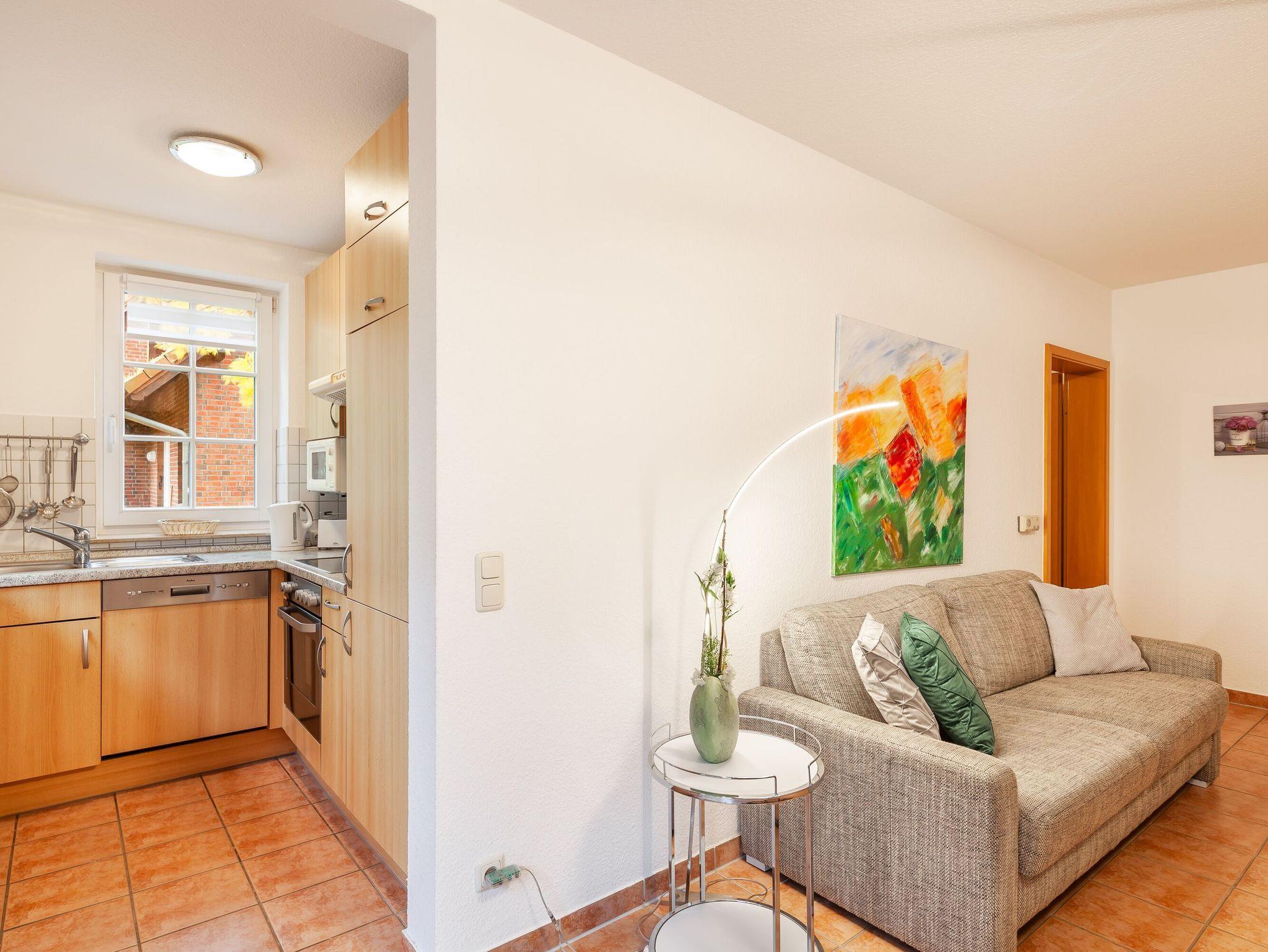 Die offene Küche ist mit allen notwendigen Utensilien ausgestattet, die man für die Zubereitung von Mahlzeiten im Familienurlaub benötigt, wie zum Beispiel einem Geschirrspüler und einer Kaffeemaschine. Beim Betreten des Hauses gelangt man zunächst in den Flur, von dem aus man in das Wohnzimmer und den Essbereich gelangt.