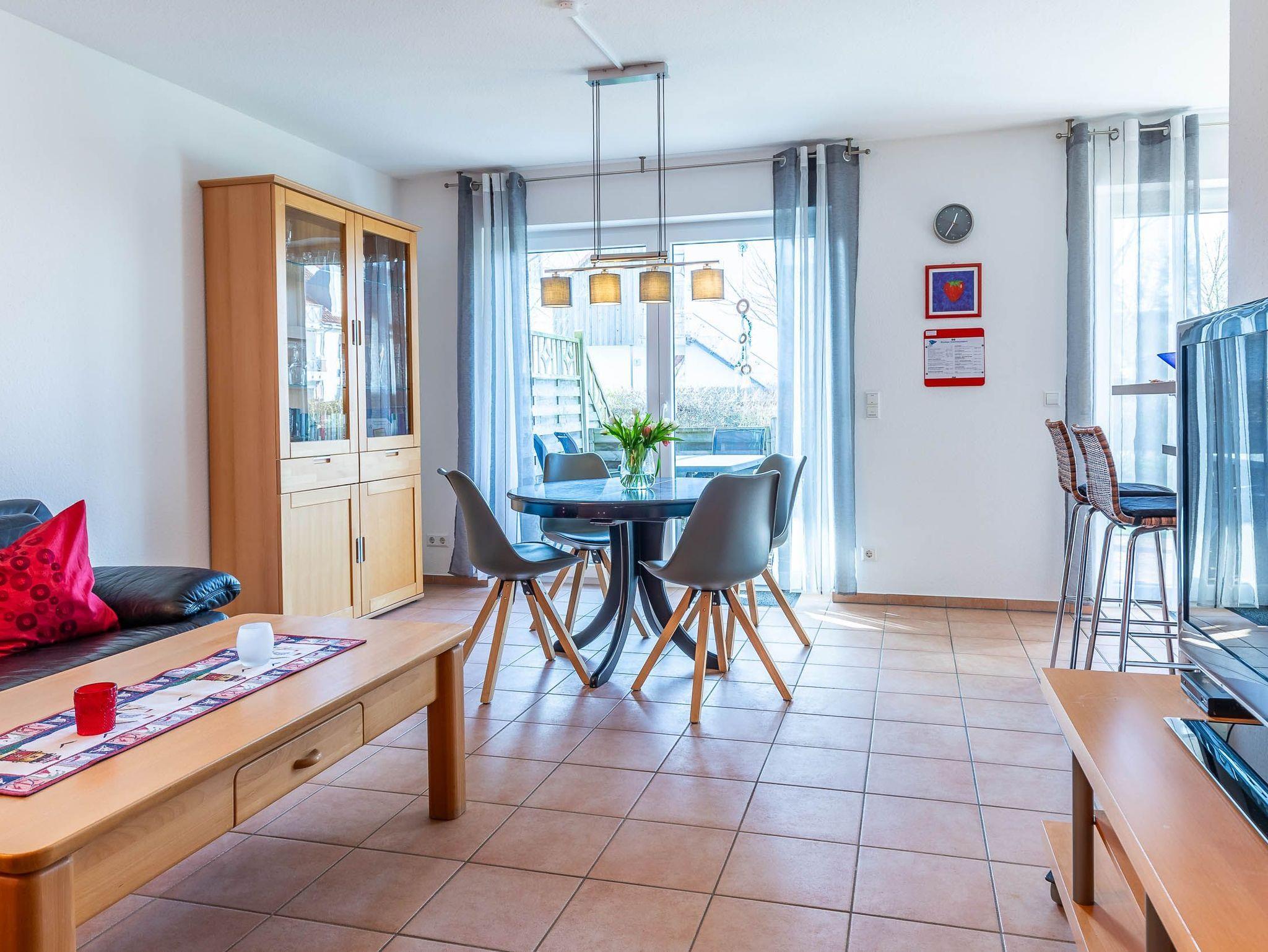 Die 3-Zimmer-Ferienwohnung im Erdgeschoss bietet auf etwa 80qm Wohnfläche eine familienfreundliche Ausstattung für 5 Gäste plus Kleinkind.