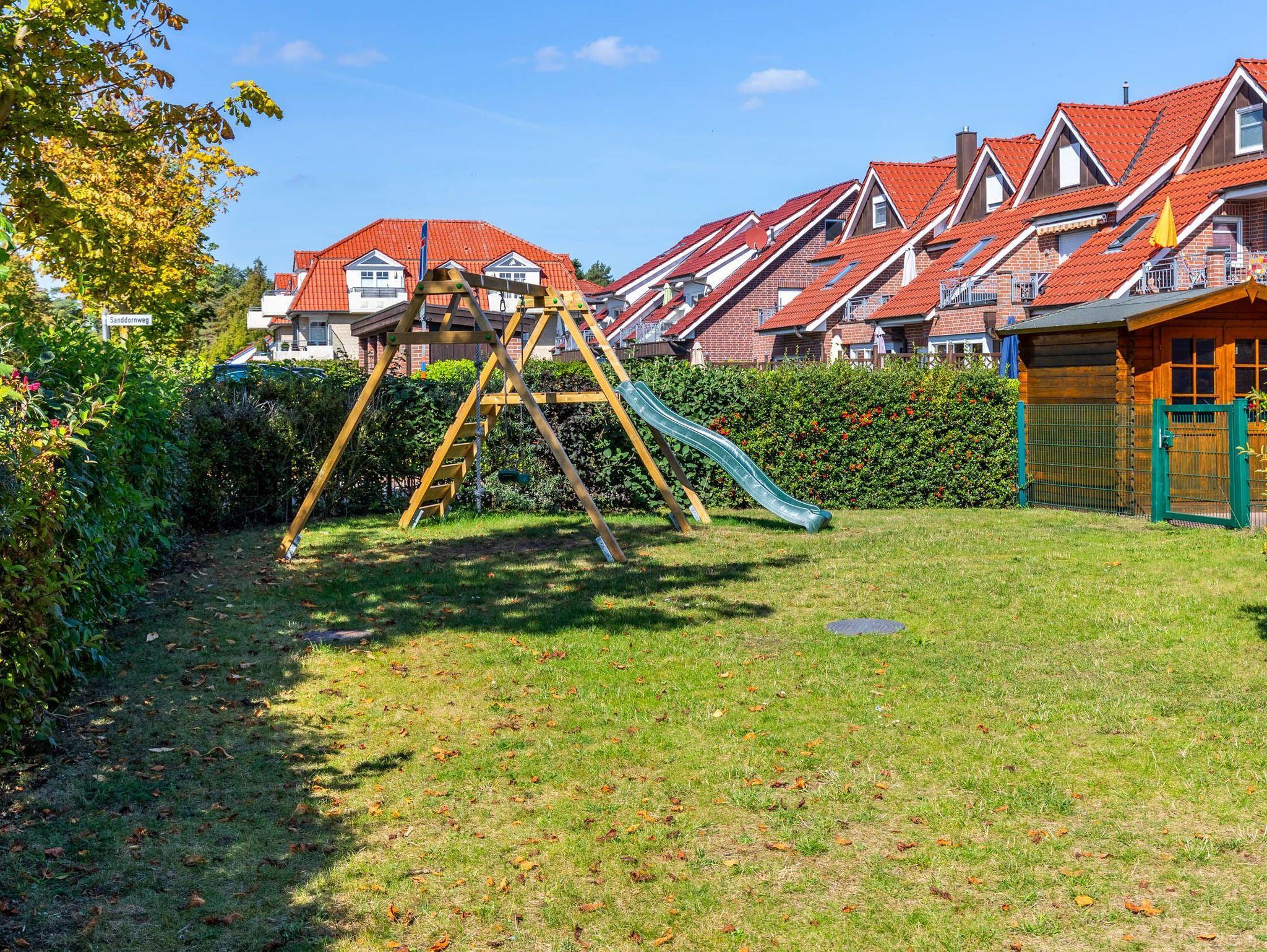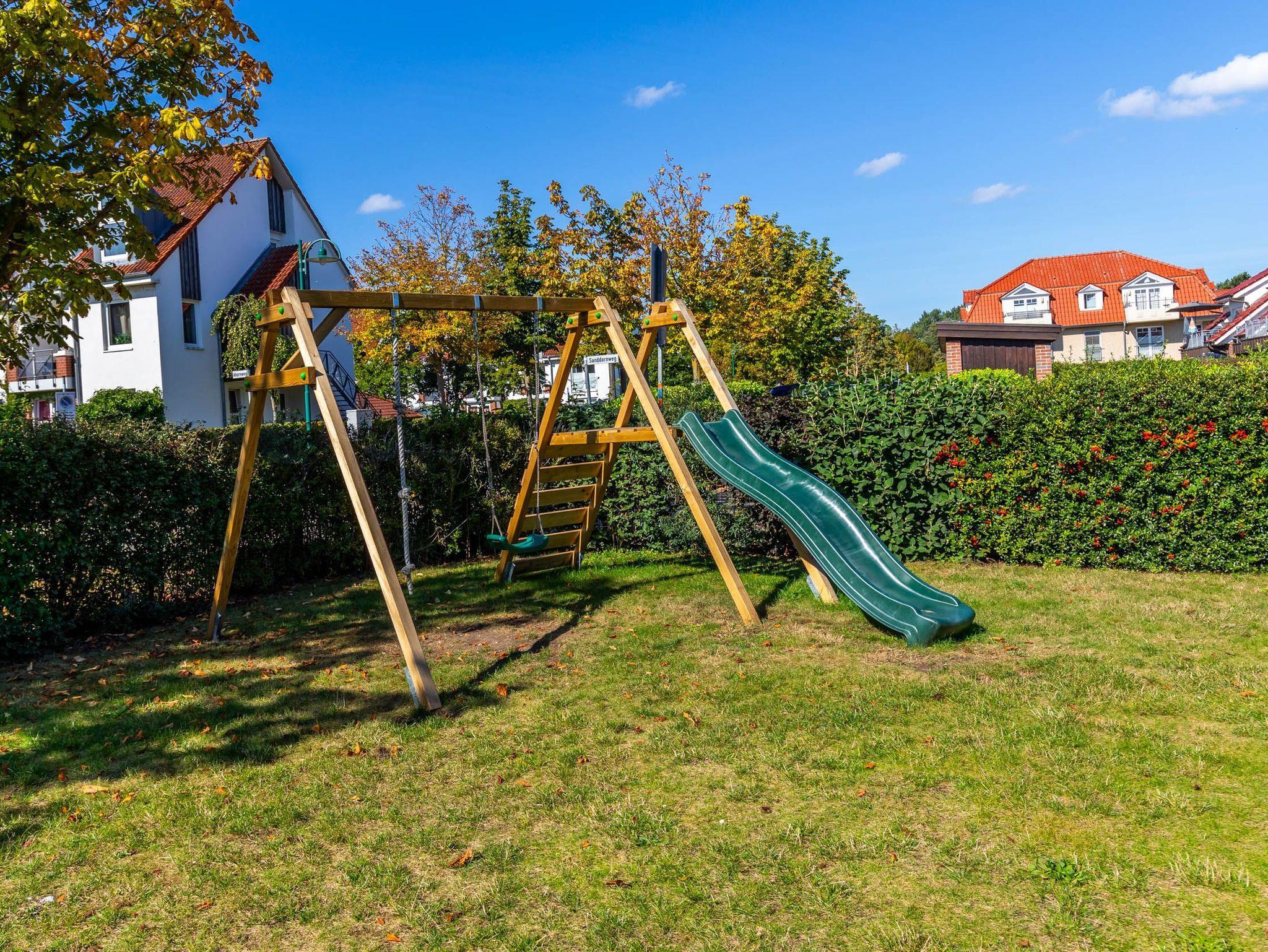 Im Gemeinschafts-Garten, welcher für alle Gäste des Hauses zugänglich ist, befindet sich ein kleiner hauseigener Spielplatz.