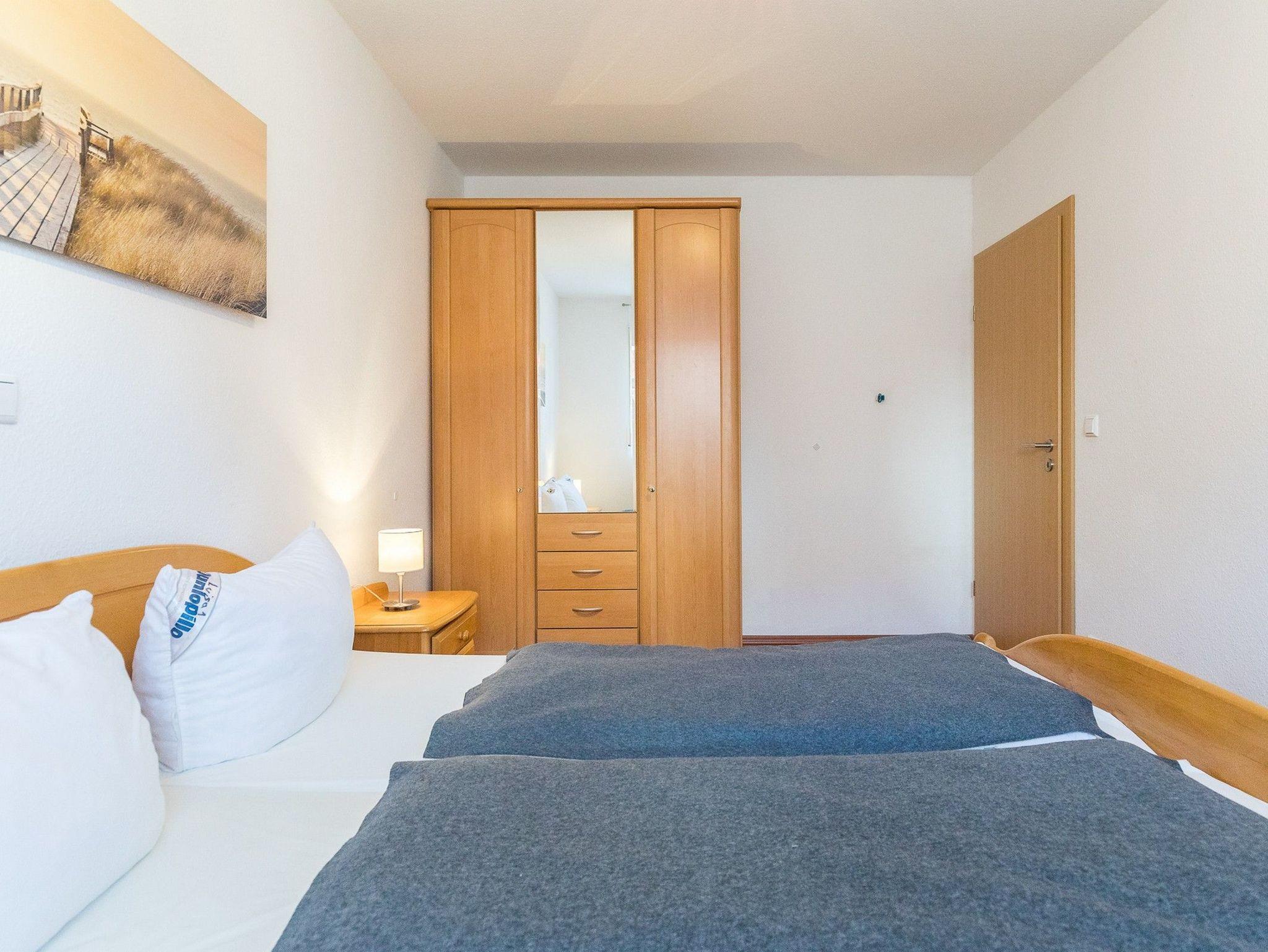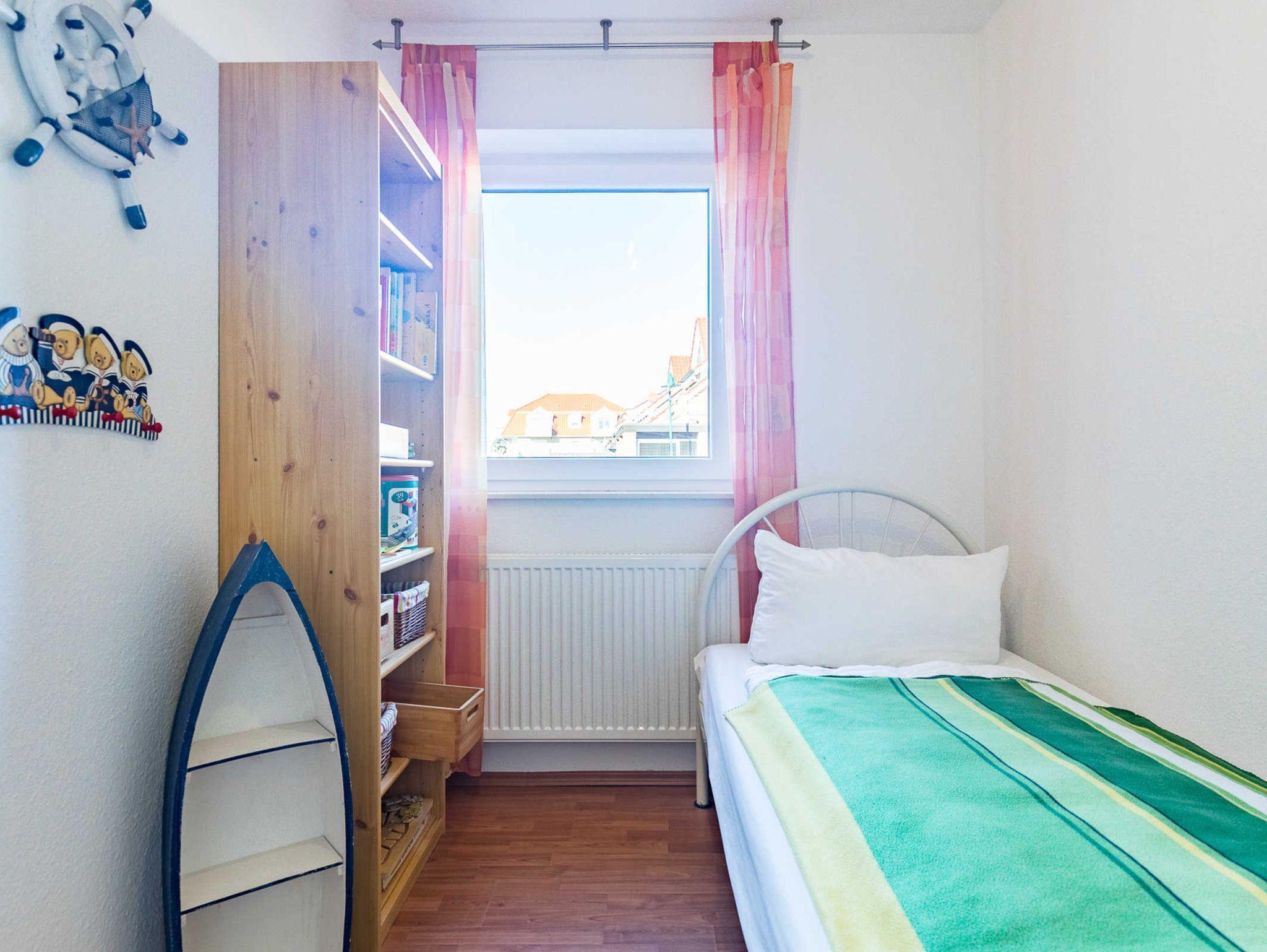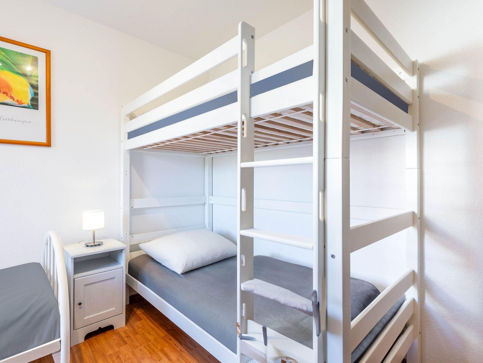 Im Schlafzimmer finden Sie ein auch für Allergiker geeignetes Doppelbett sowie einen Kleiderschrank für Ihre Garderobe, im Gäste-/ Kinderzimmer stehen ein Etagenbett sowie ein Einzelbett, ein Kleiderschrank und ein Bücherregal bereit. Hier gibt es auch ausreichend Platz, um ein Kinderreisebettchen aufzustellen.