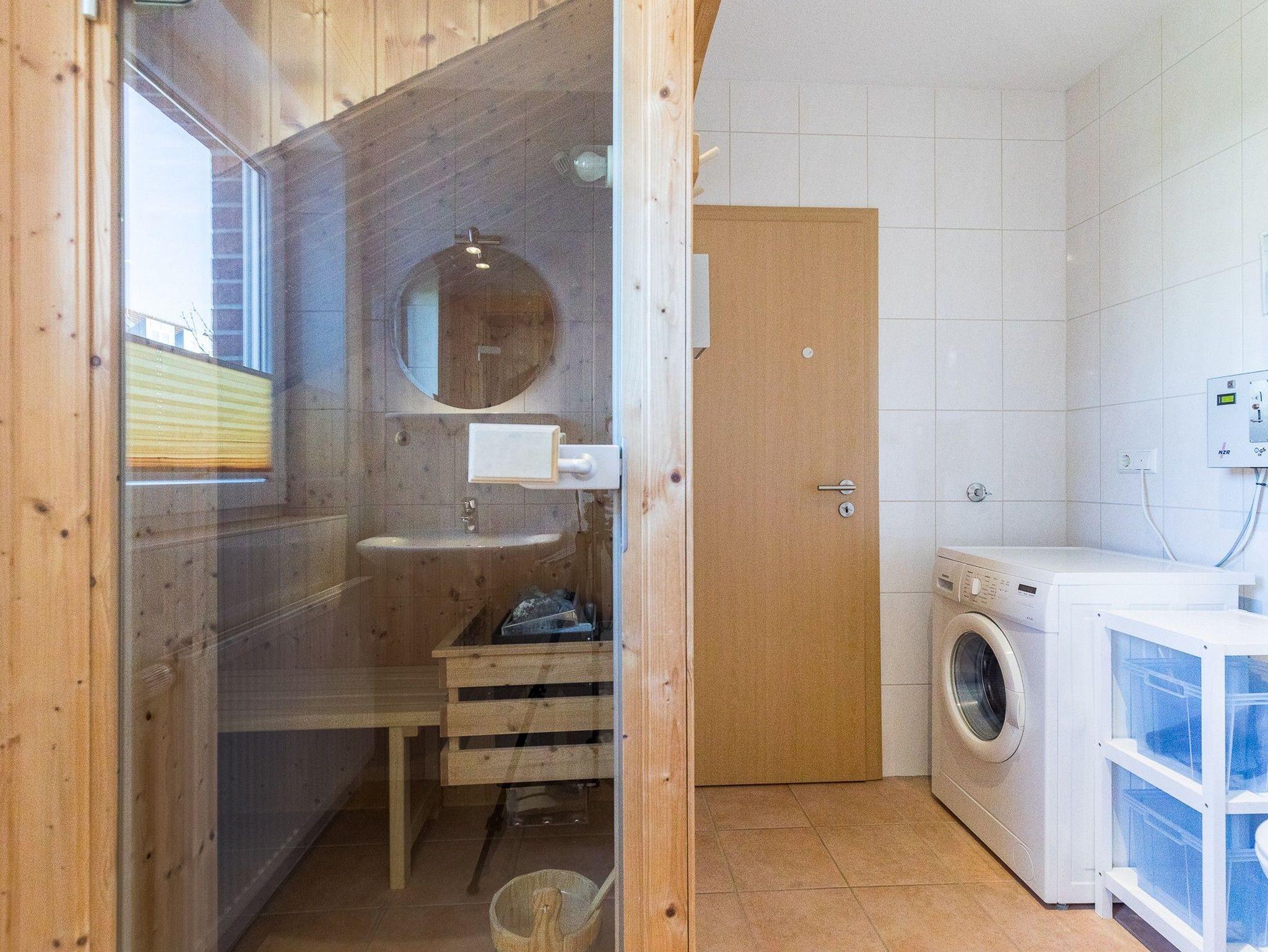 Ein Highlight in Haus Luisa ist definitiv die eigene Sauna + Waschmaschine (gegen Gebühr) im Bad, die zu jeder Wohnung gehört. Für die kleinsten Gäste stehen in dieser Nichtraucher-Wohnung ein Hochstuhl und ein Kinderreisebettchen zur Verfügung. Durch die Rollläden lässt es sich herrlich abdunkeln.
